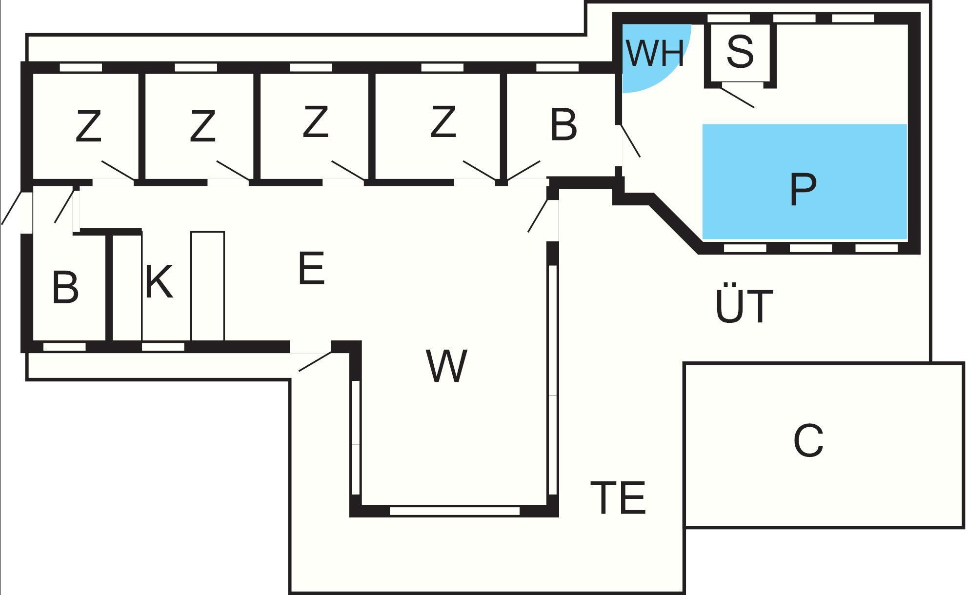 Für den Badespaß gibt es einen Poolraum mit einem ca. 15 m² großen Swimmingpool und einem Whirlpool. Im Anschluss daran findet man auch die Sauna.