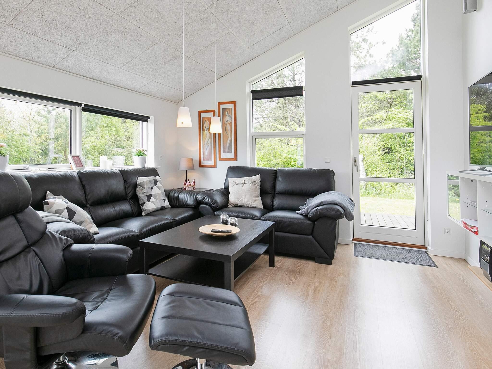 Dieses Ferienhaus wurde 2012 aus hochwertigen Materialien erbaut. Helle Holzböden und Wände erwarten Sie in dem modern eingerichteten Haus, wo ein Holzofen für wohlige Wärme im Wohnzimmer, das mit der offenen, gut ausgestatteten Küche kombiniert ist, sorgt. SAT-Empfang mit skandinavischen und deutschen TV-Programmen. Eine energiesparende Wärmepumpe reduziert die Nebenkosten. Vom Wohnzimmer gelangt man auf die große, überdachte Terrasse. Auf dem Grundstück gibt es eine Feuerstelle und eine praktische Außendusche.