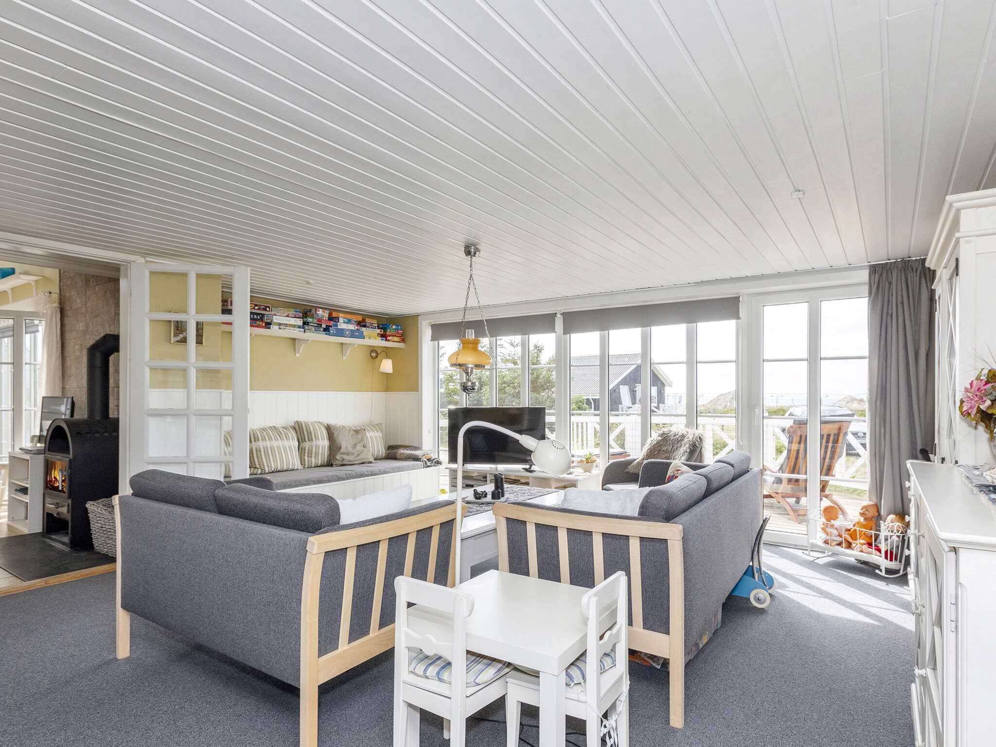 Das Haus ist mit bequemen Möbeln eingerichtet und verfügt über ein helles und geräumiges Wohnzimmer mit Flachbildfernseher, Satellitenschüssel, DVD-Player und Mini-CD-Player. Ein Kaminofen sorgt für Gemütlichkeit an kühlen Abenden. Vom Wohnzimmer aus gibt es einen direkten Zugang zur großen Terrasse mit Grill, wo Sie Ihr Abendessen und den Sonnenuntergang über dem Limfjord genießen können.