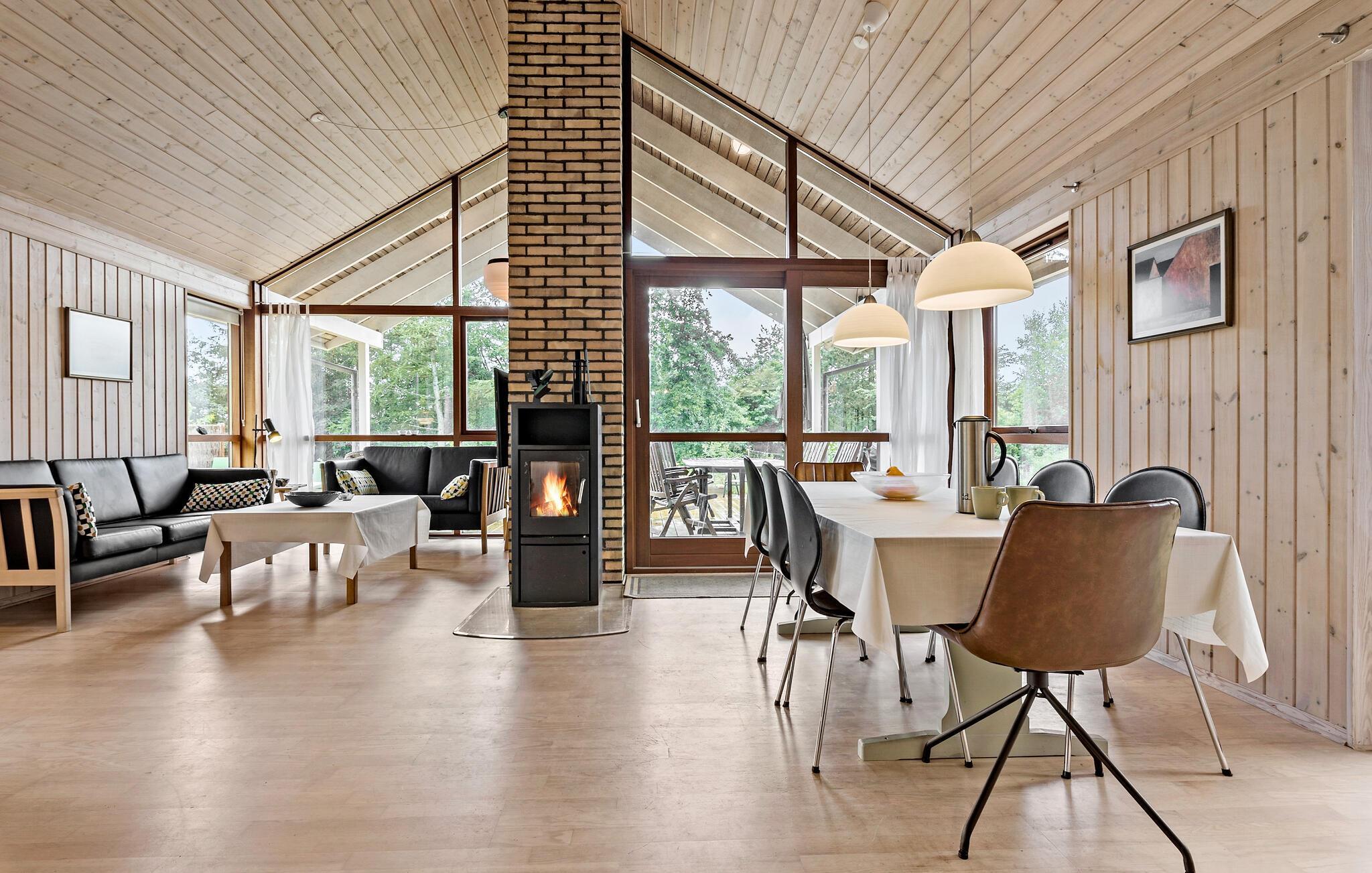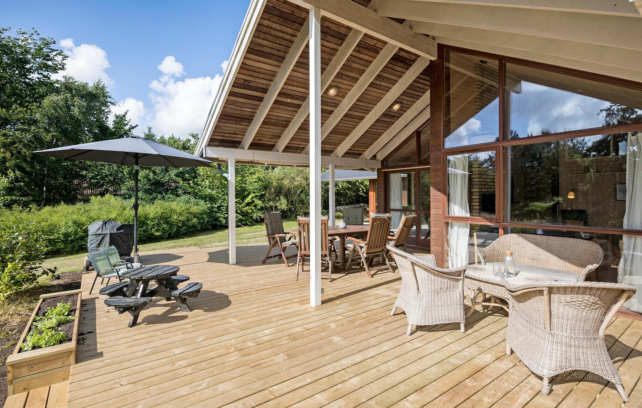 Nahe der Bjørnsholm Bucht beginnen Sie Ihren Tag voller Energie nach einer erholsamen Nacht in Ihrem gemütlichen Ferienhaus. Bereiten Sie in der gut ausgestatteten, geräumigen Küche eine heiße Tasse Kaffee zu und verwöhnen Sie Ihre Familie mit einem leckeren Frühstück. Das einladende Sofa ist der ideale Ort, um ein spannendes Buch zu lesen oder einen guten Film zu schauen. Alternativ können Sie Ihre freie Zeit auf der sonnigen Terrasse verbringen, wo zahlreiche Sitzgelegenheiten zum Entspannen einladen. Nutzen Sie den Grill für kulinarische Köstlichkeiten und genießen Sie Ihre Mahlzeiten hier. Die Feuerstelle lädt abends zu geselligen Stunden im Freien ein.