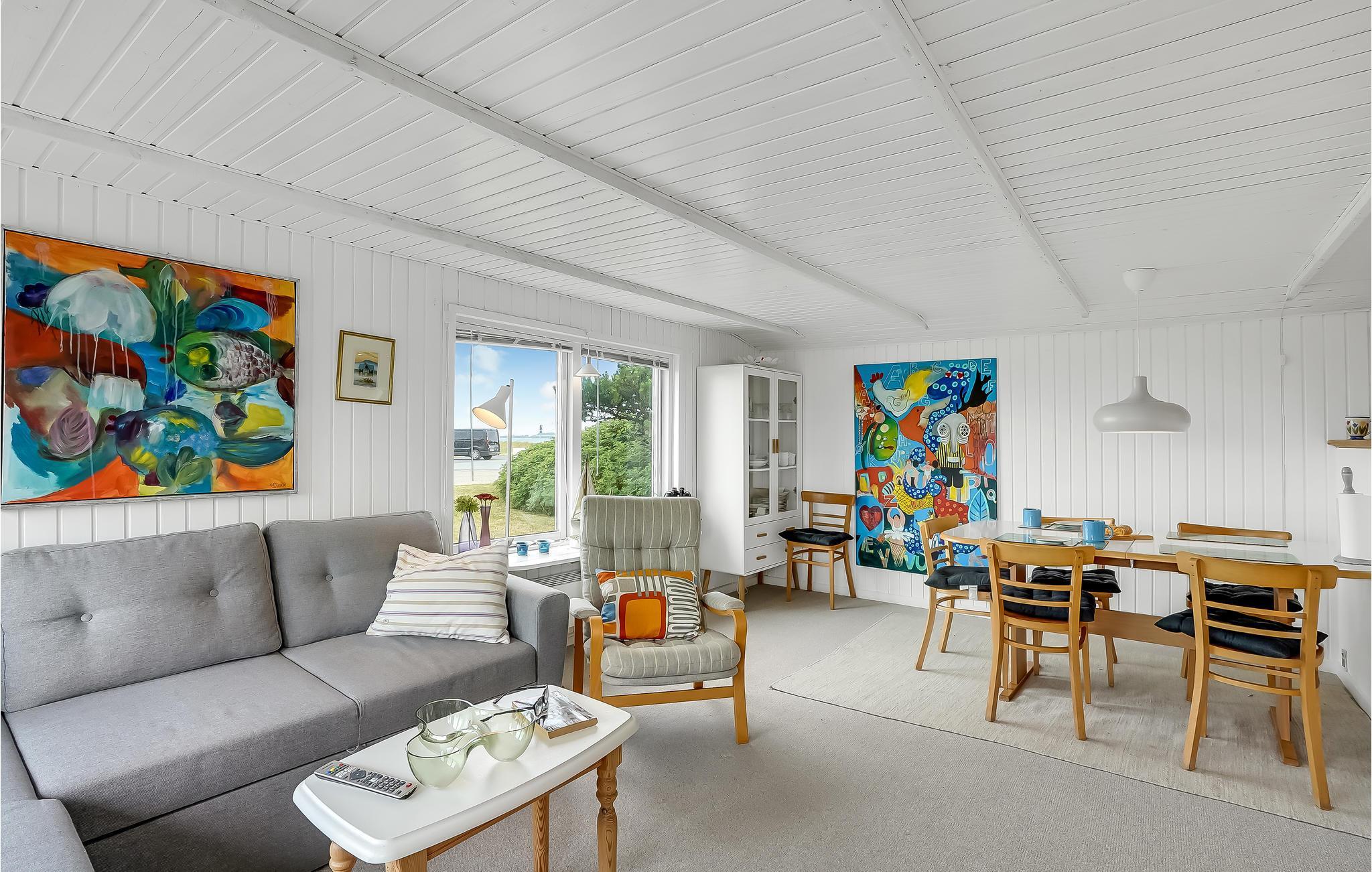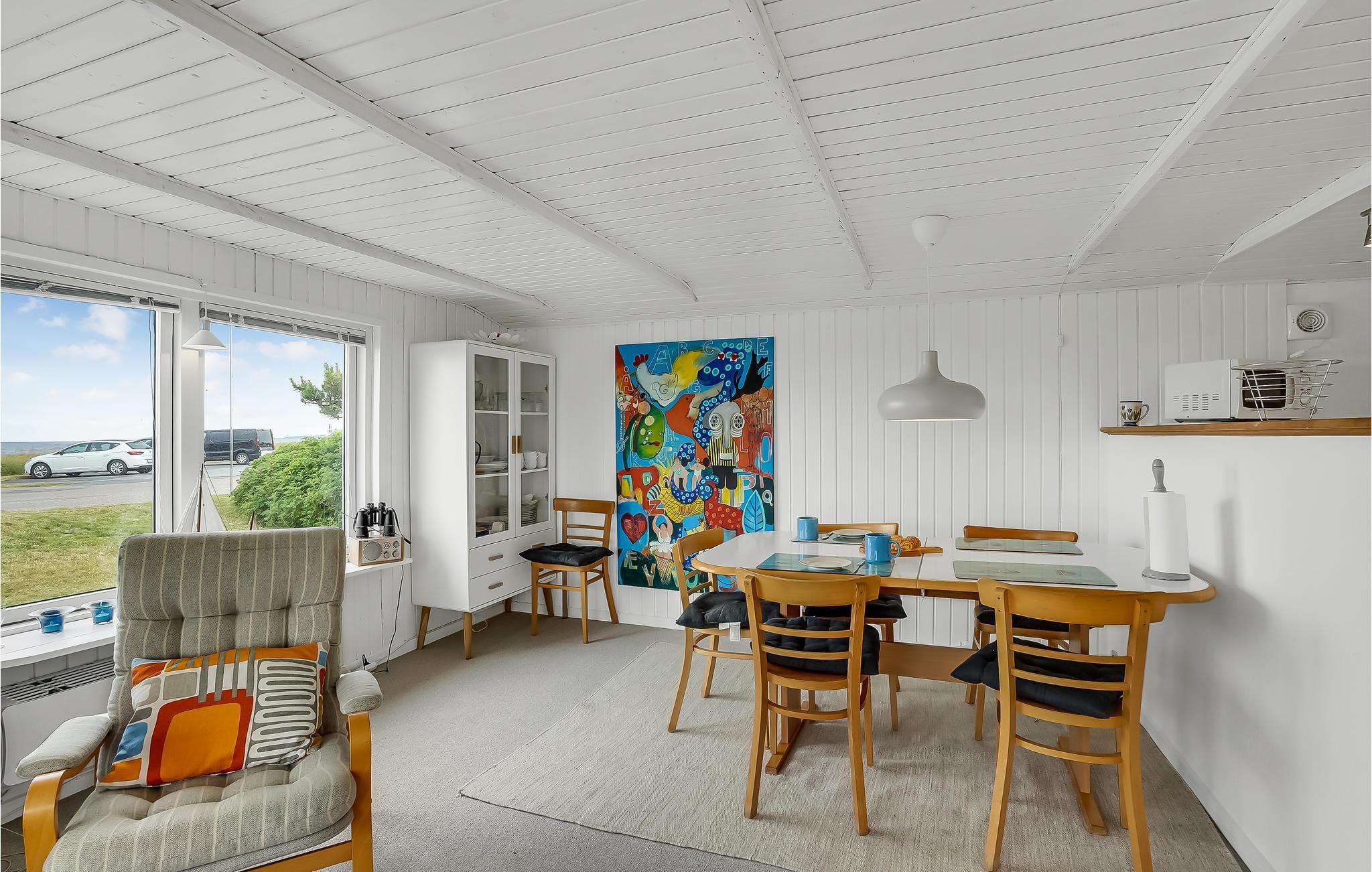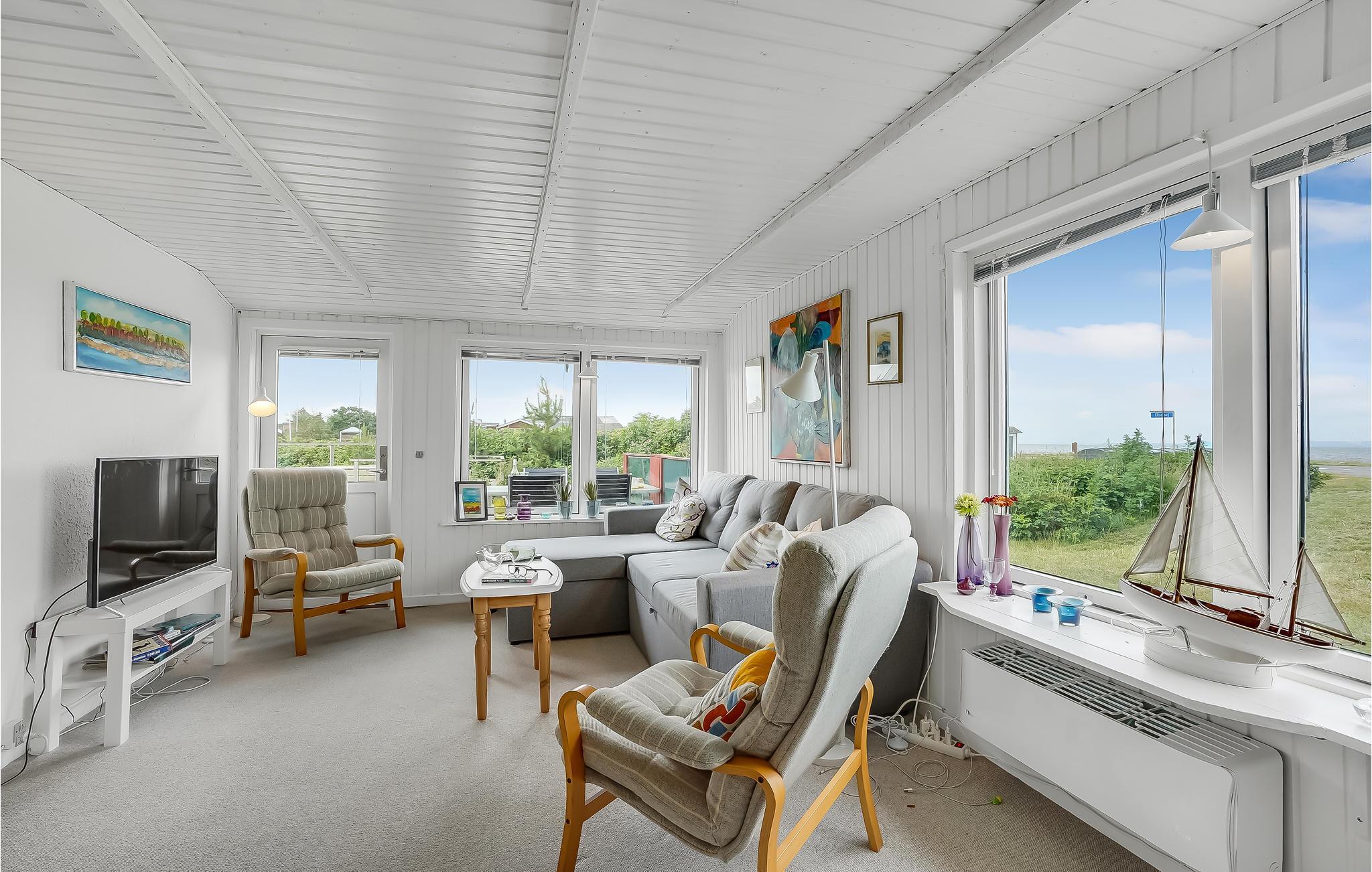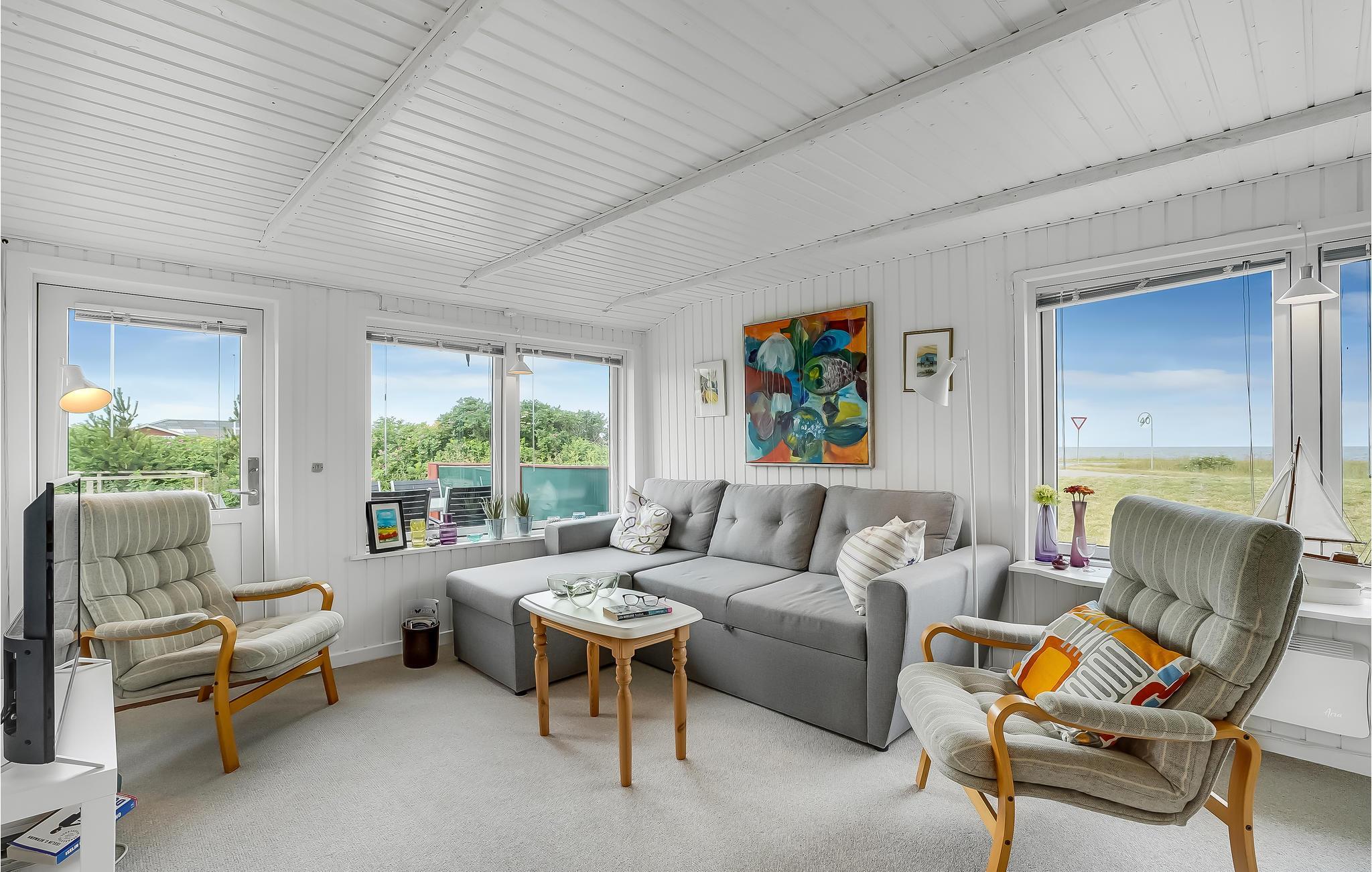 Genießen Sie die Aussicht vom Wohnzimmer, wo sie durch großflächige Fenster bestens zur Geltung kommt. Die gemütliche Einrichtung und geschmackvolle Dekoration machen dieses Ferienhaus zu einem angenehmen Aufenthaltsort für den Urlaub am Meer, es bietet Platz für bis zu 6 Personen.