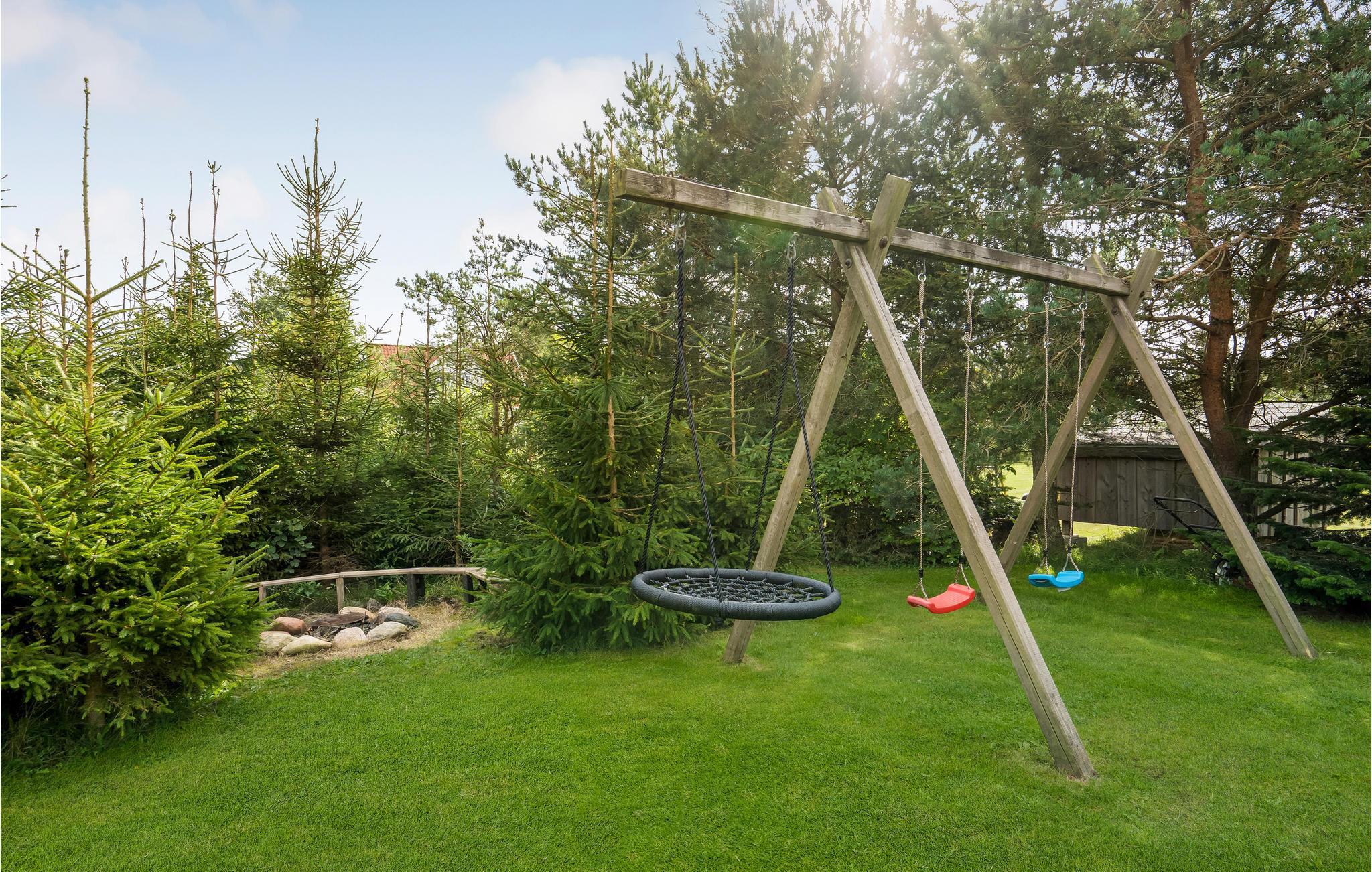 Erleben Sie mit Ihrer Großfamilie entspannte Ferien in Trend. Das schöne Ferienhaus ist komfortabel ausgestattet und lädt Sie im großen Wohnraum ein viel Zeit gemeinsam zu verbringen. Kochen Sie gemeinsam in der geräumigen Küche, alle können anpacken, sodass Sie in einem kurzen Zeitraum leckere Mahlzeiten kochen können. Es ist aber sehr wahrscheinlich, dass es Ihre Kinder in den Garten ziehen wird, denn hier finden Sie ein Spieleparadies für die Jüngsten vor. Ein Schiffspielplatz mit Sandkasten, Schaukeln und ein Trampolin führen zu viel Vergnügen. Eine Feuerstelle können Sie am Abend gemeinsam nutzen und Stockbrot oder Marshmallows darüber rösten. Während ihre Kinder im Garten spielen, können sich die Erwachsenen in der privaten Sauna entspannen, schwitzen und Ihren Kreislauf in Schwung bringen.
