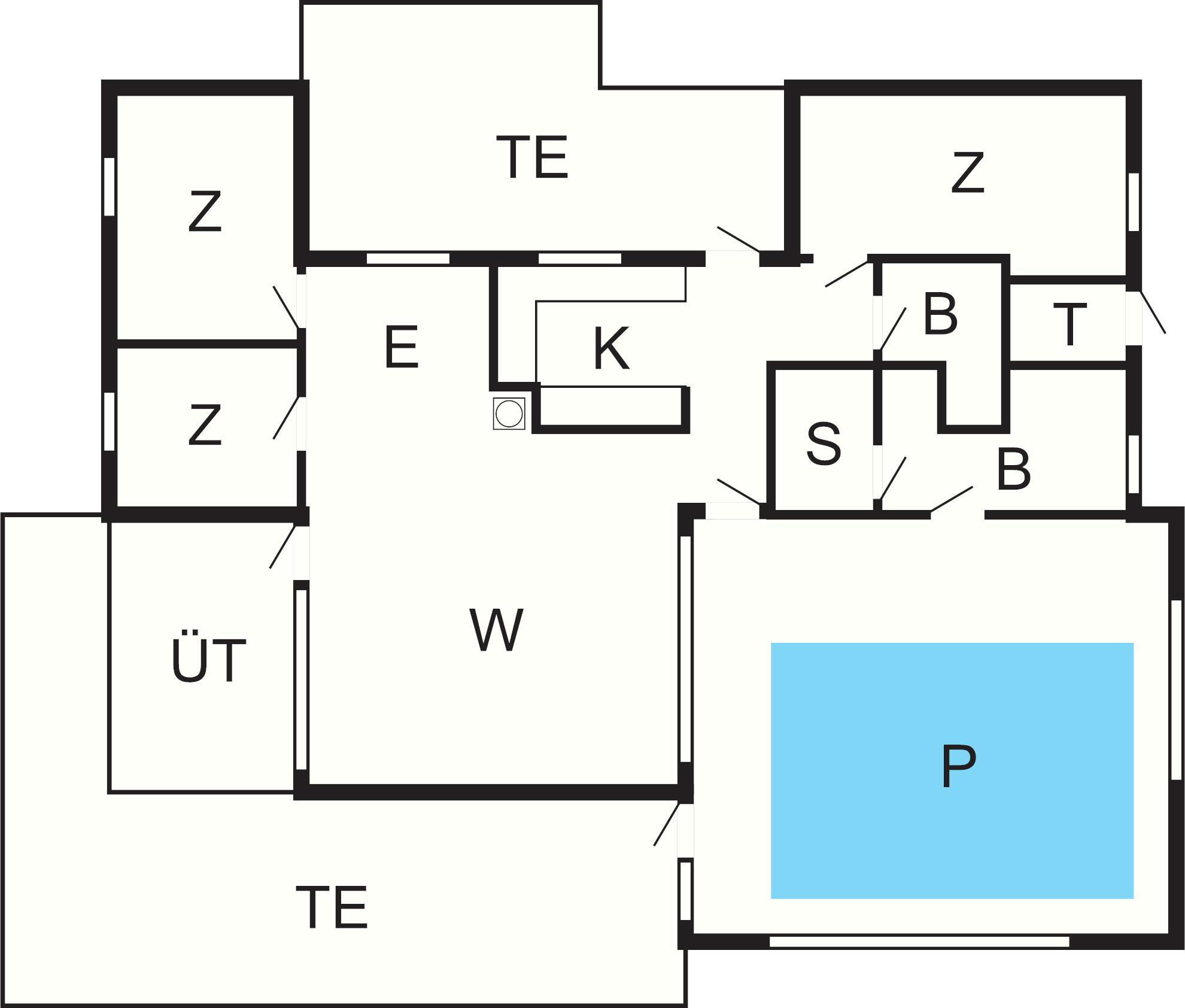 Großer Poolbereich mit viel Platz zum Schwimmen oder einfach nur zum Spielen. Der Poolbereich verfügt über hervorragendes Tageslicht, wo Sie auch die Aussicht auf die unberührte Natur genießen können.