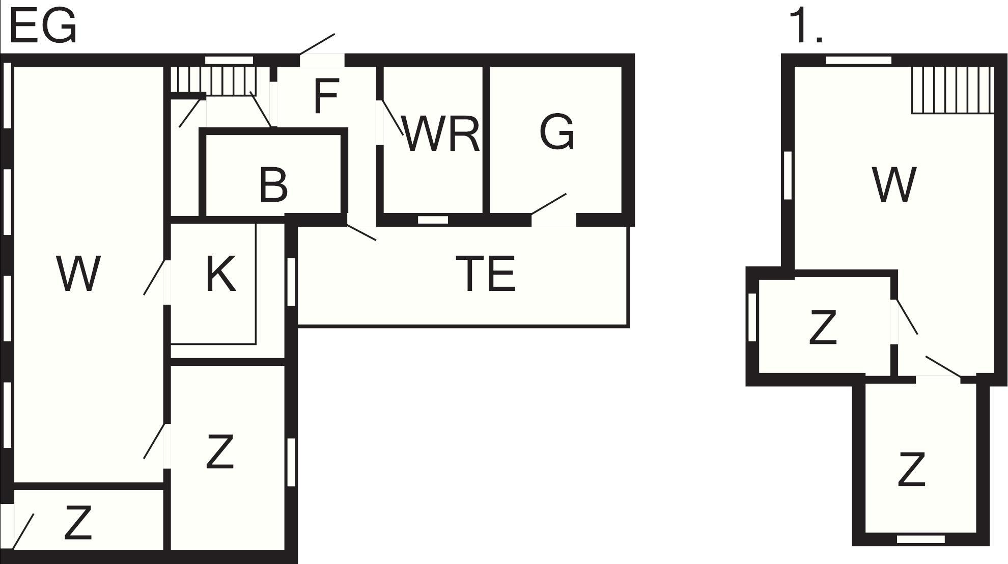Bad: WC, Waschb., Dusche, Fußbodenheiz.