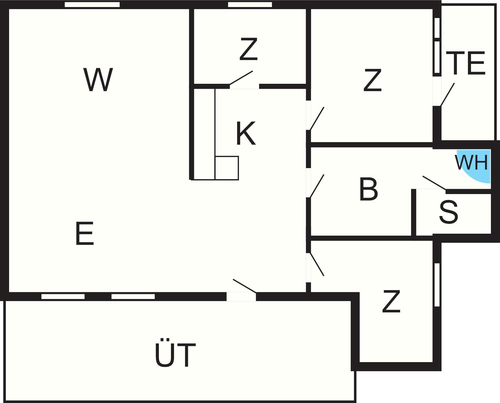 Bad: WC, Waschb., Dusche, Fußbodenheiz.