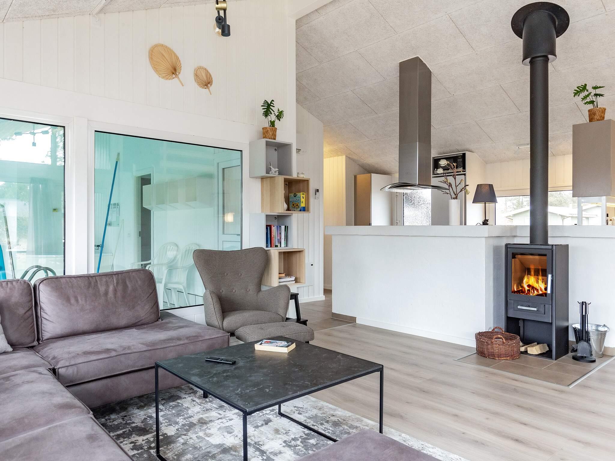 Und: Terrasse, E-Heiz., Luft-Luft-Wärmepumpe, Spielgeräte, Grill, Naturgrundst. m. Bäumen 5040 m2, gemischte Möblierung, Ferienhausgebiet, Nichtraucherhaus