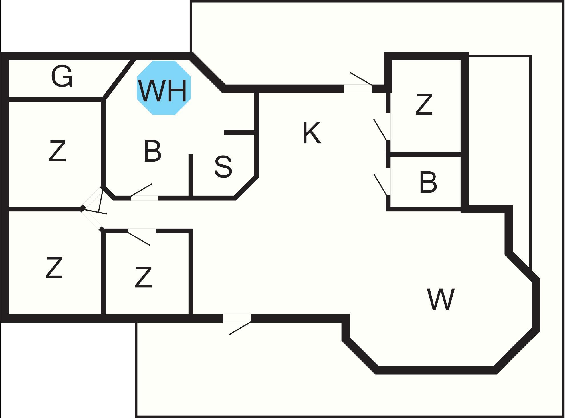 4 Schlafz.: (1DB)+(1DB)+(2B)+(2B), Kinderbett