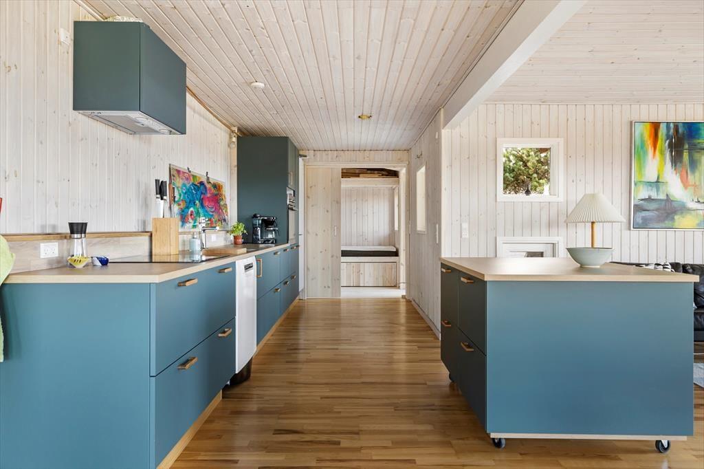 Das Ferienhaus wurde mit viel Geschmack und Liebe zum Detail renoviert und hat eine ganz besondere Atmosphäre, die du sofort beim Betreten spürst. Der großzügige Wohnbereich mit offener Küche und Wohnzimmer ist lichtdurchflutet und luftig – dank der beeindruckenden Fensterfronten, die den Blick auf die Natur und sogar bis zum Meer freigeben. Hier kannst du morgens mit einer Tasse Kaffee in der Hand das Panorama genießen, während Stille und Licht den Raum erfüllen. Der neue Anbau bringt zusätzlichen Komfort und Charme – mit zwei geräumigen Schlafzimmern, einem modernen Badezimmer und einem einzigartigen Verbindungsraum, der Gäste herzlich empfängt und spannende Übergänge im Haus schafft. Die hohen Decken und kleinen, gemütlichen Ecken laden dazu ein, sich mit einem Buch oder einem Brettspiel zurückzuziehen, während das Nachmittagslicht über die Wände tanzt. Ein Haus mit Seele – und ein Ort, der zu Gemeinschaft und Entspannung einlädt.