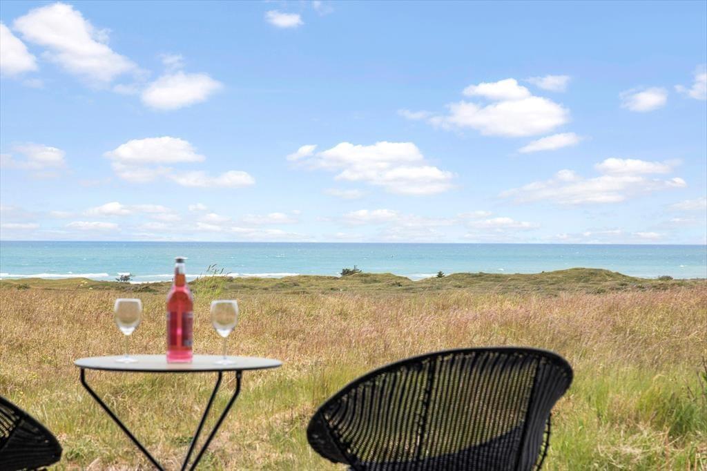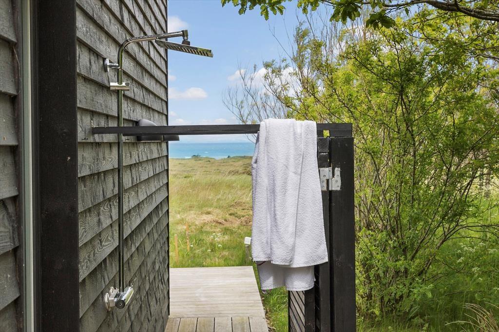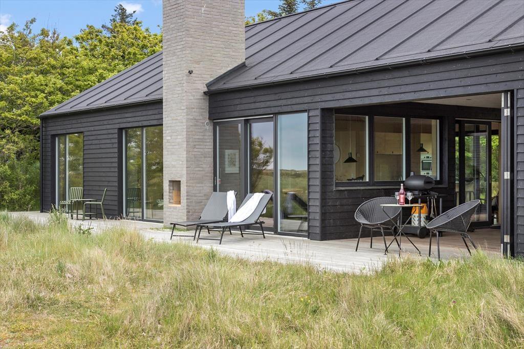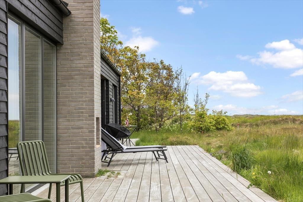 Es gibt nur wenige Stellen, an denen Sie so eine schöne, beeindruckende Aussicht über die hügeligen Dünen und die prachtvolle Nordsee genießen, wie bei diesem modernen Urlaubsdomizil. Das hügelige Naturgrundstück liegt ein wenig erhöht und besticht mit einer reizvollen Mischung aus hohen Gräsern, Strandhafer, Büschen und Bäumen. Das Grundstück ist als ein "Natura 2000"-Gebiet ausgewiesen. Rund um das gesamte Objekt schmiegen sich Terrassen, von denen ein Teil überdacht ist und mit einer großen Jalousie komplett verschlossen werden kann. Hier können Sie wunderbar im Kreise Ihrer Lieben die Mahlzeiten genießen und es sich abends gemütlich machen und dabei traumhafte Sonnenuntergänge im Westen bewundern. Wenn Sie Ihre Mahlzeiten ebenfalls draußen zubereiten möchten, nutzen Sie einfach die Außenküche, die mit einer Kochplatte und einem Gasgrill ausgestattet ist. Auf dem Terrassenareal locken zudem ein Außenkamin und eine Außendusche. Auf dem Grundstück befindet sich eine Bocciabahn, die bei Ihnen und Ihren Mitreisenden nicht nur für ein wenig körperliche Aktivität, sondern auch für viel Spaß und Abwechslung sorgen wird.