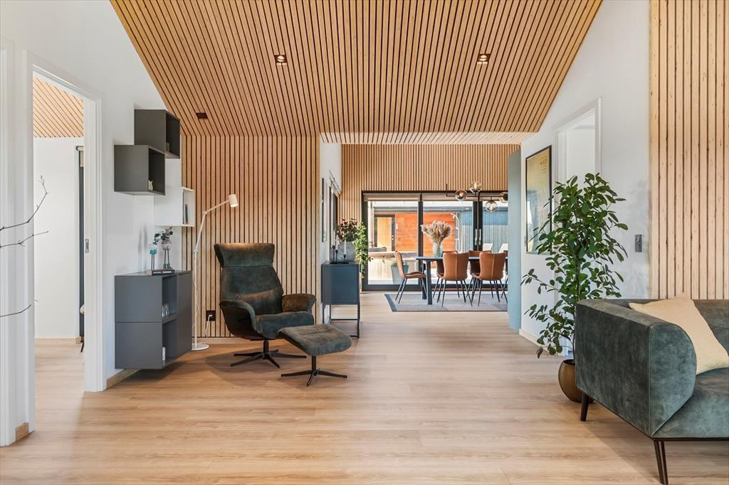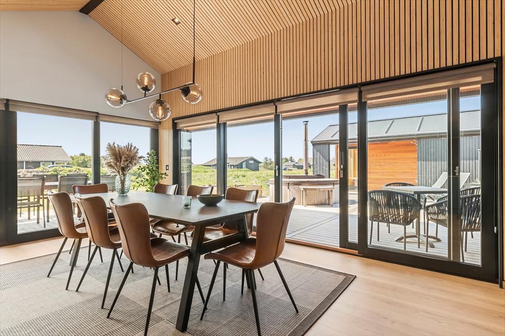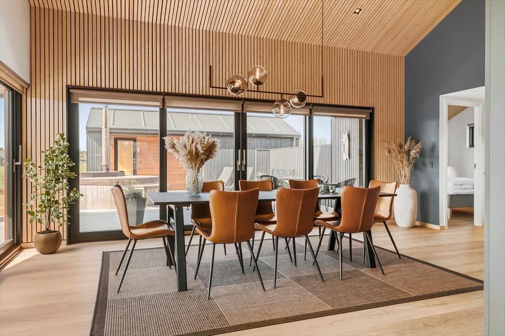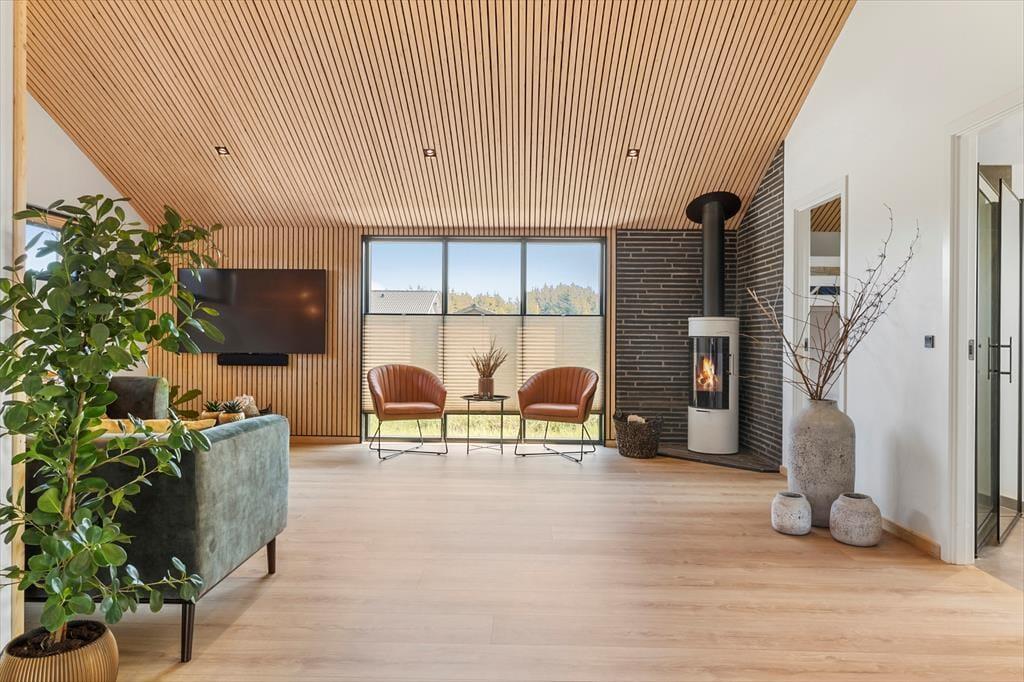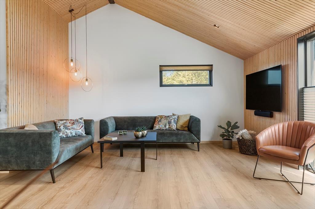Wenn du dieses helle und einladende Ferienhaus betrittst, wirst du sofort die angenehme Atmosphäre spüren. Die offenen Räume, die moderne Einrichtung und die großen Fenster, die die Natur hereinlassen, machen es zu einem wunderbaren Ort zum Entspannen. Das Wohnzimmer ist der perfekte Ort, um sich mit der Familie vor dem Kamin zu versammeln, während ihr einen guten Film schaut oder über die Erlebnisse des Tages sprecht. Die elegante Küche und die komfortablen Schlafzimmer sorgen dafür, dass sowohl Kinder als auch Erwachsene eine gute Nachtruhe finden und du alle notwendigen Einrichtungen für einen einfachen und bequemen Urlaub hast.