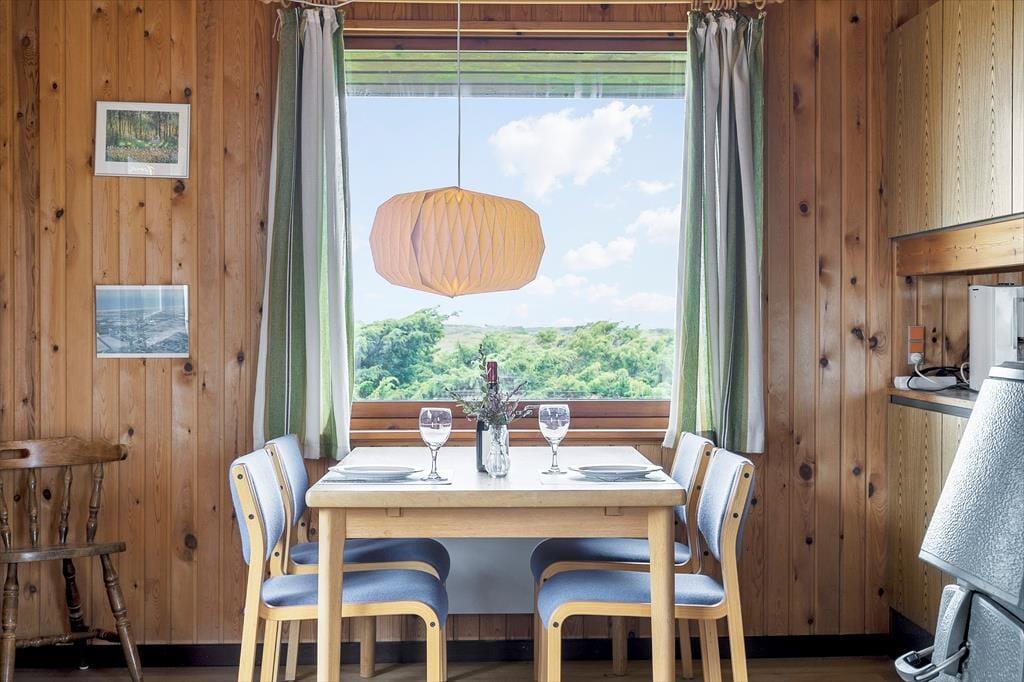 Wenn du das Ferienhaus betrittst, wirst du von einer gemütlichen und hellen Atmosphäre begrüßt, in der du dich sofort wie zu Hause fühlst. Das Wohnzimmer ist sowohl einladend als auch geräumig, und die großen Fenster bieten einen wunderbaren Blick auf die umliegende Landschaft und das entfernte Meer. Hier gibt es genügend Platz, um mit der Familie vor dem Kamin zusammenzukommen, wo die Flammen Wärme und Gemütlichkeit verbreiten, oder um dich in das bequeme Sofa zu kuscheln und die Aussicht zu genießen. Die Küche ist offen und praktisch eingerichtet, was es einfach macht, leckere Mahlzeiten für dich und deine Liebsten zuzubereiten. Die Einrichtung des Ferienhauses ist schlicht, aber funktional, und jedes Detail trägt dazu bei, eine entspannte und angenehme Urlaubsatmosphäre zu schaffen.