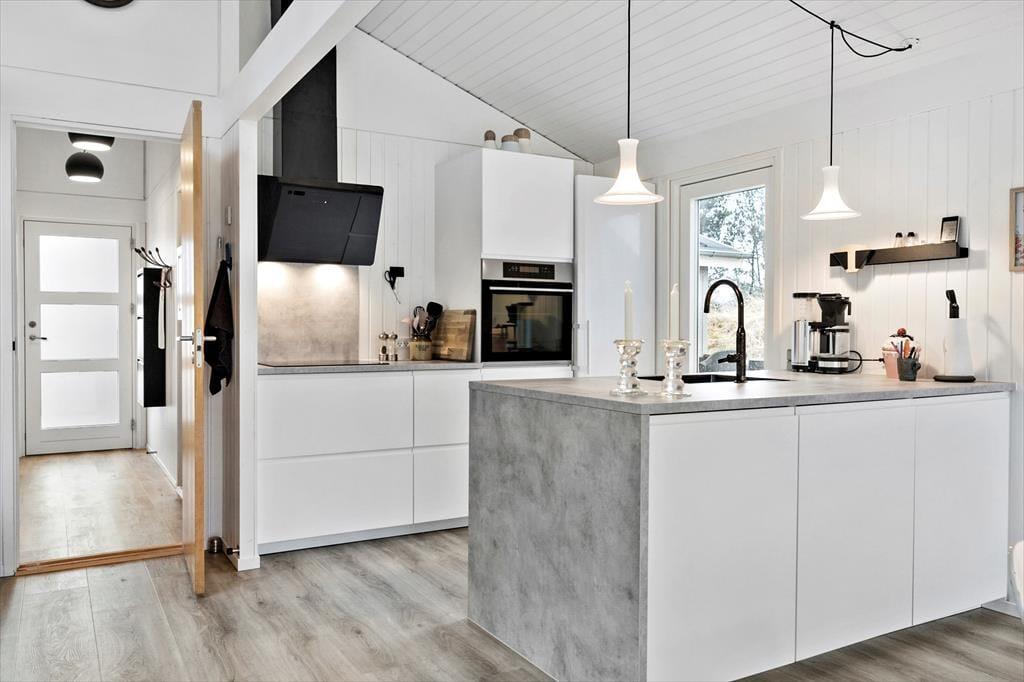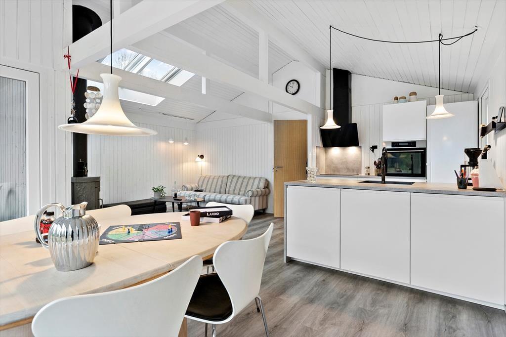 Nach der gelungenen Renovierung im Jahr 2023 präsentieren sich alle Räume des Ferienhauses hell und einladend. Dies gilt selbst für das Badezimmer, in dem du früh am Morgen ein Duschbad in der Glasduschnische genießt und anschließend munter in den Tag startest. Wenn du den neuen Urlaubstag in aller Gemütlichkeit und Ruhe verleben möchtest, spielst du mit deinen Lieben in vergnügter Runde Gesellschaftsspiele am Esstisch, widmest dich deinem Strickzeug oder schaust mit den Kinder zusammen Filme im Fernsehen an. Für eine behagliche Atmosphäre und wohlige Wärme sorgt derweil der knisternde Kaminofen. Die moderne offene Küche beinhaltet alles, was du für die Zubereitung der täglichen Urlaubsmahlzeiten benötigst. Bei schönem Wetter lädt die Terrasse zu entspannten Mahlzeiten im Freien ein. Die Terrassentür ermöglicht es dir, das fertige Essen schnell und unkompliziert auf der Terrasse zu servieren.