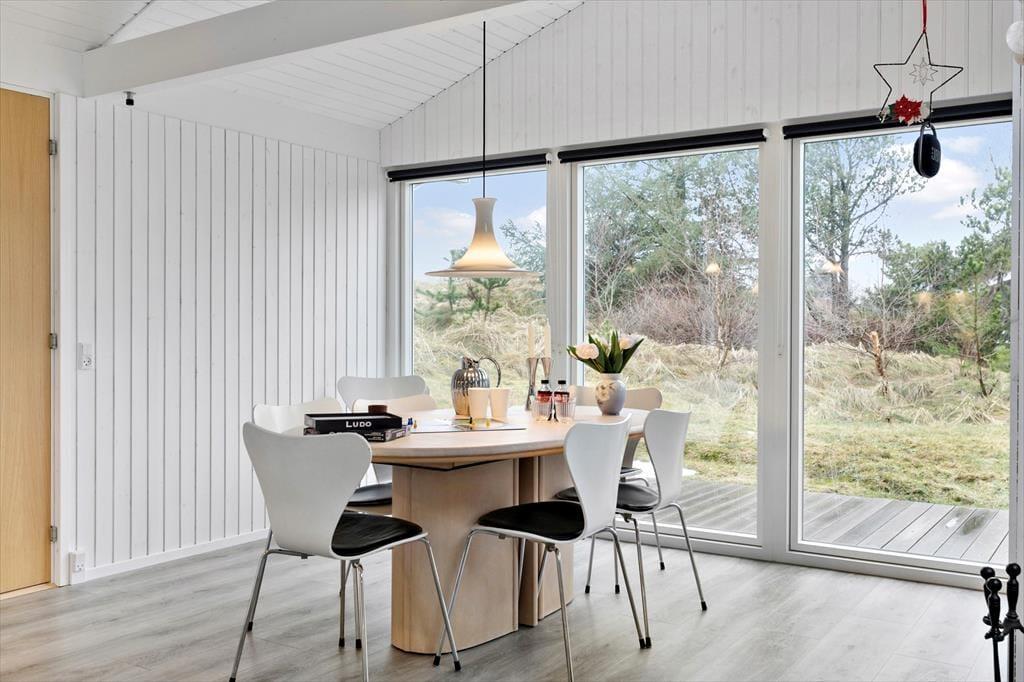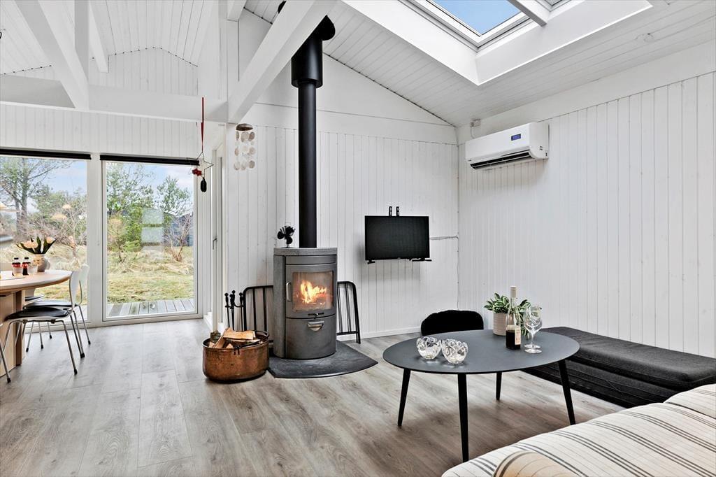 Egal, ob die Sonnenstrahlen durch die Dachflächenfenster fallen oder die Flammen im Kaminofen den dunklen Wohnraum erhellen, du darfst dich in diesem schönen Ferienhaus zu jeder Zeit auf stimmungsvolle Urlaubstage freuen. Unter freiem Himmel genießt du das entspannte Urlaubsleben auf deinem großen Naturgrundstück. Obwohl das Mietobjekt ruhig am Ende einer Sackgasse liegt, erreichst du dennoch schnell und einfach den Ortskern Tversteds und den Strand.