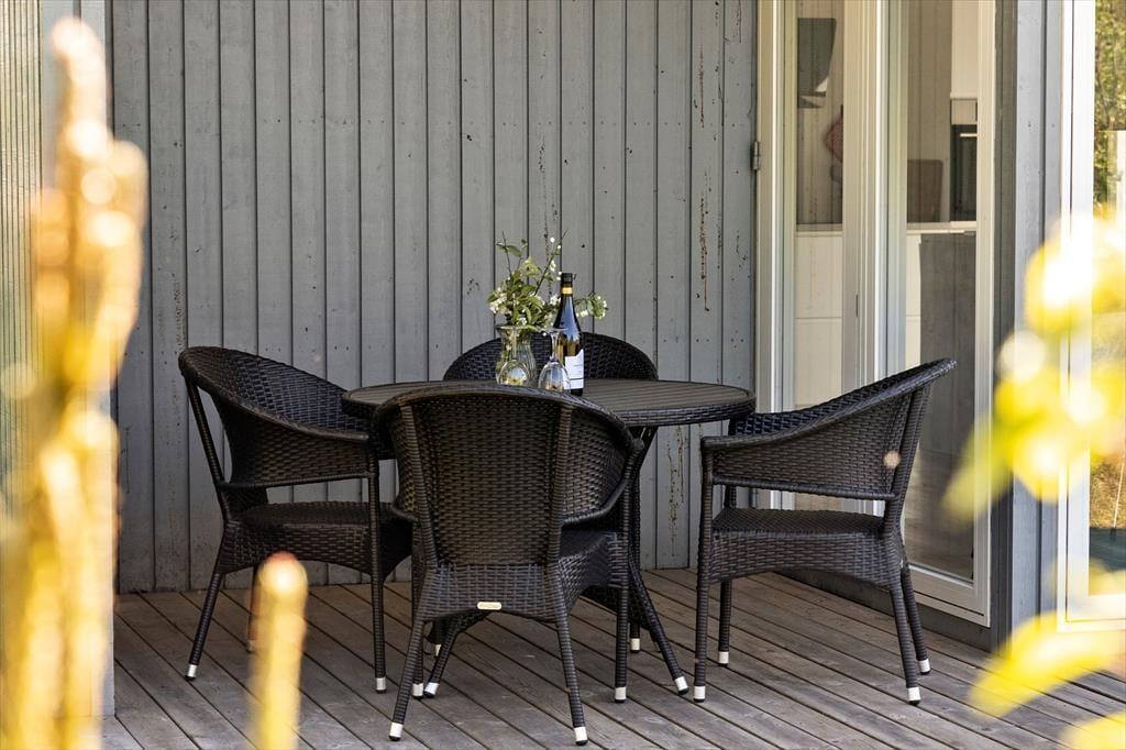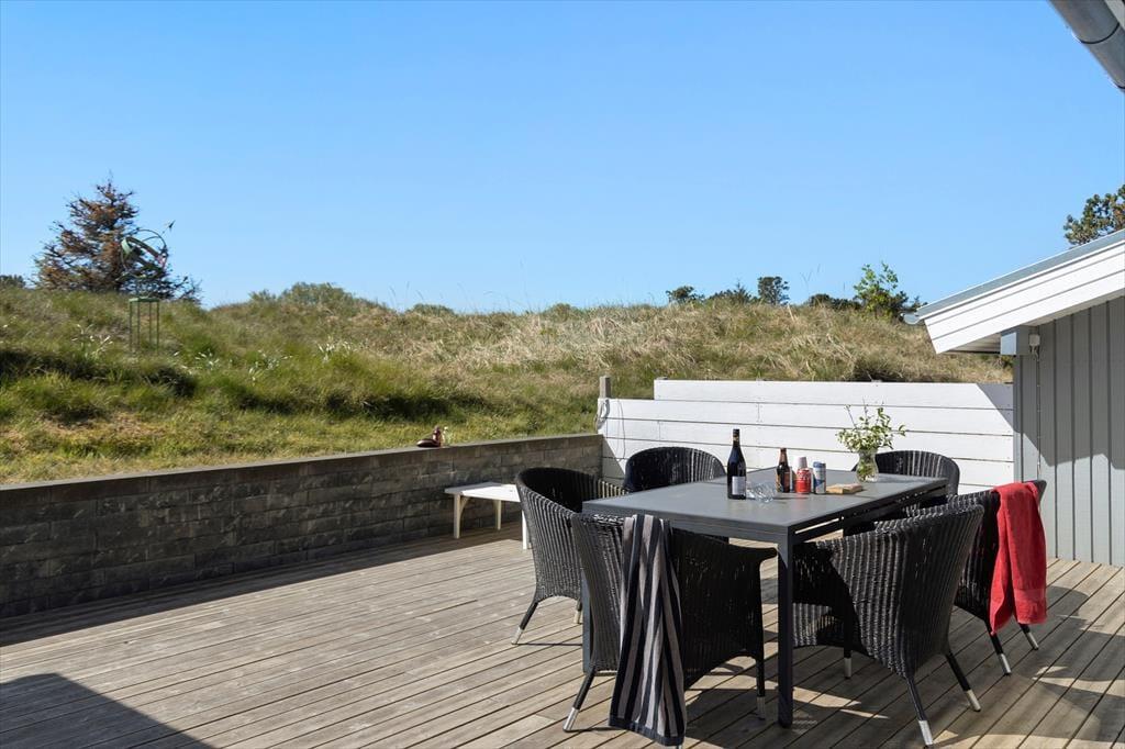 Rund ums Haus stehen mehrere Terrassen bereit. Dadurch wirst du stets einen sonnigen oder windgeschützten Platz zum Entspannen finden. Das hügelige Naturgrundstück schirmt die Aufenthaltsbereiche gut ab. Im Übrigen ist es einfach wunderschön, ins Grüne zu blicken, die frische Luft und die ruhige Atmosphäre zu genießen. Der Grill lädt zu geselligen Grillabenden ein. Anschließend könnt ihr gemeinsam entscheiden, ob ihr den Tag auf der Terrasse ausklingen lassen wollt oder ob ihr lieber an den Strand spaziert und an der Wasserkante den Sonnenuntergang bewundert.