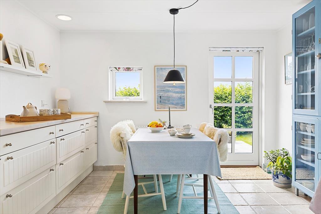 Wenn Sie das Ferienhaus auf Nøddevænget betreten, senkt sich das Tempo fast von selbst. Die authentische Sommerhaus-Atmosphäre lässt Sie sofort abschalten und den Urlaub mit allen Sinnen genießen. Die Einrichtung ist gemütlich und einladend, ganz auf das Zusammensein mit Familie, Partner oder Freunden ausgelegt. Im großen Wohnzimmer können Sie gemeinsam spielen, erzählen oder einfach entspannen, und die offene Küche macht es leicht, gemeinsam zu kochen. Liebevolle Details verleihen dem Haus Wärme und Persönlichkeit – und es ist leicht, sich vorzustellen, wie schön ein verregneter Nachmittag vor dem Kamin oder ein langsamer Morgen mit frischem Kaffee hier sein kann.