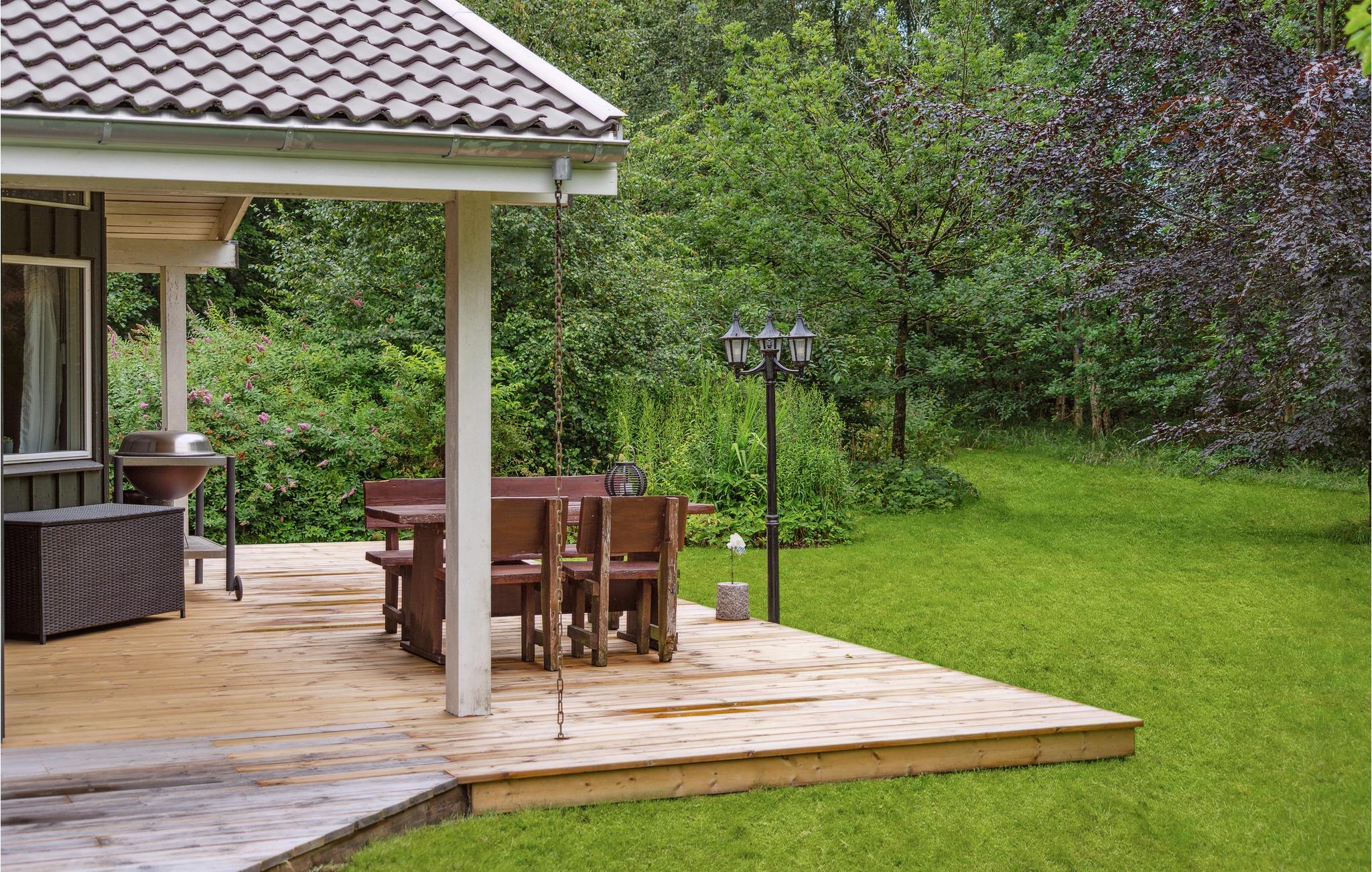 Die Hütte ist hell und modern ausgestattet, wobei auch ein geräumiges Wohnzimmer vorhanden ist. Schönes großes Grundstück mit gepflegtem Rasen, Bäumen und Sträuchern, hier gibt es viel Gelegenheit für Spiel und Gemütlichkeit in allen Ecken und Winkeln. Der Garten lädt auch zu Aktivitäten im Freien ein, u.a. zum Grillen mit Ihren Freunden und Familie.