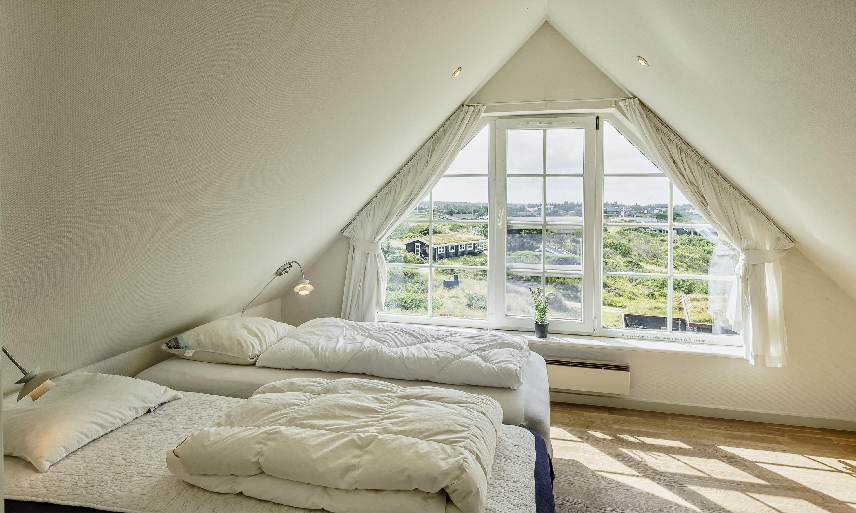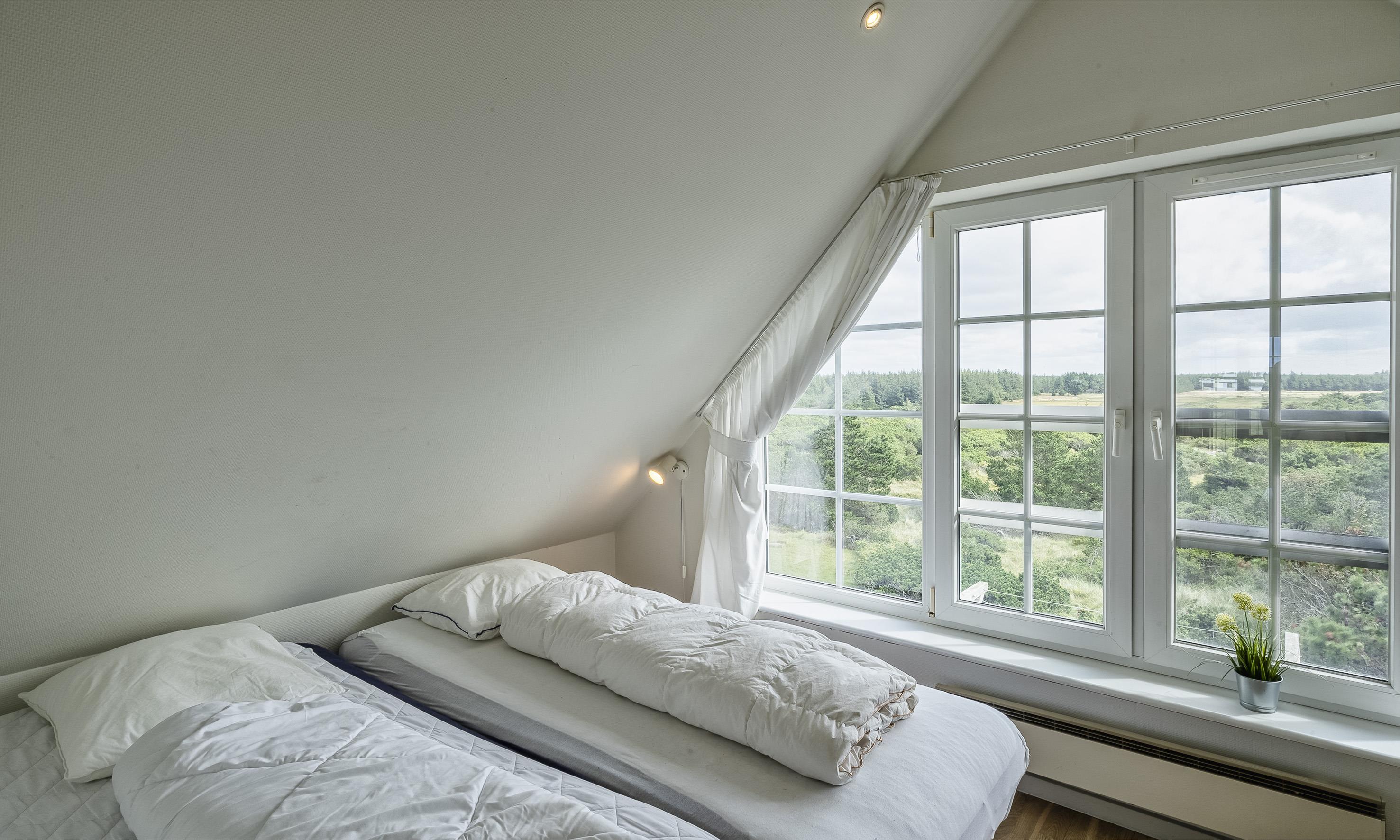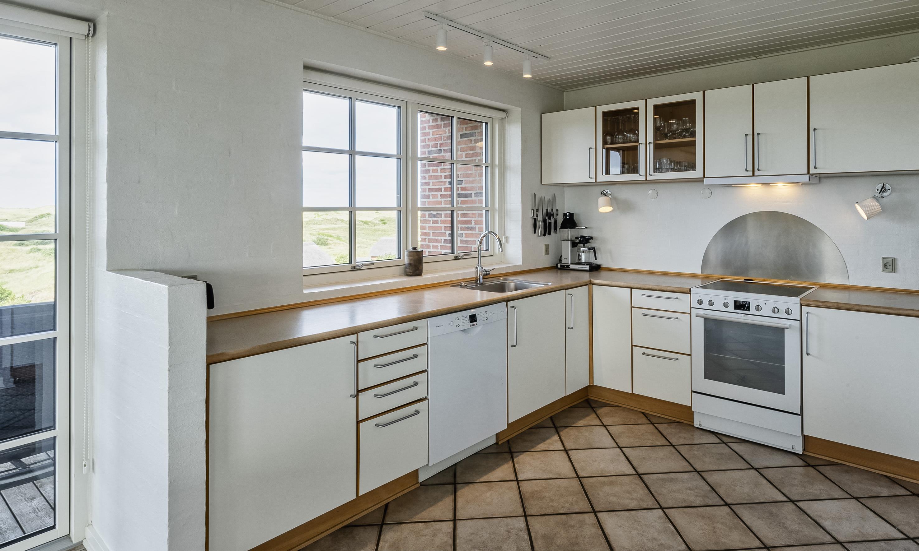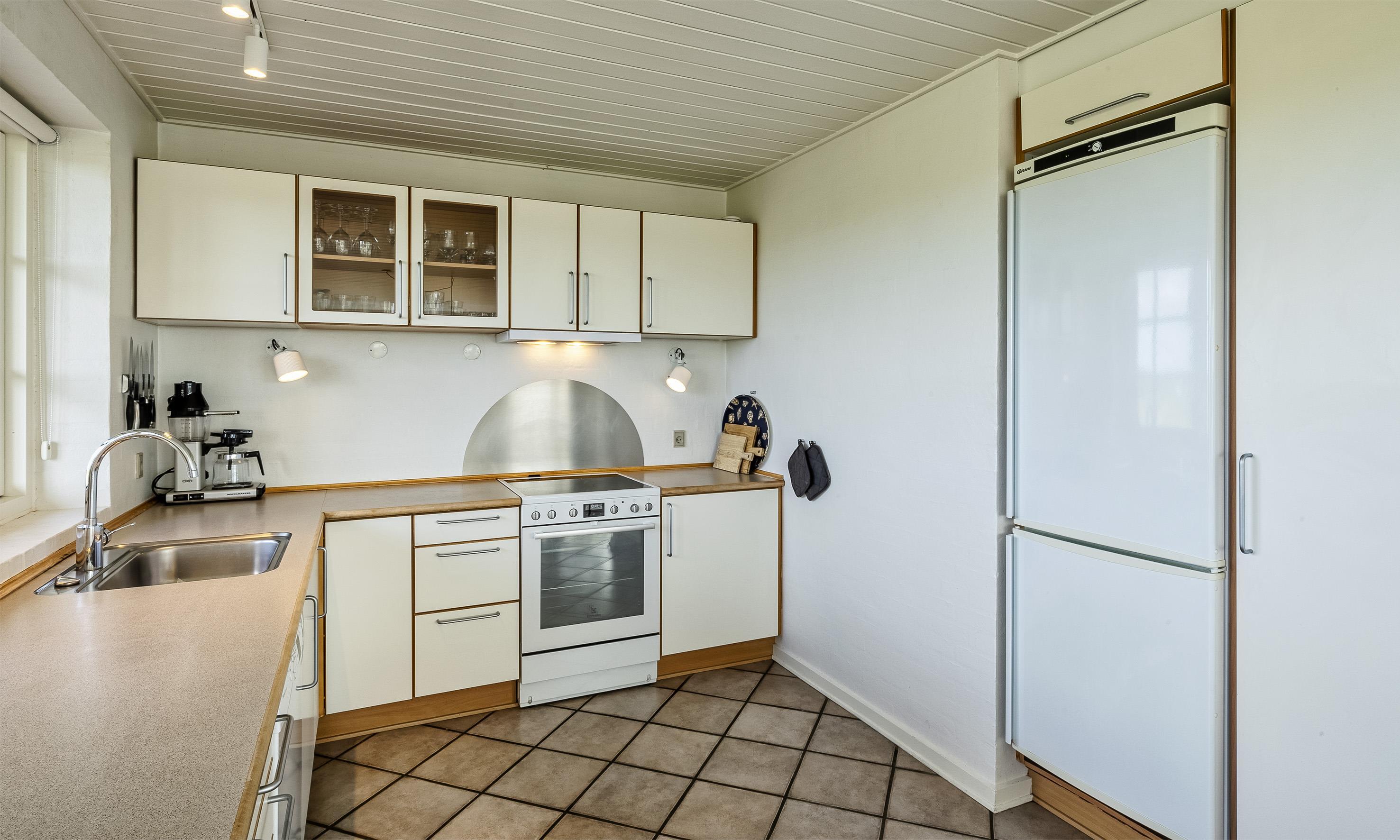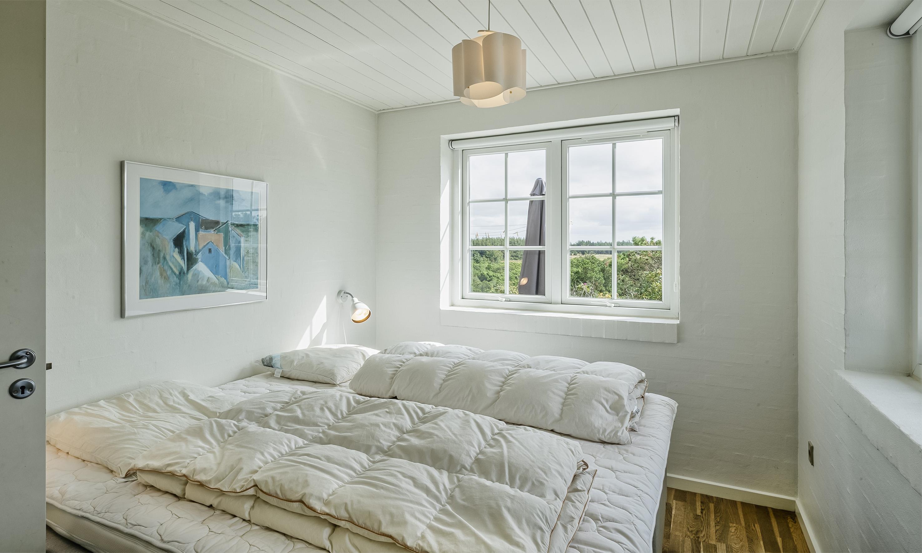 Lovely thatched cottage for 6 people, located on a high dune with a sea view, approx. 200 meters from the beach. On the ground floor: living room with wood-burning stove, television and Danish channels above the living room (summer house package), and open kitchen with dishwasher. Bathroom with shower/wc, spa and sauna. Entrance with washing machine and dryer. 3 bedrooms: DB + DB + DB. Bathroom with shower/wc. Small living room. Only 1 small dog is allowed! The dog must not be on the sofa, bed or other furniture. Smoking is not allowed.
