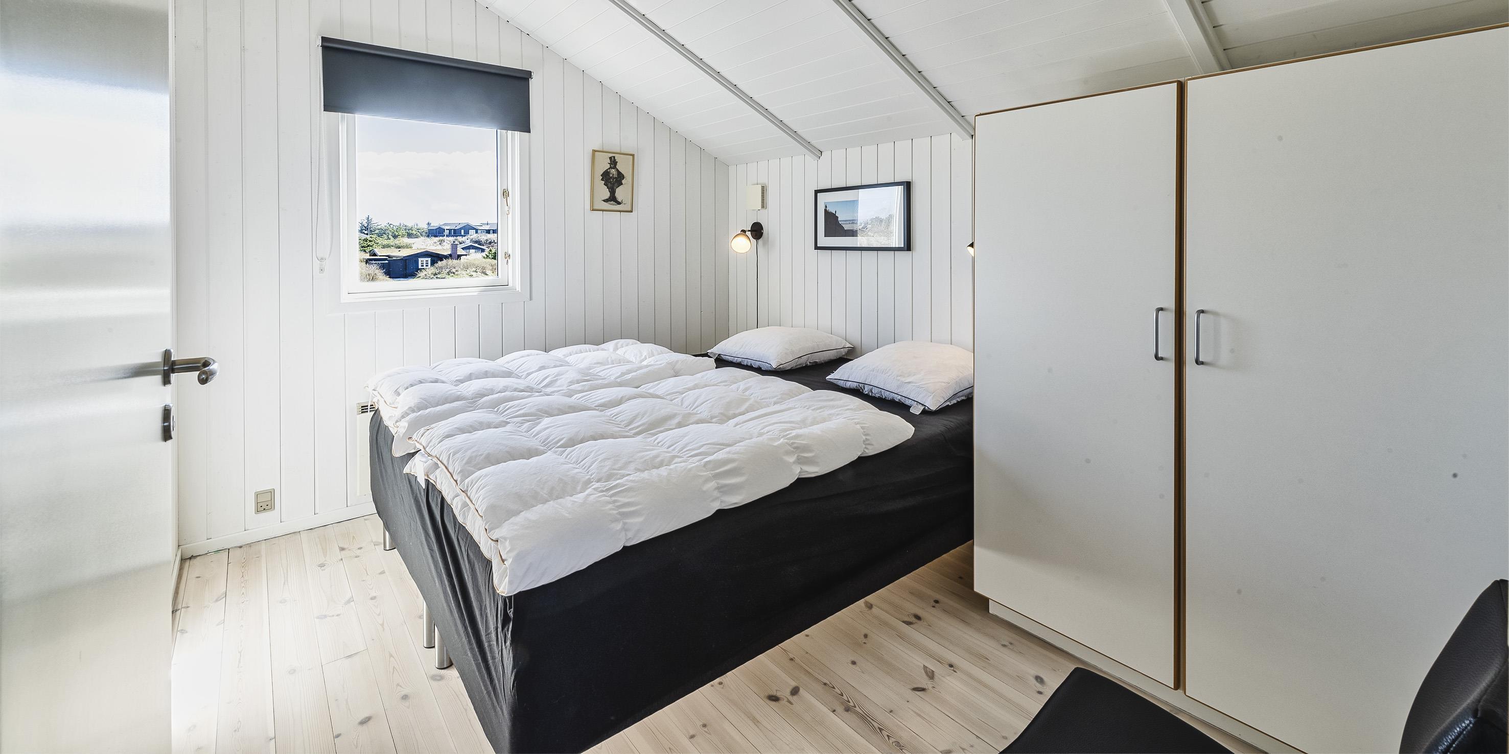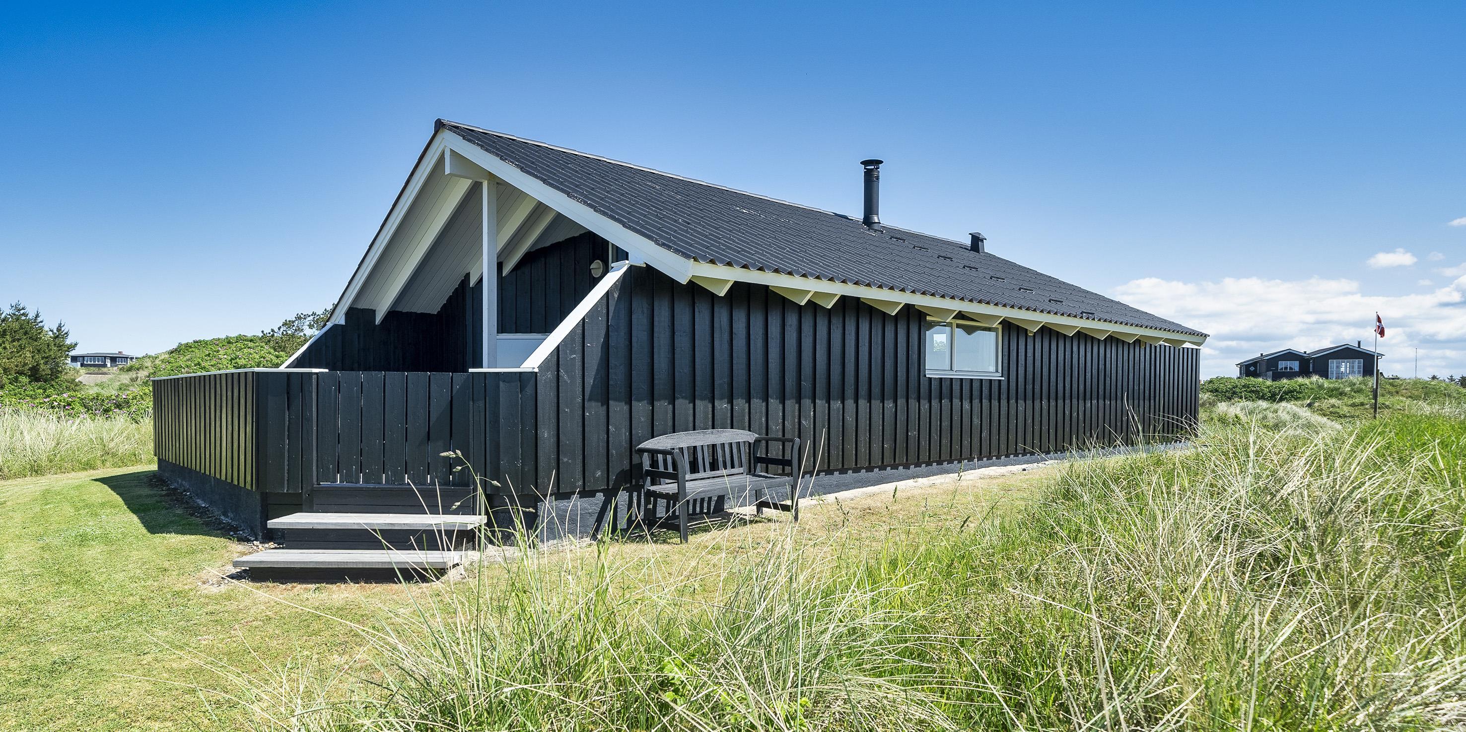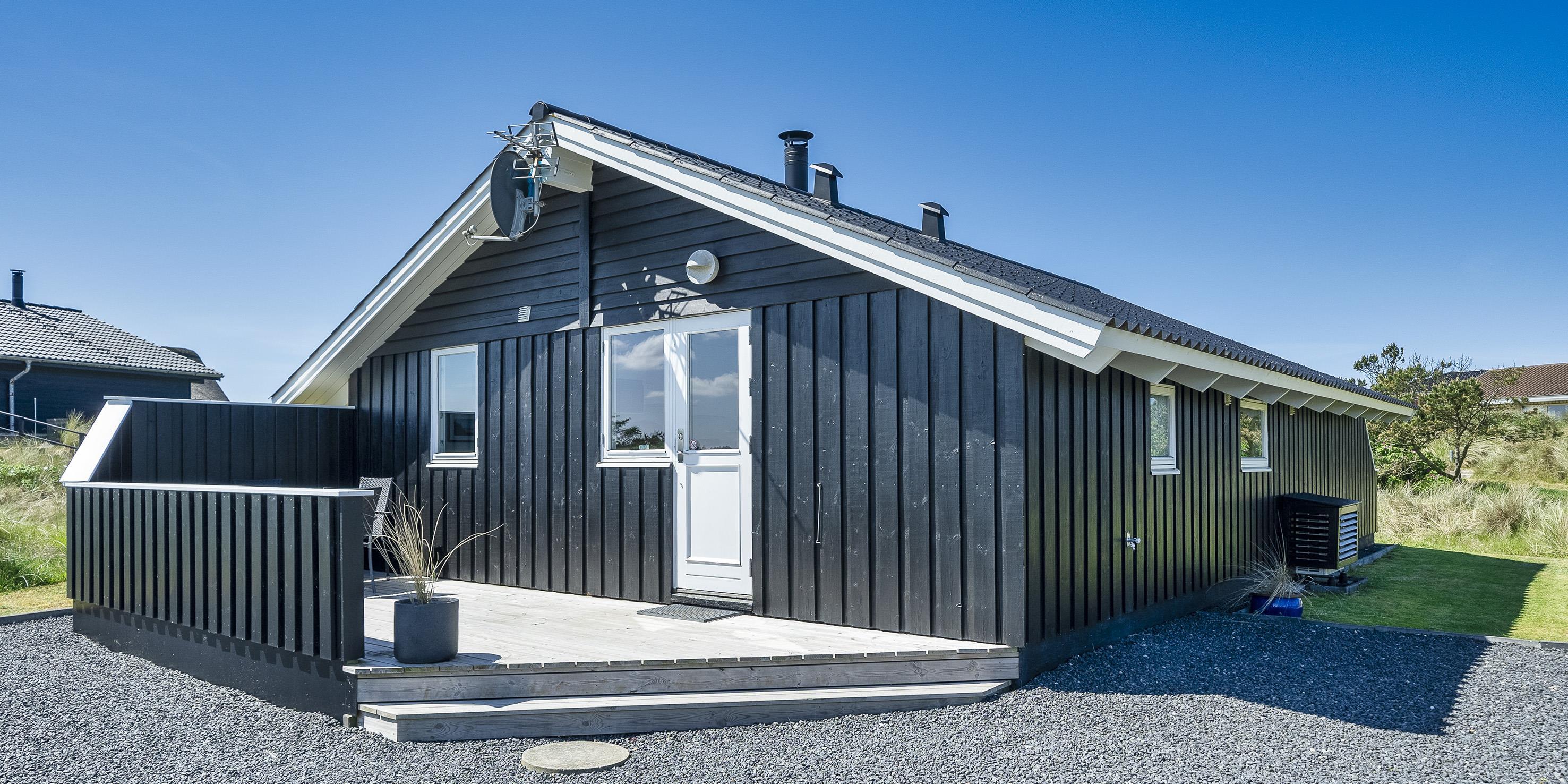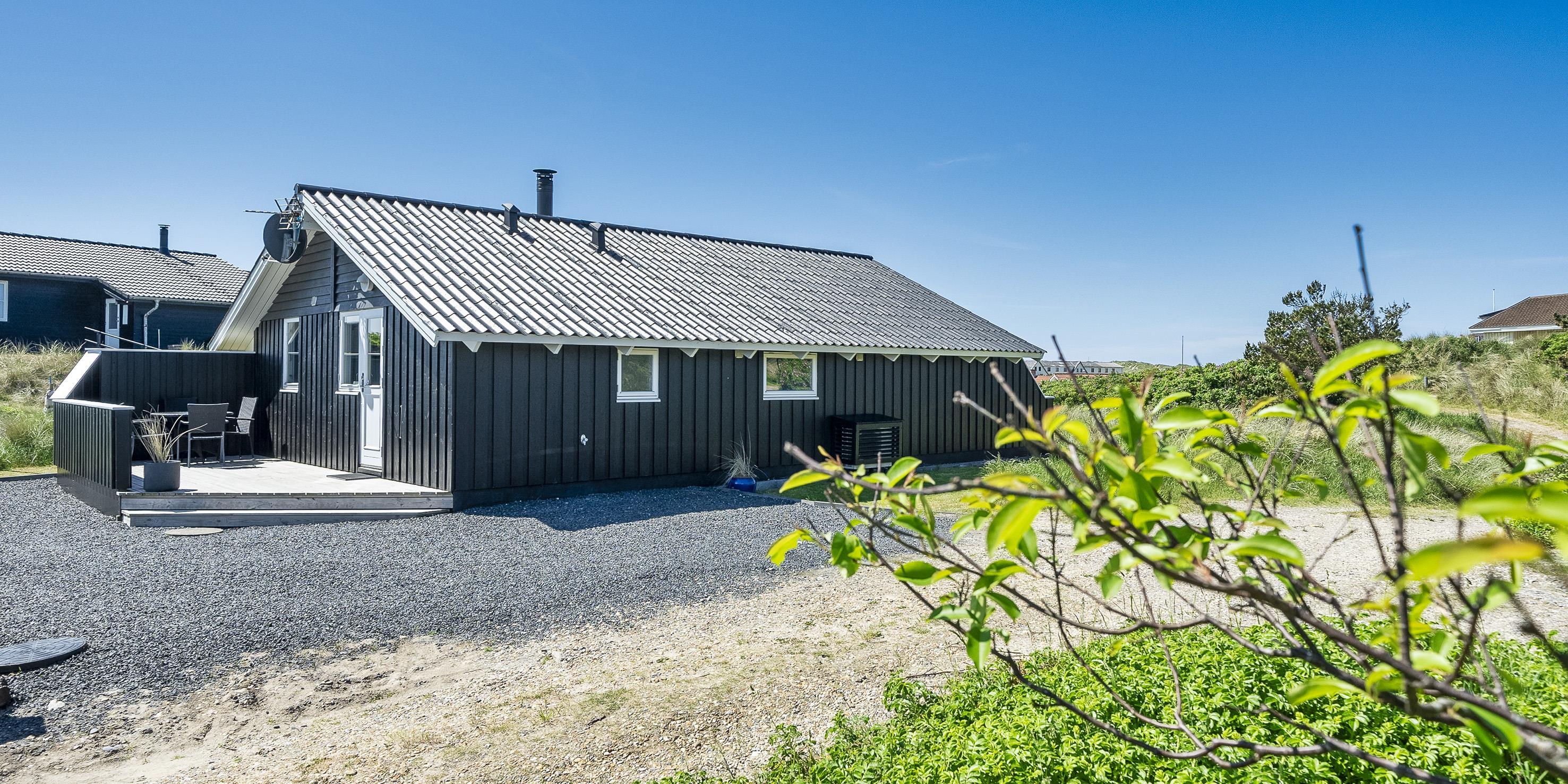 Tasteful summer house for 4 people, located on sand dune land, approx. 200 meters from the beach. Living room with fireplace, television and satellite(no Danish programmes). Kitchen with dishwasher and microwave. Bathroom with shower/wc, sauna and washing machine. 3 bedrooms: DB + B + B. 1 bedroom with 1 double bed and 2 bedrooms with 1 single bed each. Closed terrace. Heat pump. Pets are not allowed - with the exception of one small dog! Pets are absolutely not allowed in the furniture and beds. Wireless internet access. No smoking in the house. Year of construction 2000.