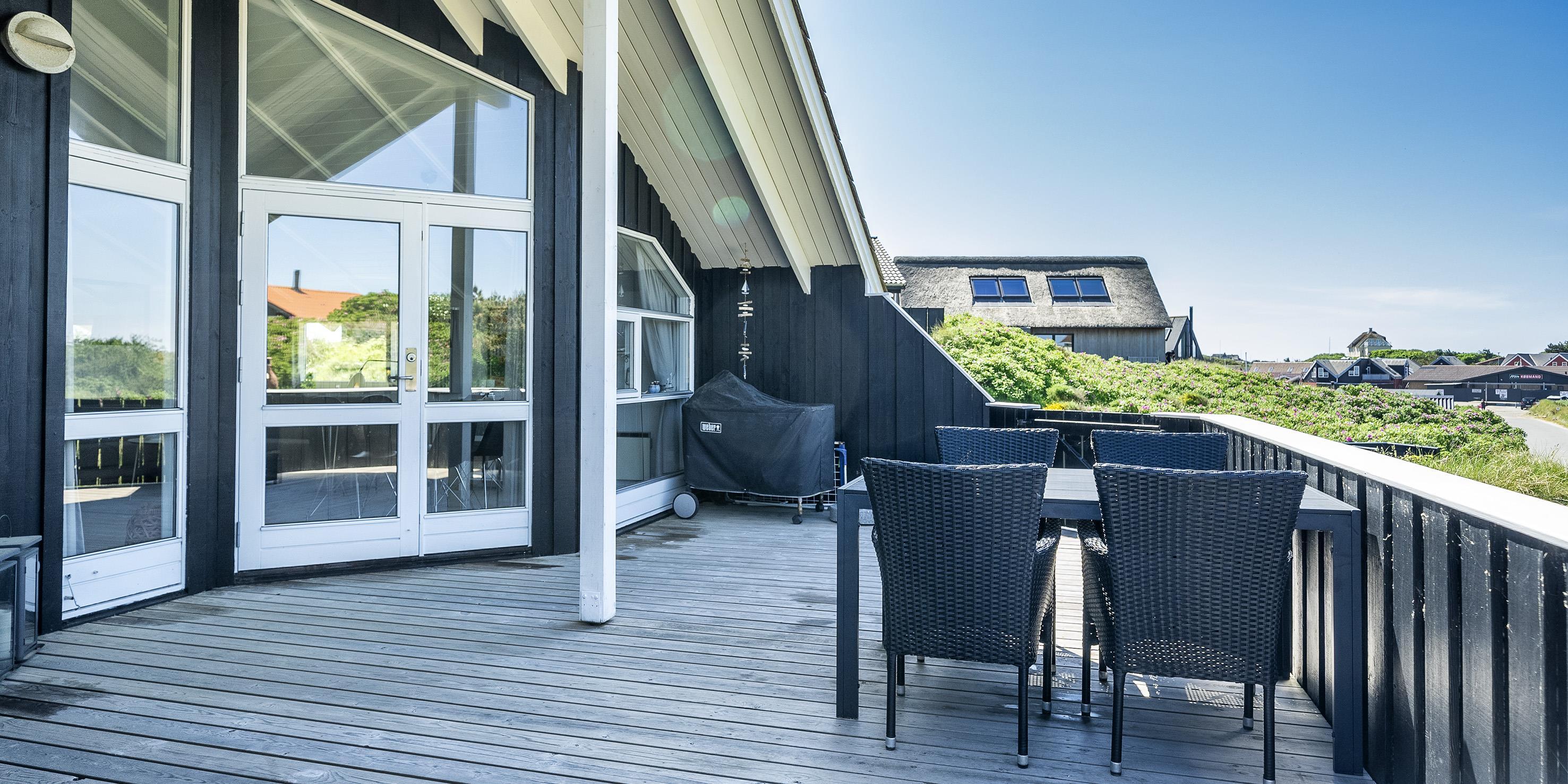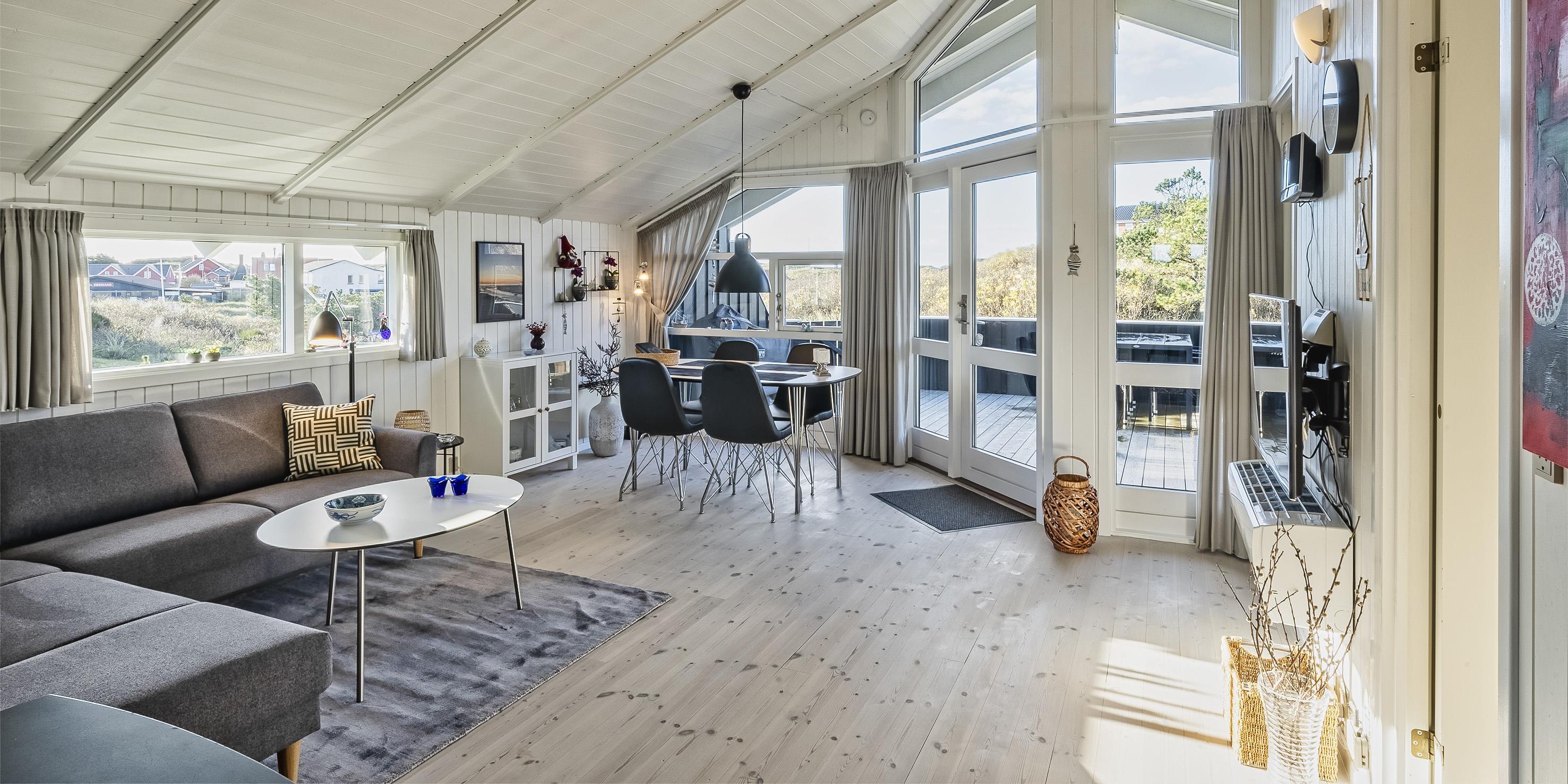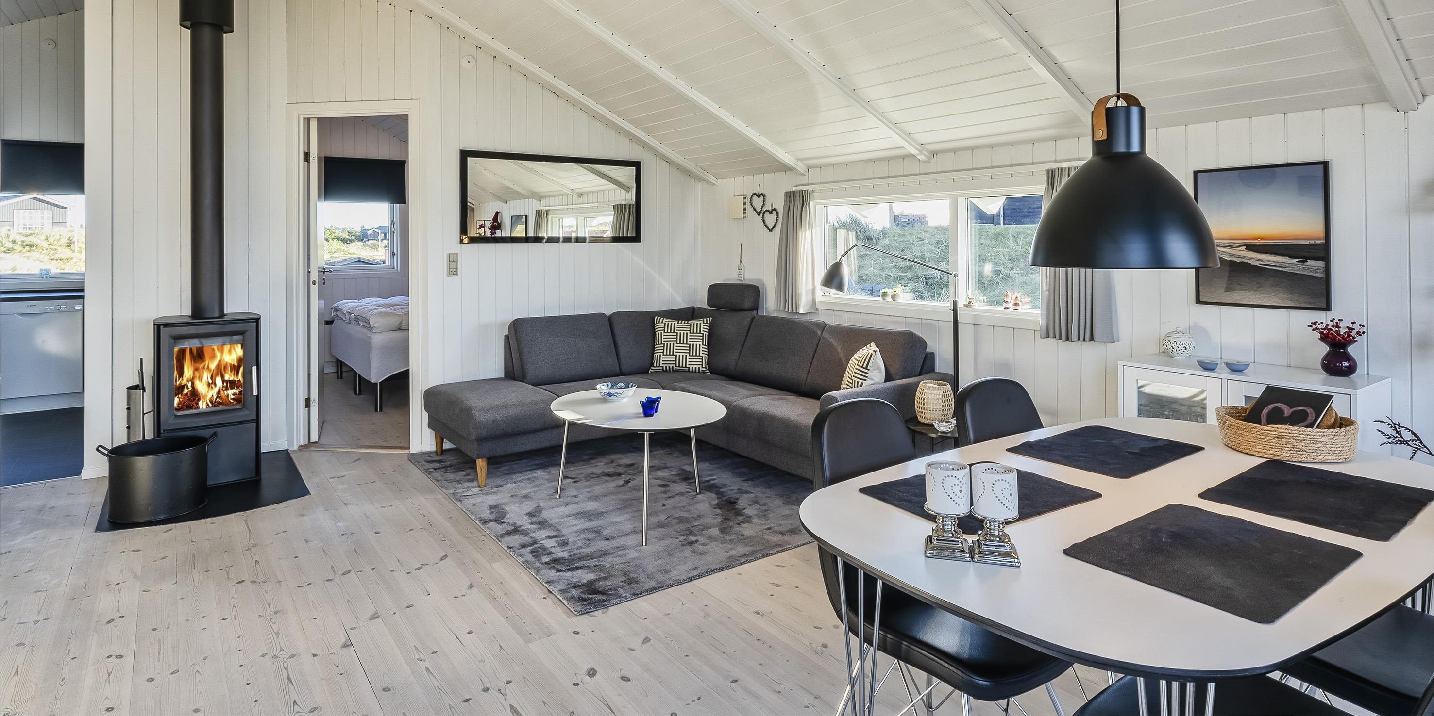 Tasteful summer house for 4 people, located on sand dune land, approx. 200 meters from the beach. Living room with fireplace, television and satellite(no Danish programmes). Kitchen with dishwasher and microwave. Bathroom with shower/wc, sauna and washing machine. 3 bedrooms: DB + B + B. 1 bedroom with 1 double bed and 2 bedrooms with 1 single bed each. Closed terrace. Heat pump. Pets are not allowed - with the exception of one small dog! Pets are absolutely not allowed in the furniture and beds. Wireless internet access. No smoking in the house. Year of construction 2000.