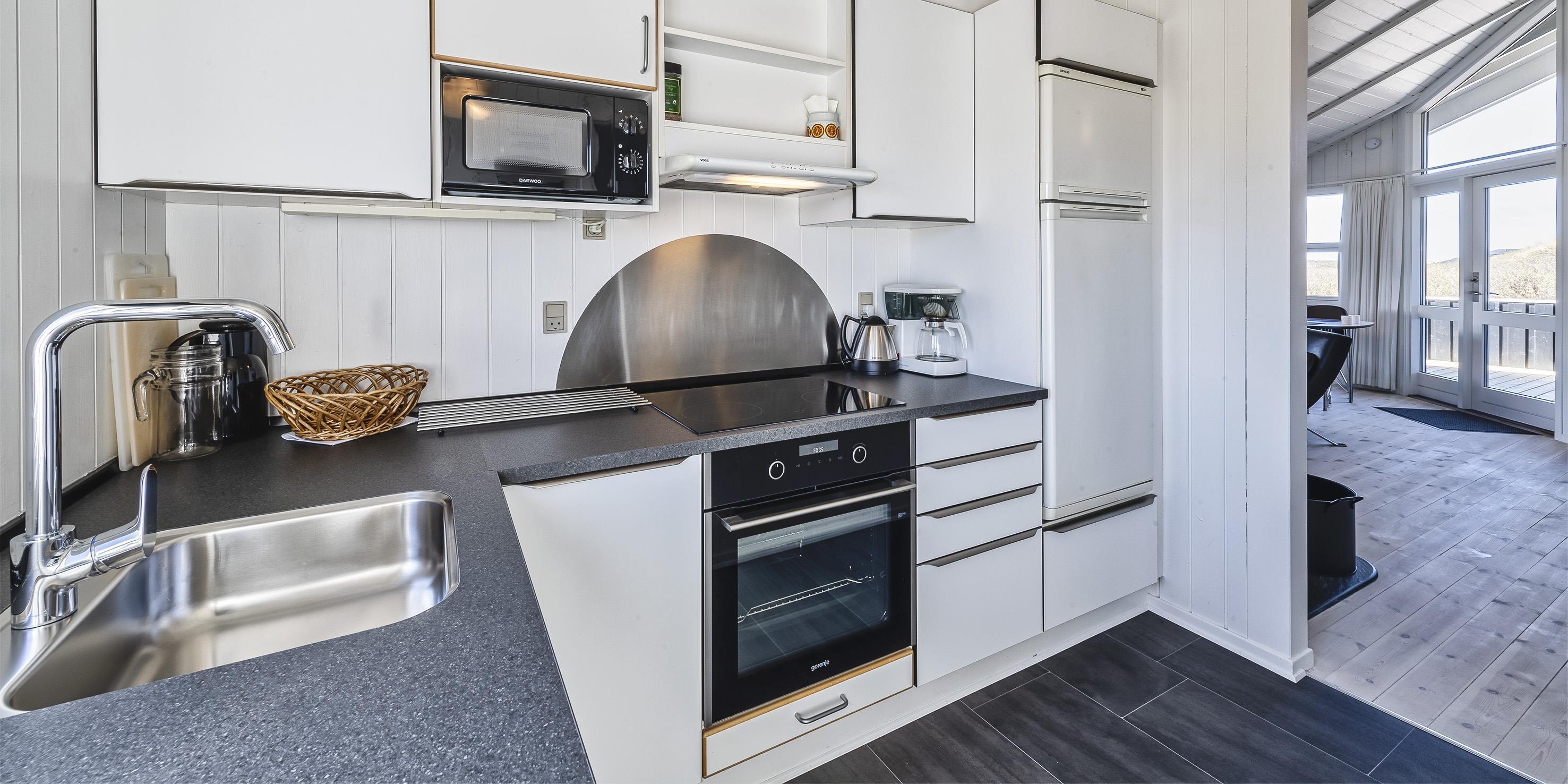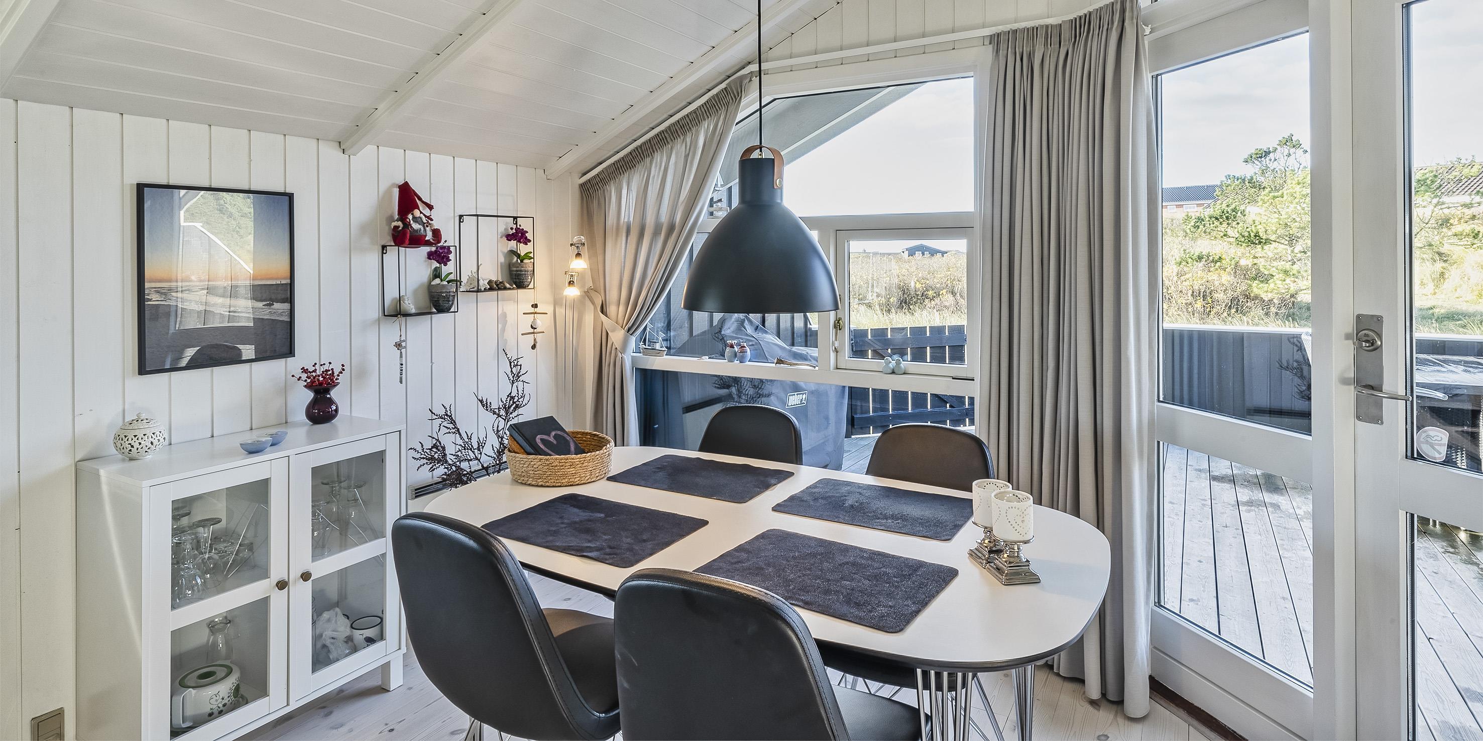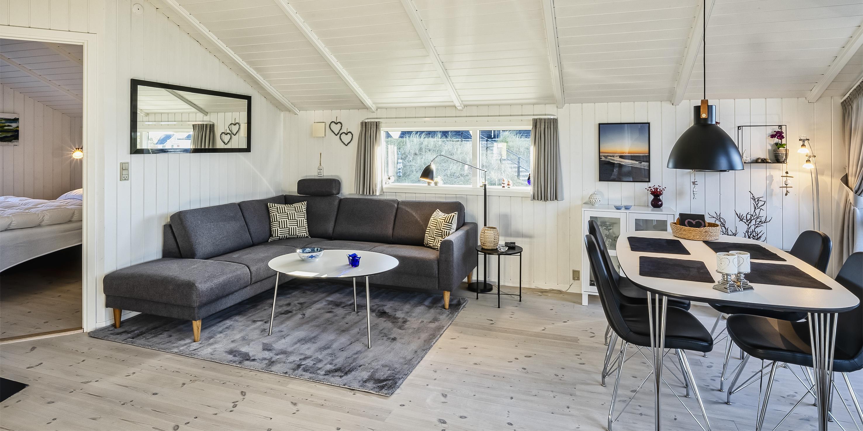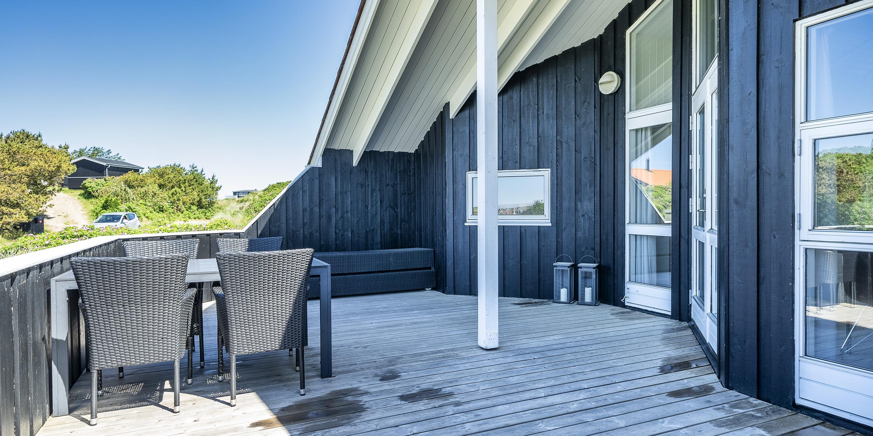 Tasteful summer house for 4 people, located on sand dune land, approx. 200 meters from the beach. Living room with fireplace, television and satellite(no Danish programmes). Kitchen with dishwasher and microwave. Bathroom with shower/wc, sauna and washing machine. 3 bedrooms: DB + B + B. 1 bedroom with 1 double bed and 2 bedrooms with 1 single bed each. Closed terrace. Heat pump. Pets are not allowed - with the exception of one small dog! Pets are absolutely not allowed in the furniture and beds. Wireless internet access. No smoking in the house. Year of construction 2000.