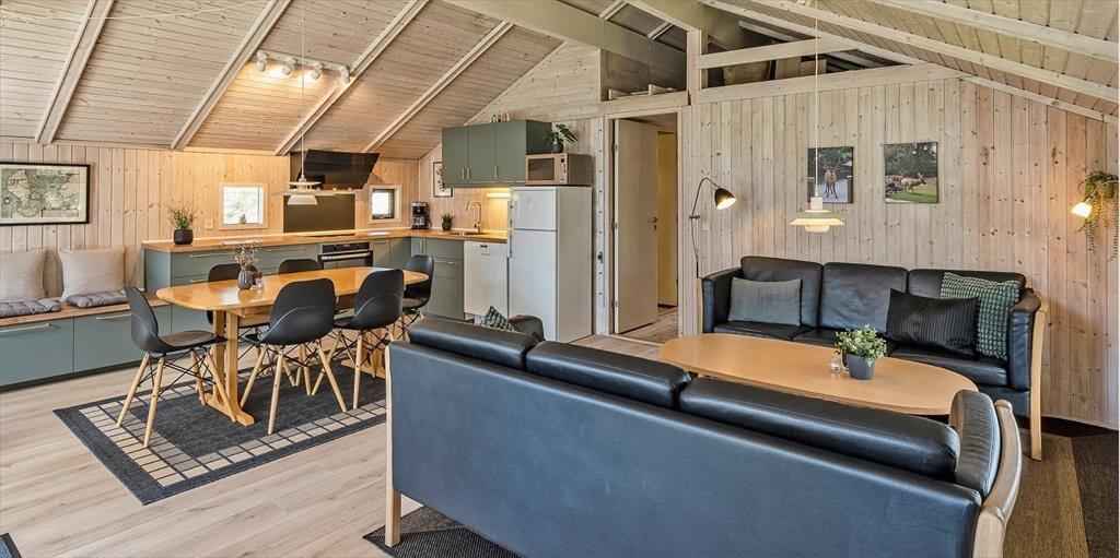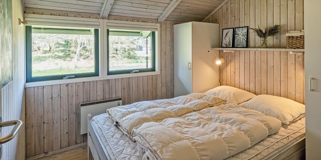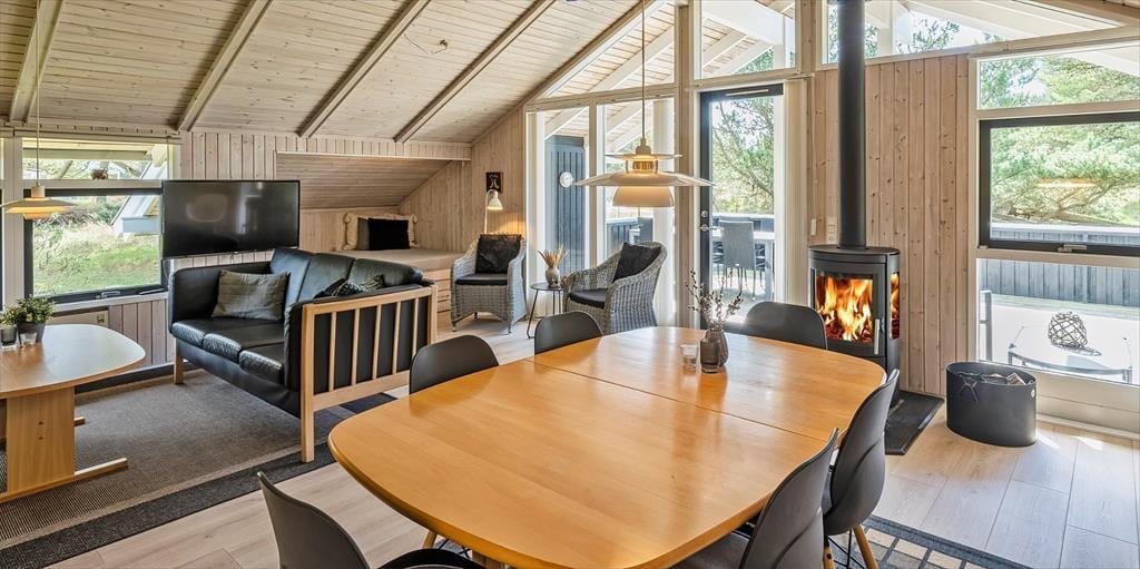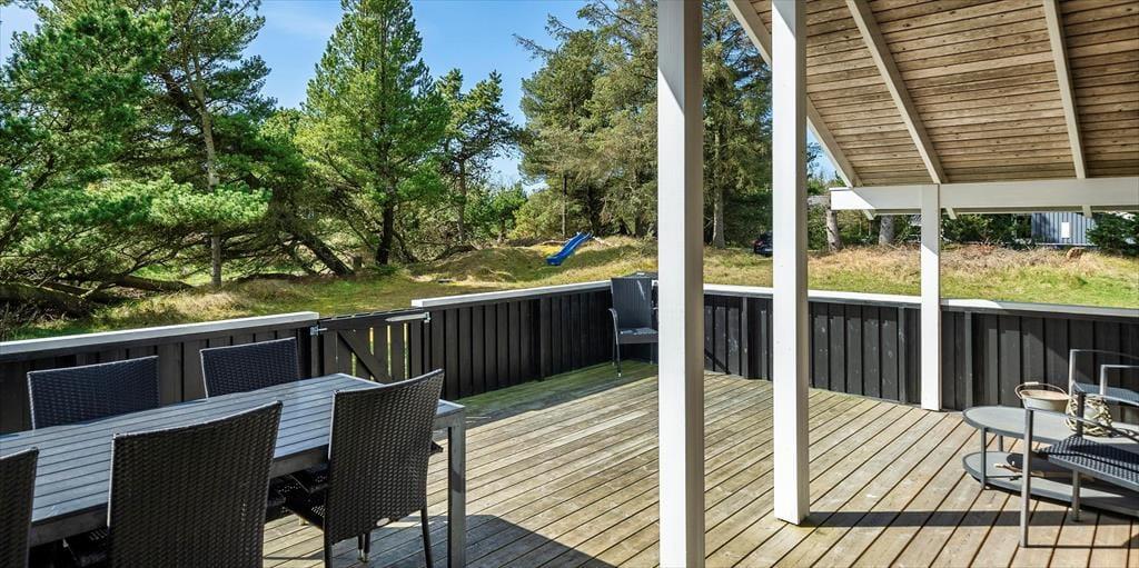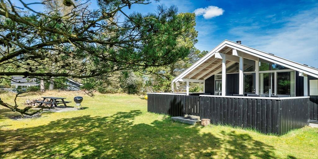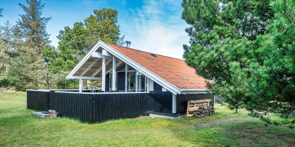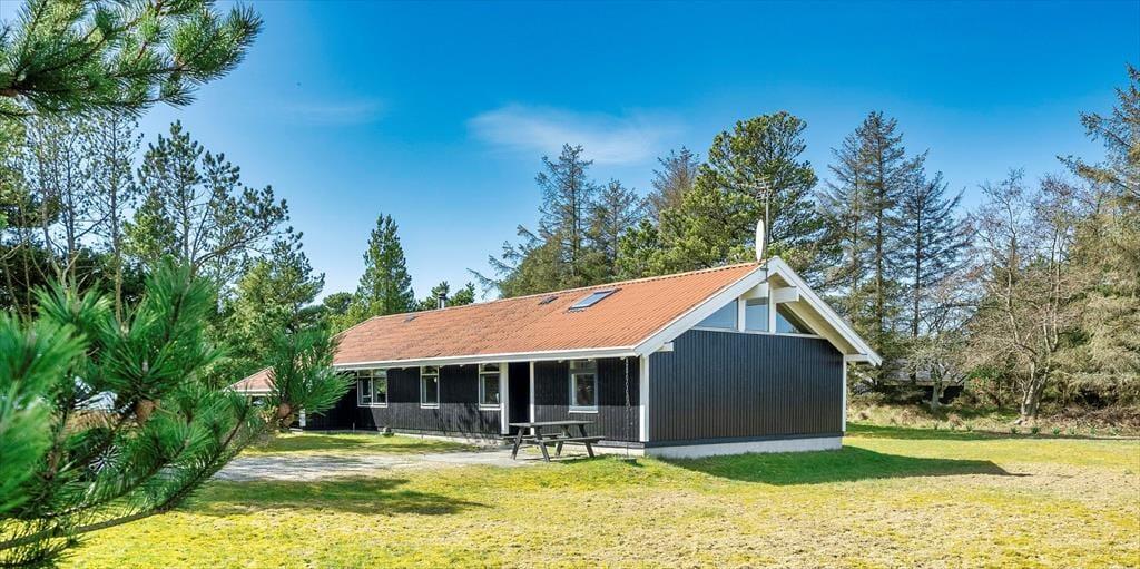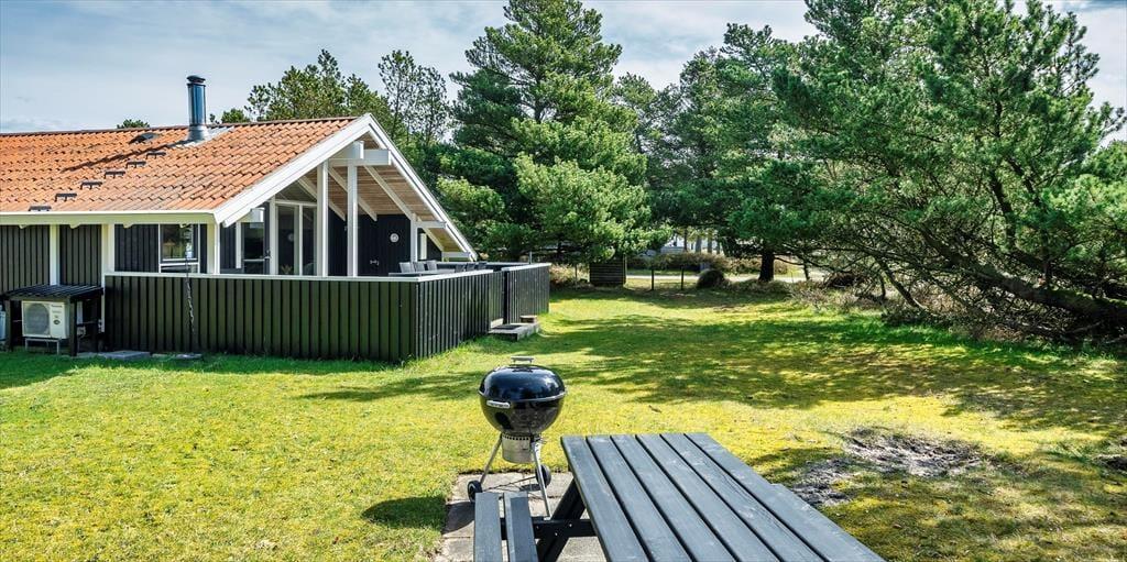 Dieses Familien freundliche Ferienhaus bietet Platz für 6 Personen und und 1,5 Km vom Strand entfernt. Auf dem grossen offenen Grundstück haben Ihre Kinder einen eigenen Spielplatz mit Schaukelstativ, Sandkasten und Bolzplatz. Das komplette Ferienhaus ist mit Holzfußboden ausgestattet. Im Wohn- und Essbereich befindet sich der Kaminofen und eine kleine kuschelige Ecke / Alkoven genannt, wo man sein Buch lesen kann und trotzdem dem Geschehen im Hause mit folgen kann. Deutsche Fernsehprogramme können über eine Parabolantenne empfangen werden. Die neue Küche ist mit einem Herd mit Cerankochfeld, einem Backofen, einer Geschirrspülmaschine und einer Kühl/ Gefrierkombination ausgestattet. Es sind 2 Schlafzimmer mit jeweils einem Doppelbett und 2 Schlafzimmer mit jeweils 2 Einzelbetten vorhanden. Ein separater Abstellraum bietet viel Platz für die Dinge, die nicht täglich im Gebrauch sind. Ein Gäste WC mit Dusche und Handwaschbecken vorhanden. Das große Badezimmer verfügt über eine Dusche, ein WC, ein Handwaschbecken und die Waschmaschine ist hier auch untergebracht. Die Terrasse ist hübsch angelegt und ein kleiner Teil ist überdacht.