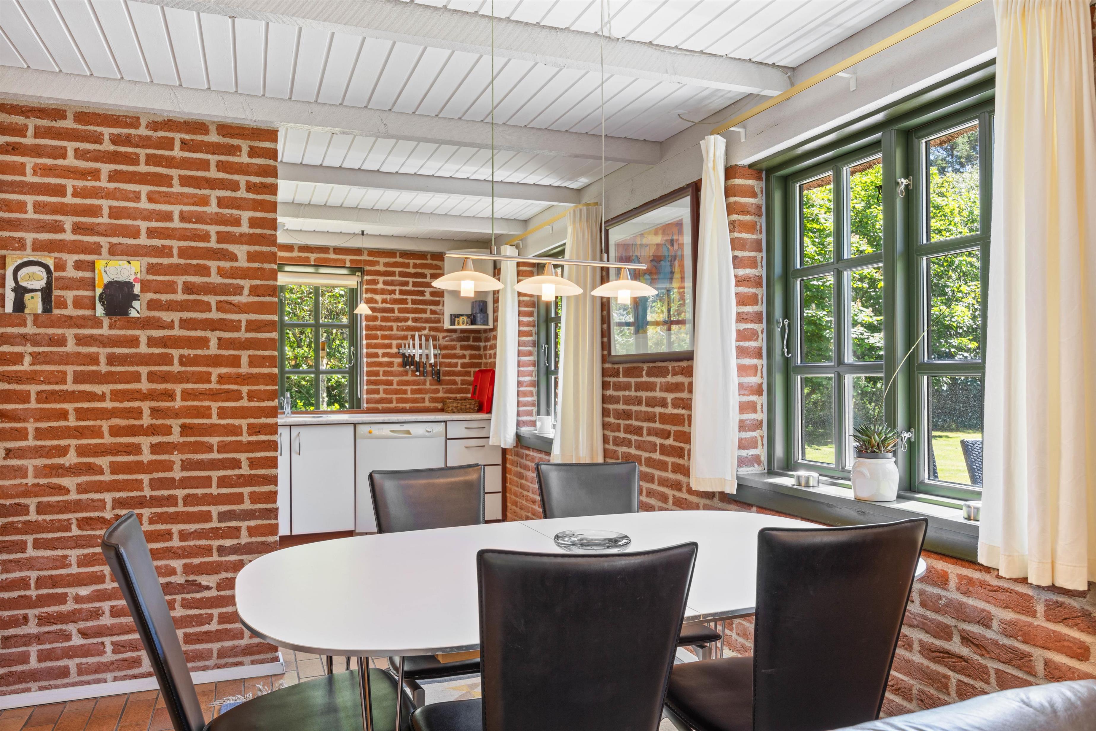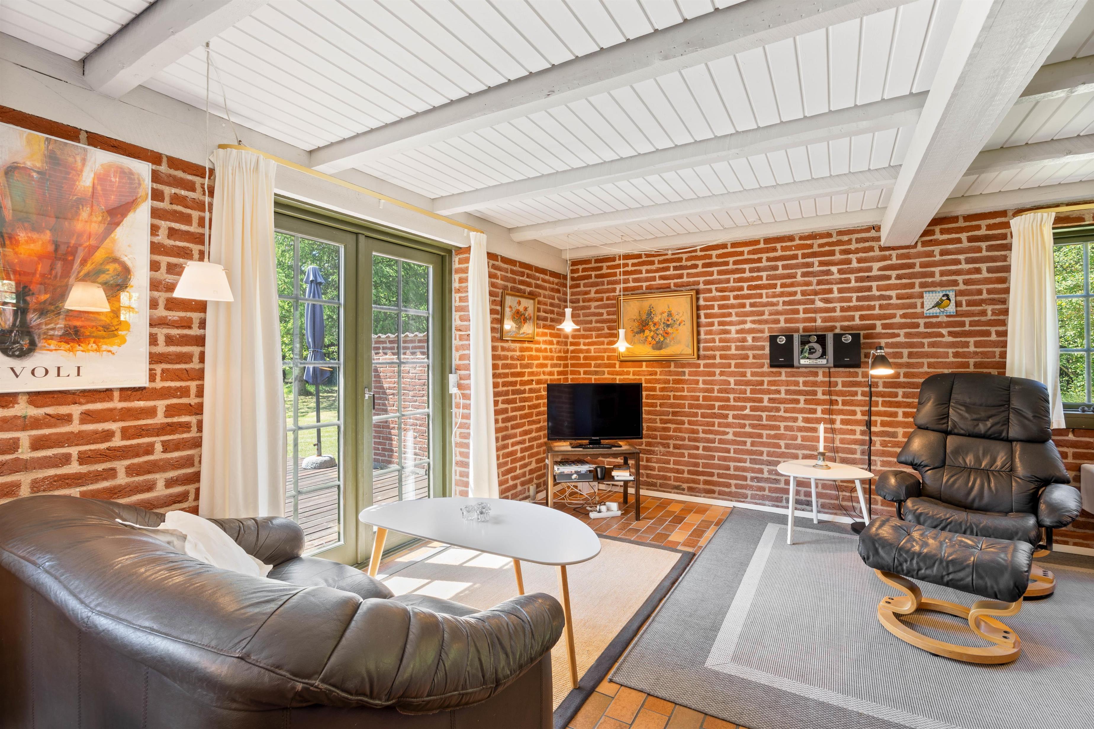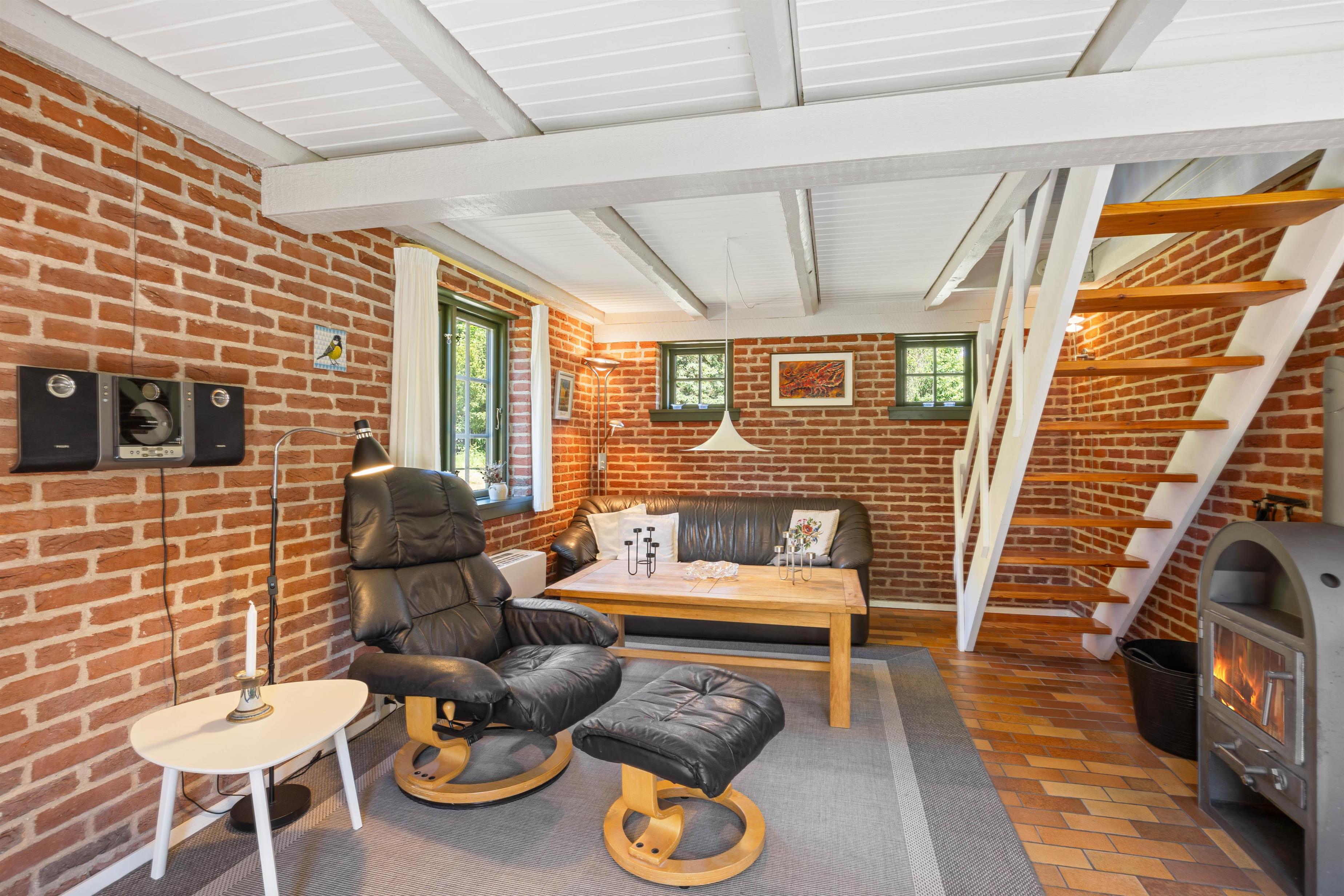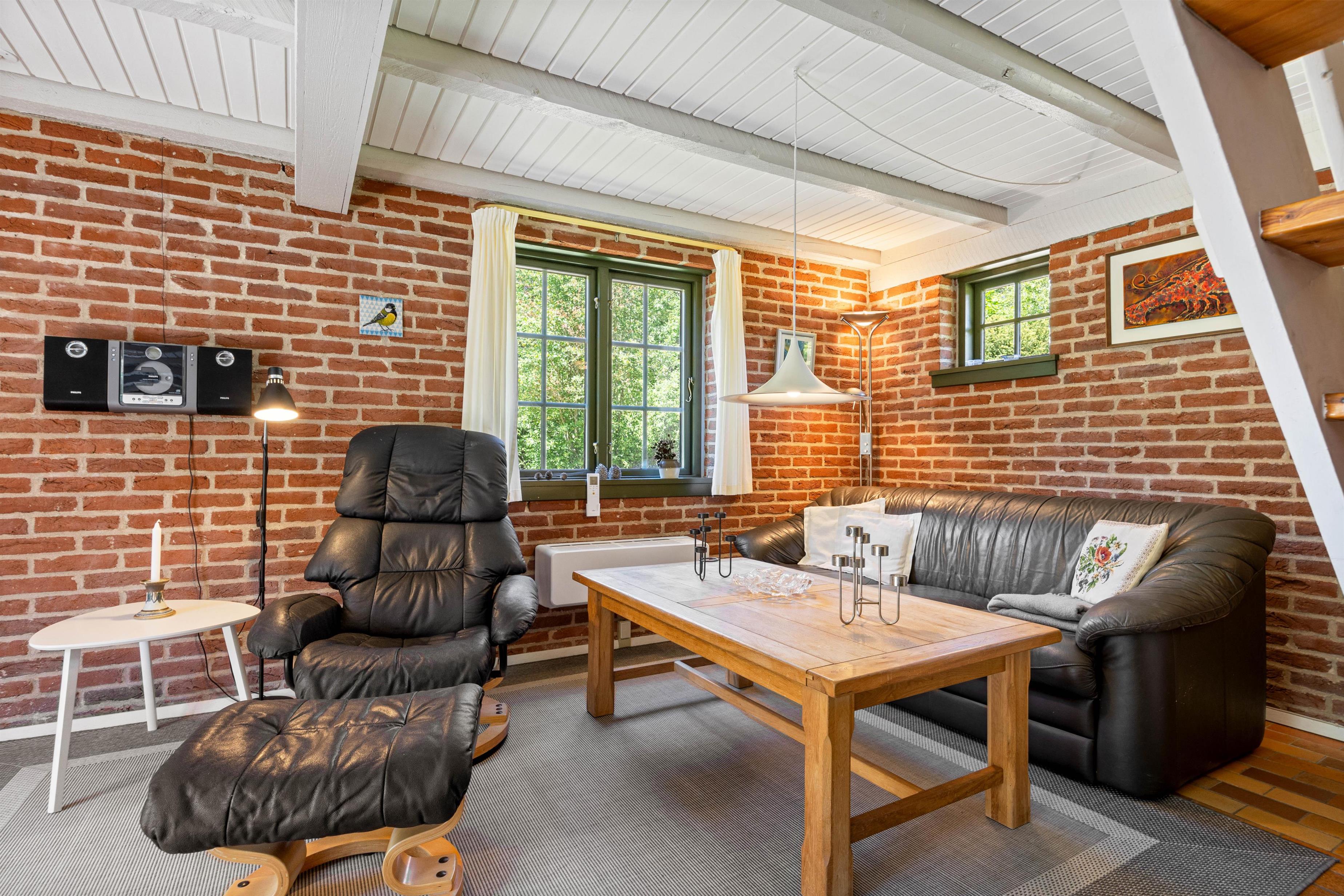 Upon entering the holiday home, you'll be welcomed by typical Danish décor. The brick walls create a cosy holiday atmosphere. The holiday home spans two levels with a bathroom and a guest toilet. For additional holiday relaxation, there's a sauna at your disposal.