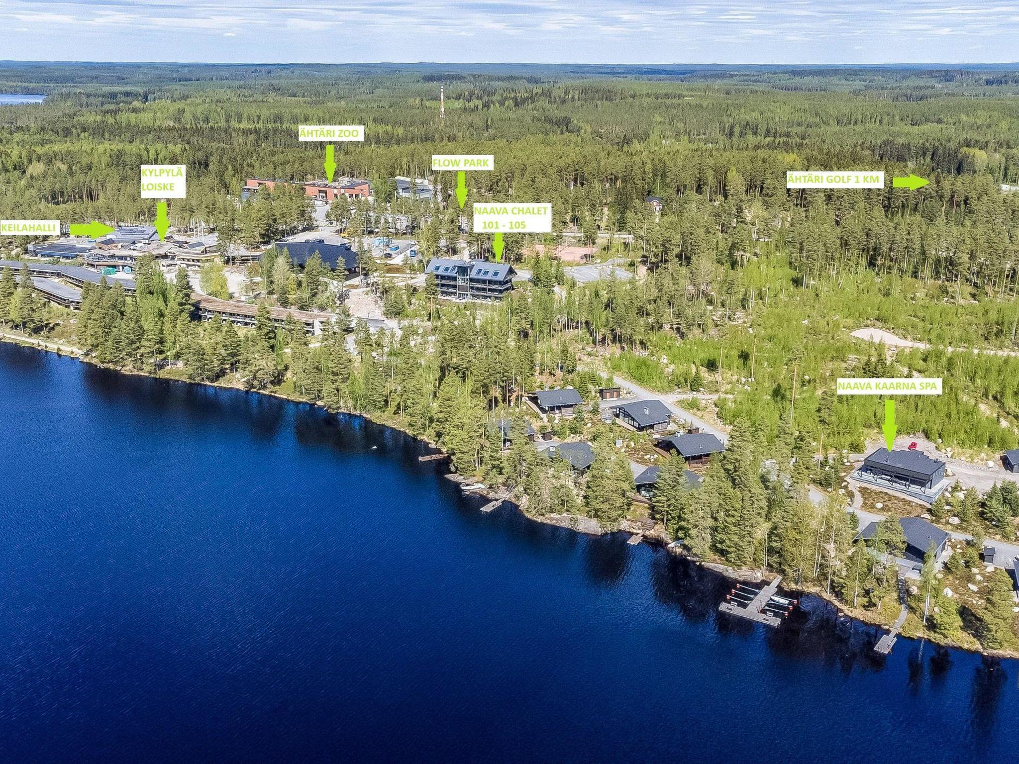 8 km of Ähtäri, Lake Hankavesi 100 m, log/stone-built apartment (built in 2017), own kitchen, sauna (electric sauna stove), bathroom with a WC, bedroom with a double bed, living room with a sofa bed for two, and private furnished terrace.