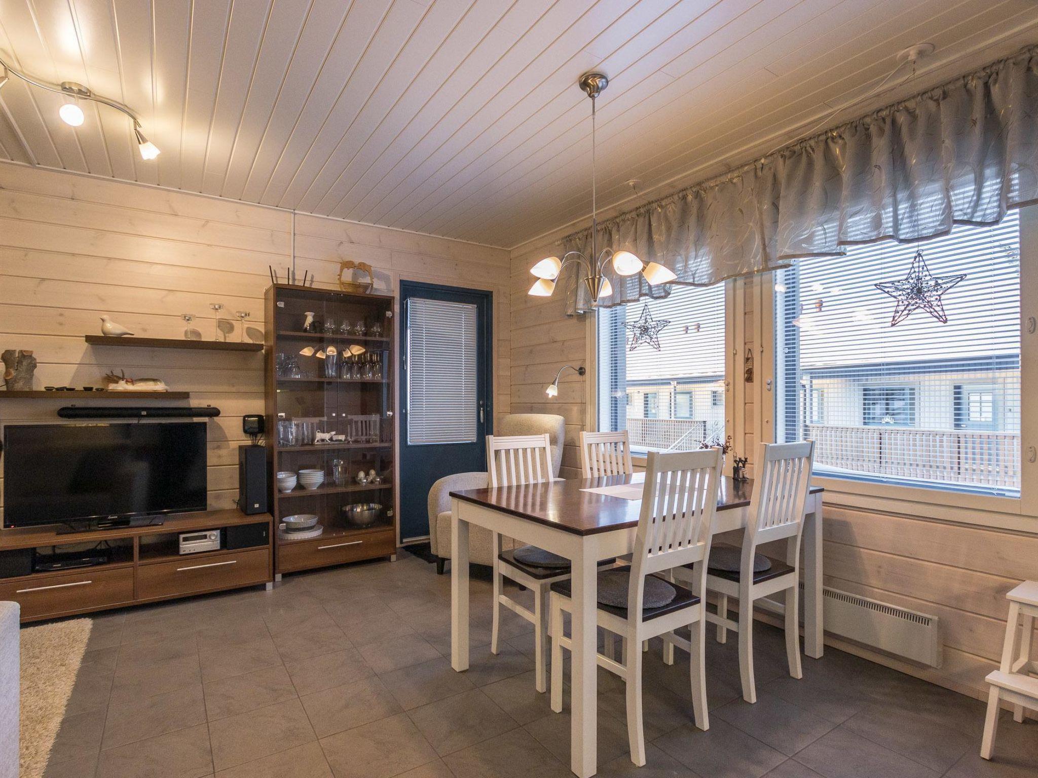 40km north of Kolari, Äkäslompolojärvi 200m, beach 2km, holiday apartment finished in february 2011(2nd floor of building), 2 bedrooms, both of which have two separate beds, kitchen, sauna (electric heated), bathroom/wc. Balcony with 2 chairs and a table. Ski tuning room is next to the apartment. On the lower floor commercial premises.