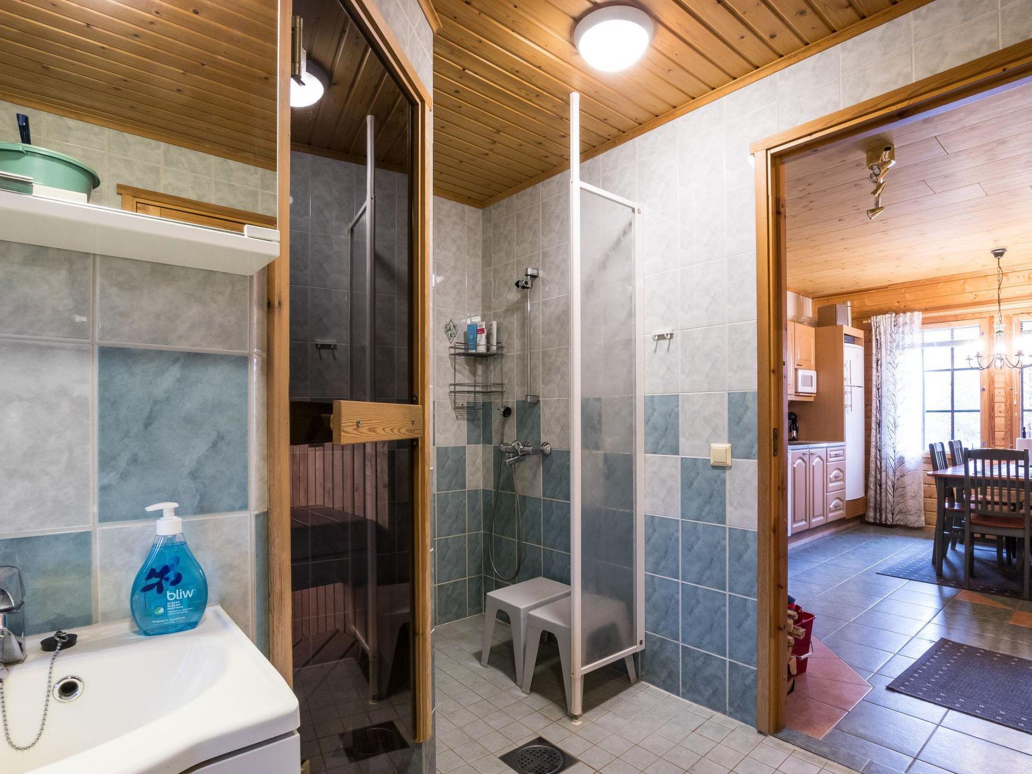 40 km north of Kolari, lake Äkäslompolo 1 km, swimming beach 2,5 km. Wooden semi-detached house apartment 2000. Livingroom/kitchen, two bedrooms, one with a double bed and the other with a bunk bed with expandable lower portion, sofabed in living room, sauna (electric), shower/toilet.