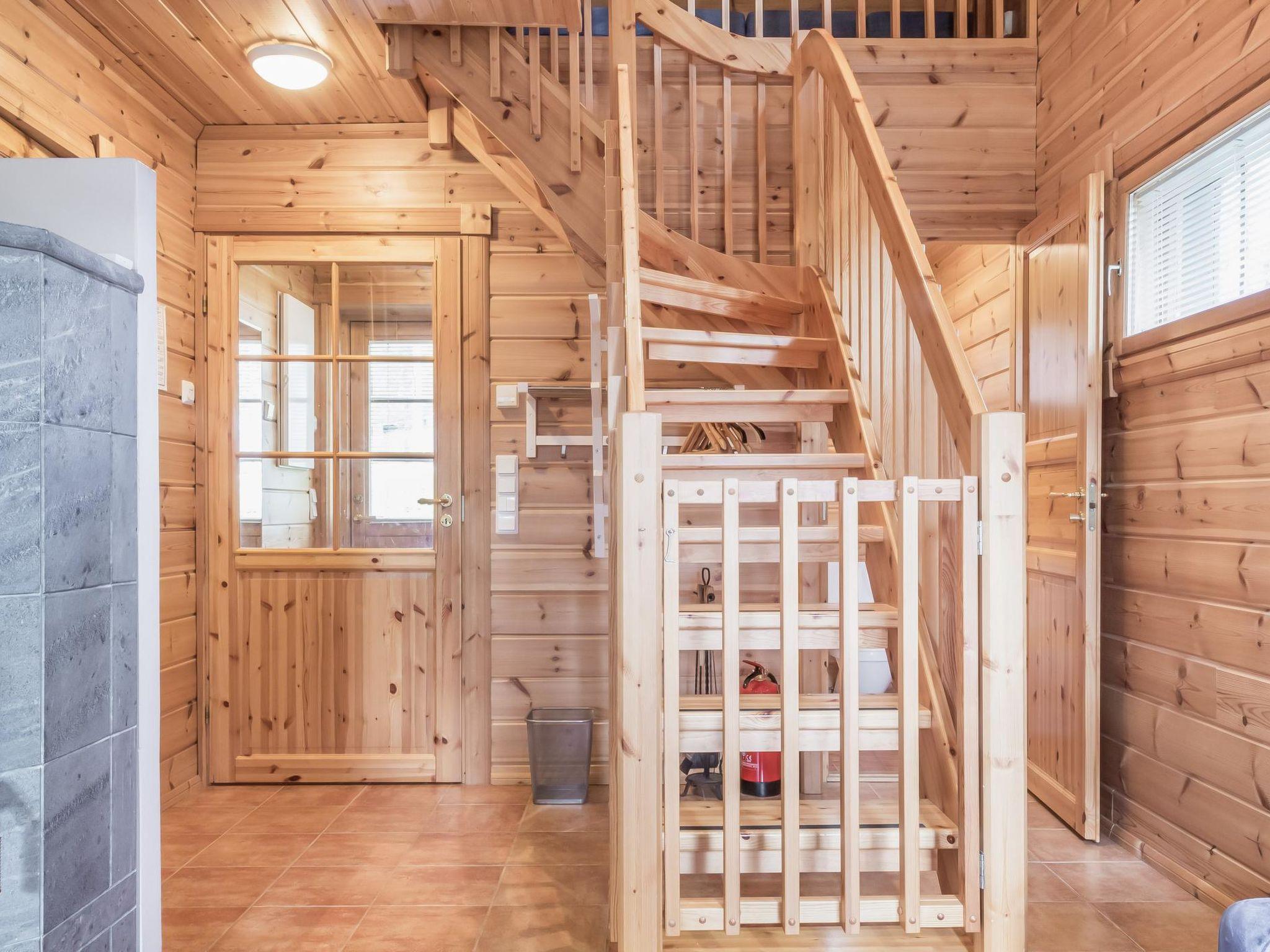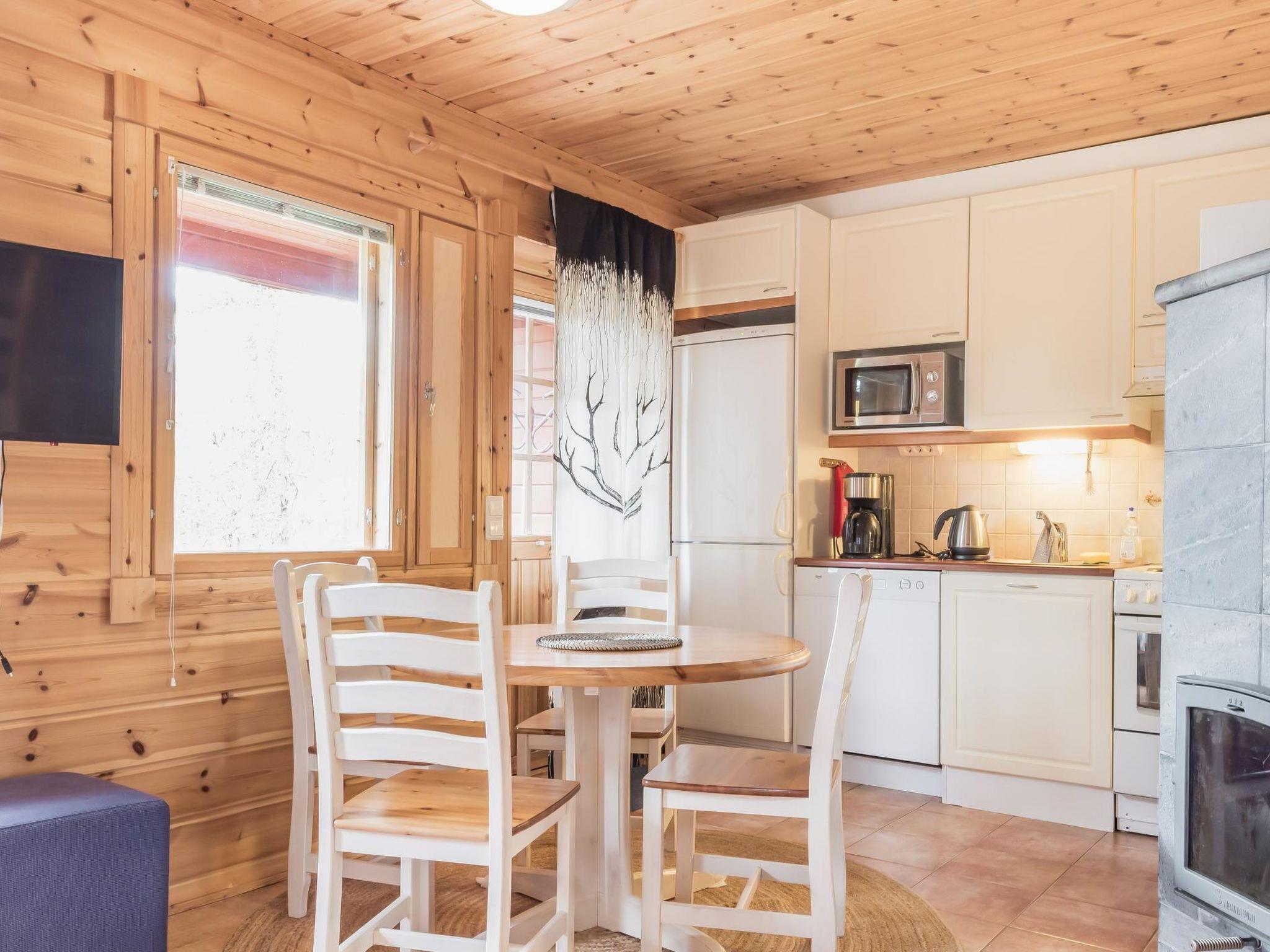 40 km north of Kolari, lake Äkäslompolo 1,5 km, lake Pikku-Kaupinjärvi 500 m, lake Iso-Kaupinjärvi 1,2 km, swimming beach 3 km. Log rowhouse apartment 50 m² + upstairs 12 m² , built 2005. IN downstairs livingroom/kitchen,sauna (electric), shower, separate toilet.