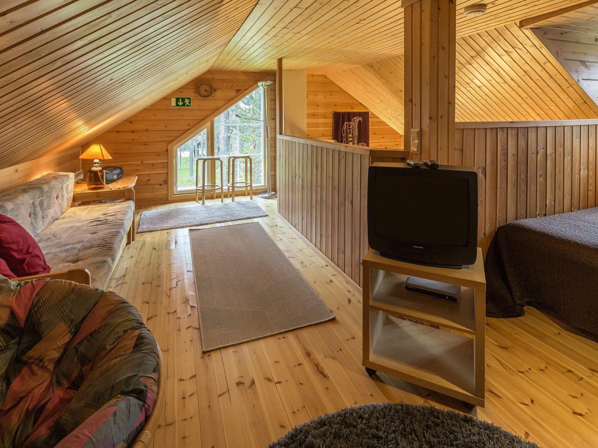 40 km north of Kolari, lake Äkäslompolo 1,8 km, swimming beach 3,3 km. Log semi-detached house apartment 2002. Livingroom/kitchen, one bedroom with a double bed (140 cm), loft (25 m2) with 2 separate beds and a bedsofa, sauna (electric), shower/toilet. Shared ski maintenance room for apartments A and B.