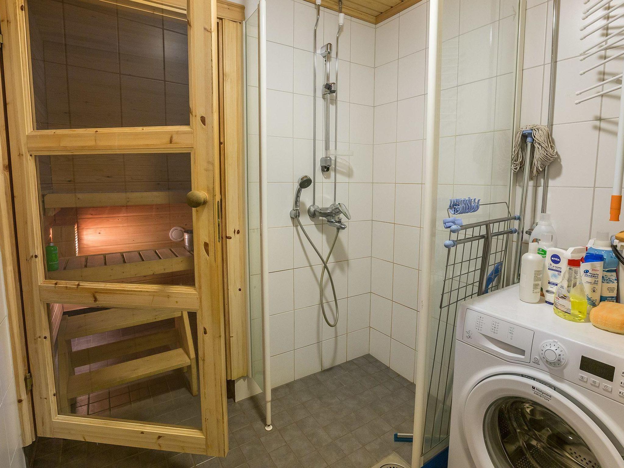 Log semi-detached house apartment 2006. Livingroom/kitchen, one bedroom with 2 beds side by side, spacious loft (11 m²) three separate beds, sauna (electric), shower, separate toilet. Child safety gates at both ends of the loft stairs.