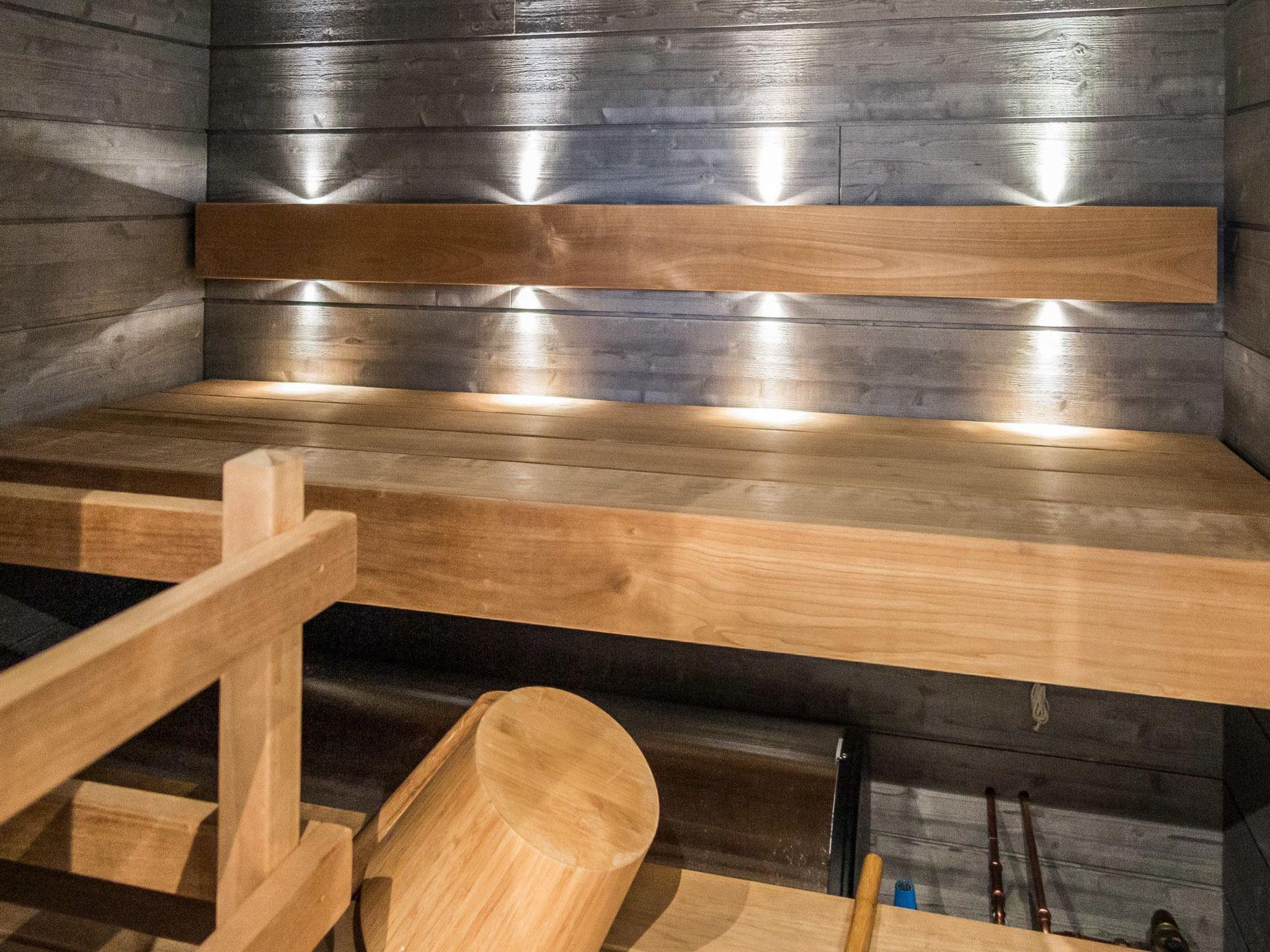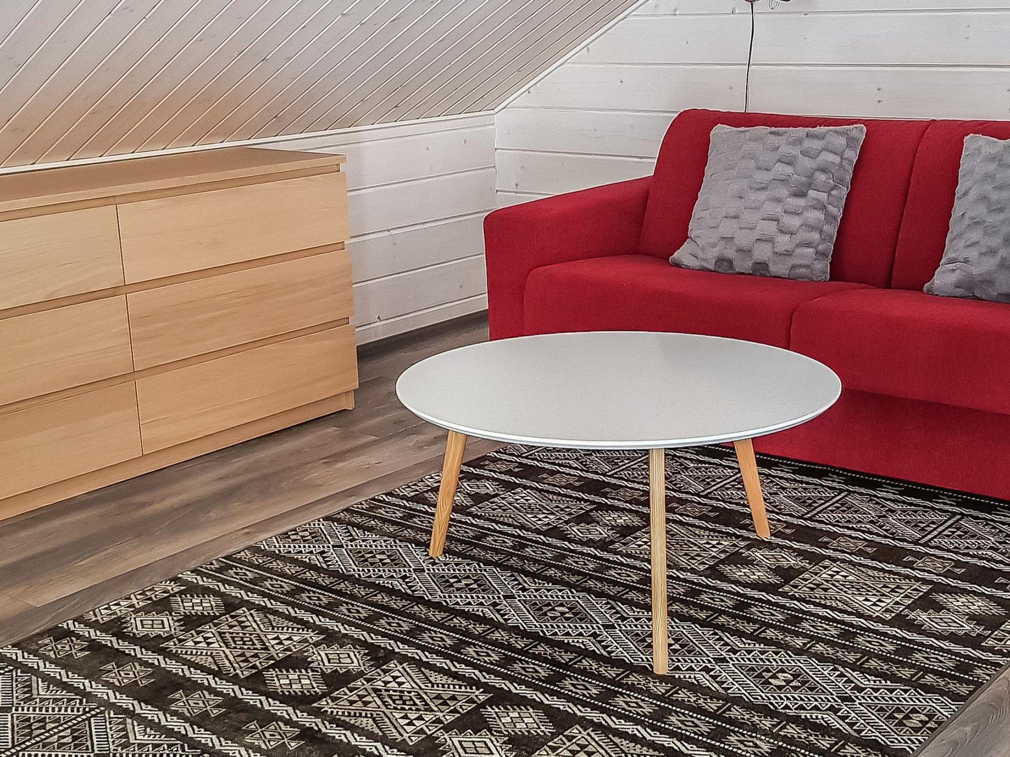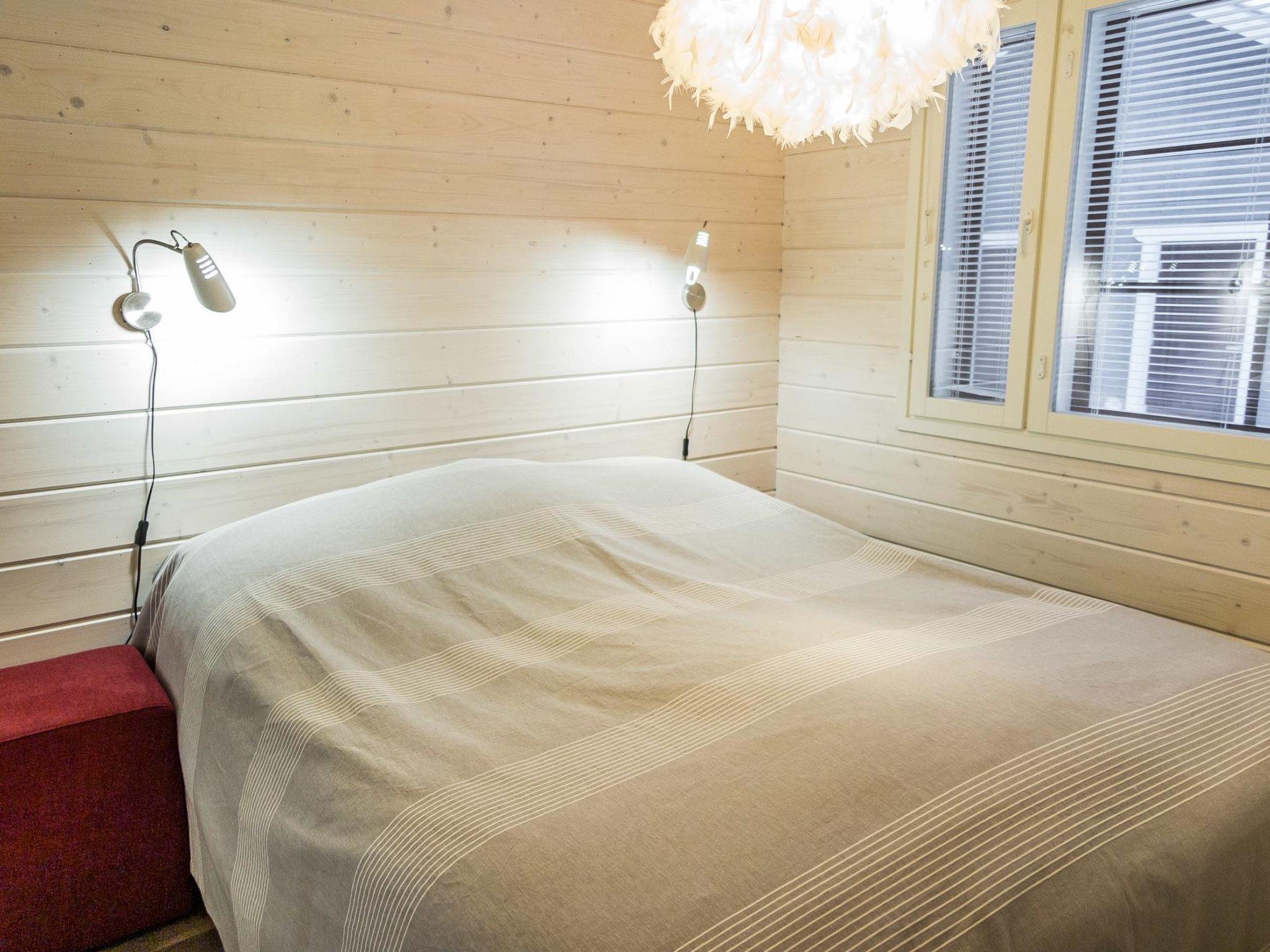 40 km north of Kolari, log-panelled duplex apartment, built 2018. Livingroom/kitchen, 1 bedroom with 2 separate beds, loft with 2 separate beds and extendable bed sofa, sauna ( electric heater), shower, toilet.