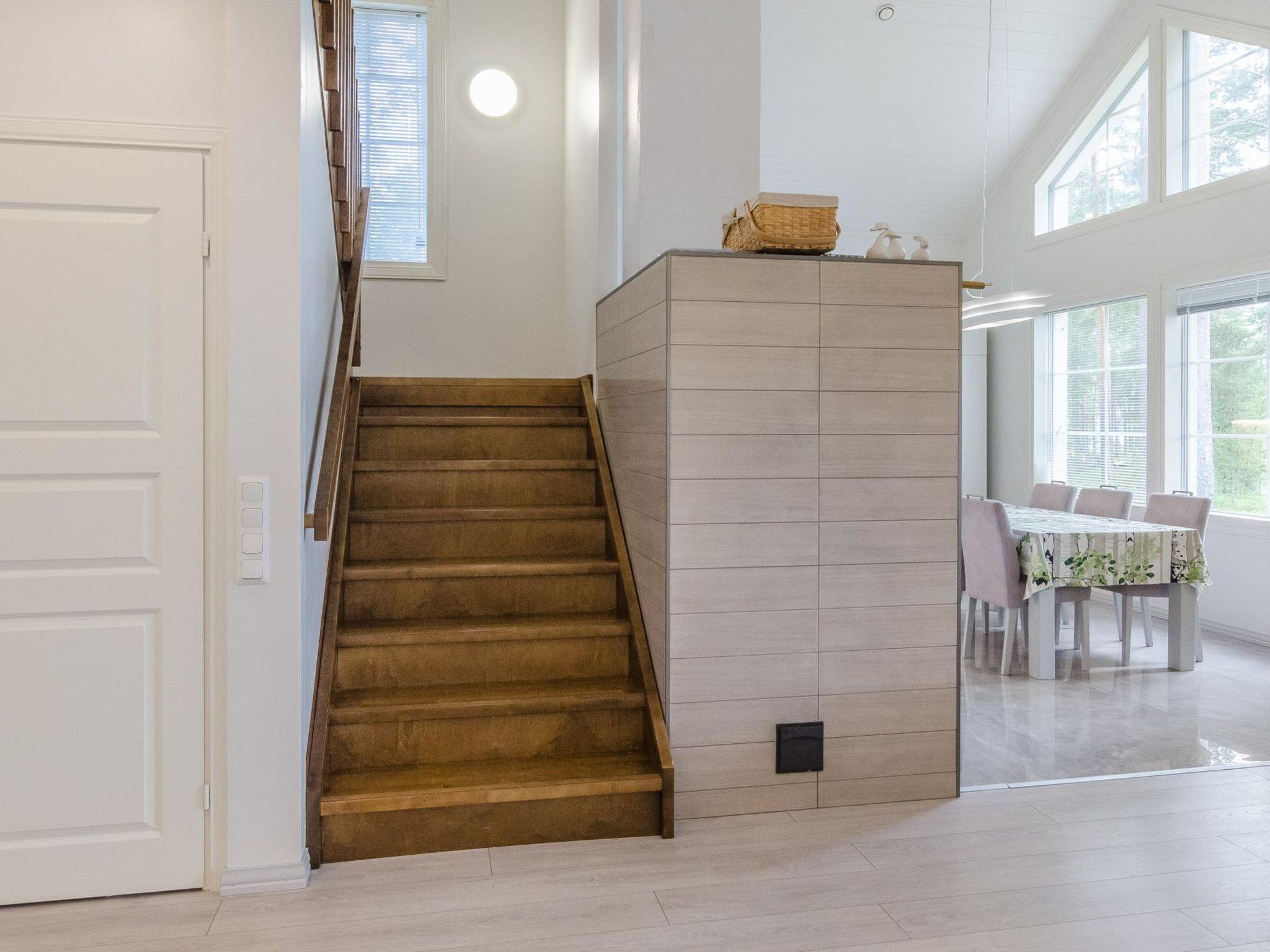 49 km northeast of Joensuu, Lake Pielinen (871.2 km²) 30 m, shallow sandy beach with some small stones, own beach, a private boat, and a large pier. An outboard motor can be requested from the owner free of charge if you know how to use it. The holiday home was built in 2020. The ground floor features a living room/kitchen and two bedrooms, each with 2 beds. The ground floor also has a large utility/dressing room, a bathroom, an electric sauna, and a WC. The upper floor includes two bedrooms, each with 2 beds, a lounge area with a TV, and a WC. The terrace has a gas grill and terrace furniture for 8 people. The holiday home is equipped with mechanical ventilation and the sauna building has an air-source heat pump.