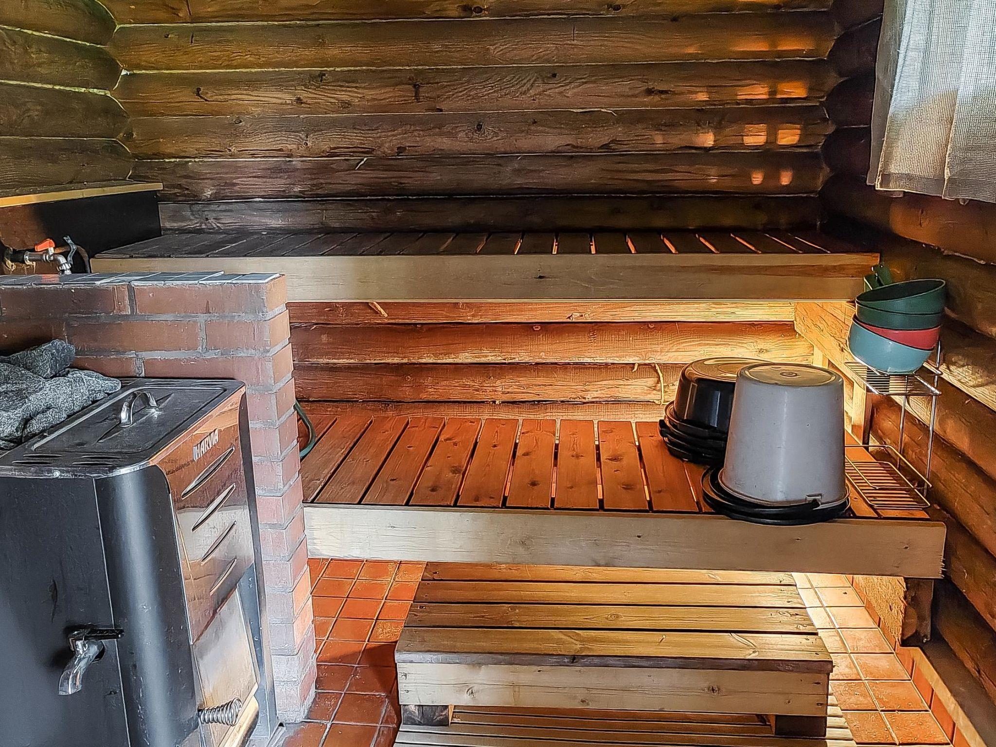 Separate lakeside sauna (wood-burning sauna stove, cold water tap) and cooking hut.