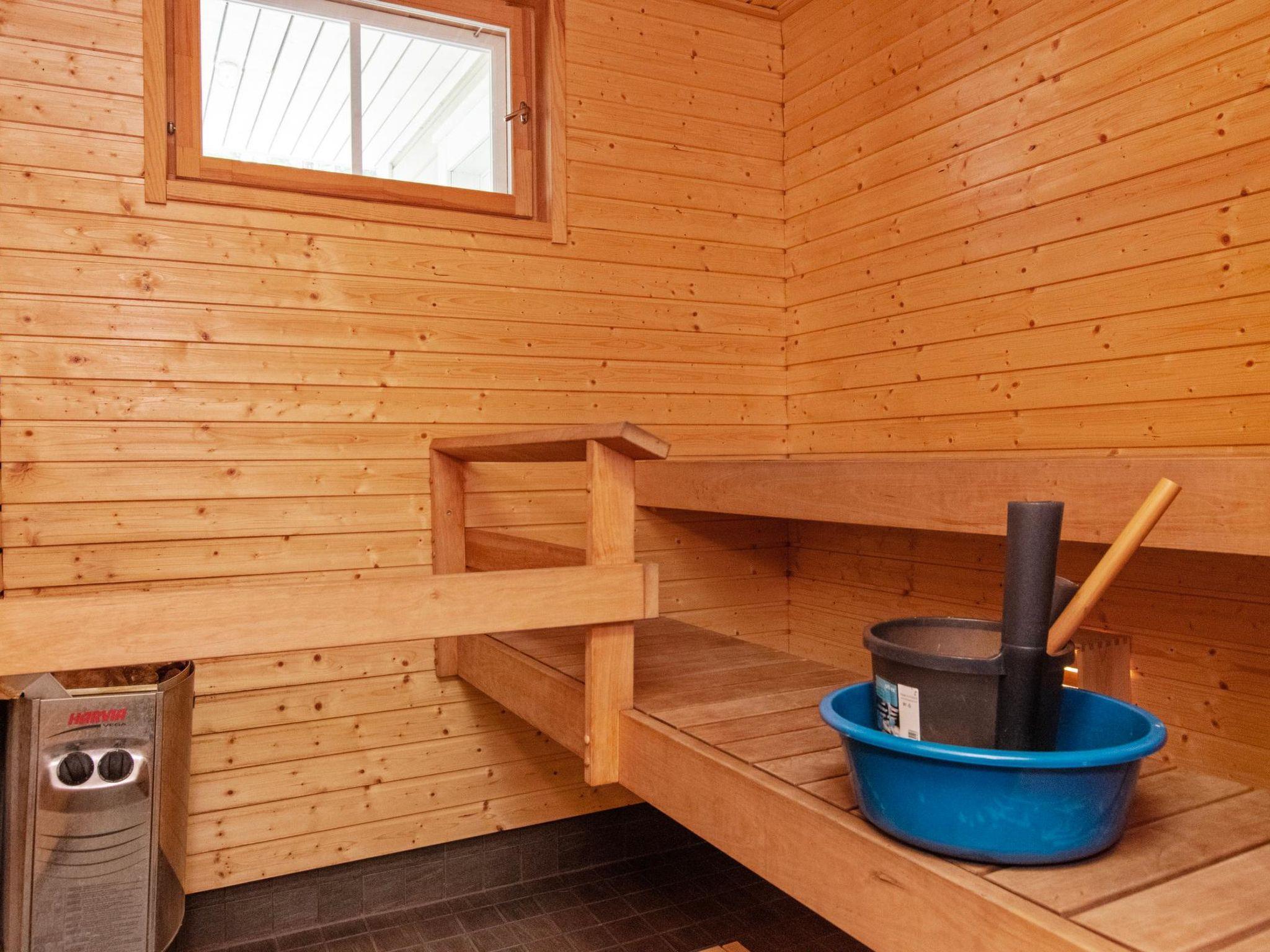 The lakeside sauna, built in 1978, includes a dressing room and a wood-burning sauna stove with a water heater tank. Water must be carried from the lake. The sauna is available year-round. There is also a cooking hut.