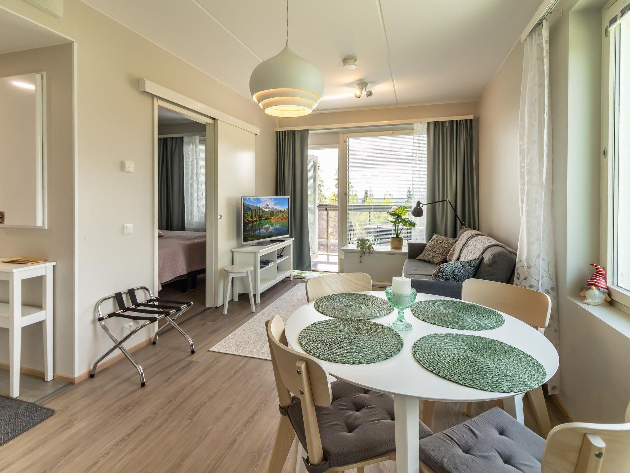 A modern holiday apartment in the Tieva area of Levi, close to the South and West slopes. Views of Aakenustunturi and Levi's West slopes.