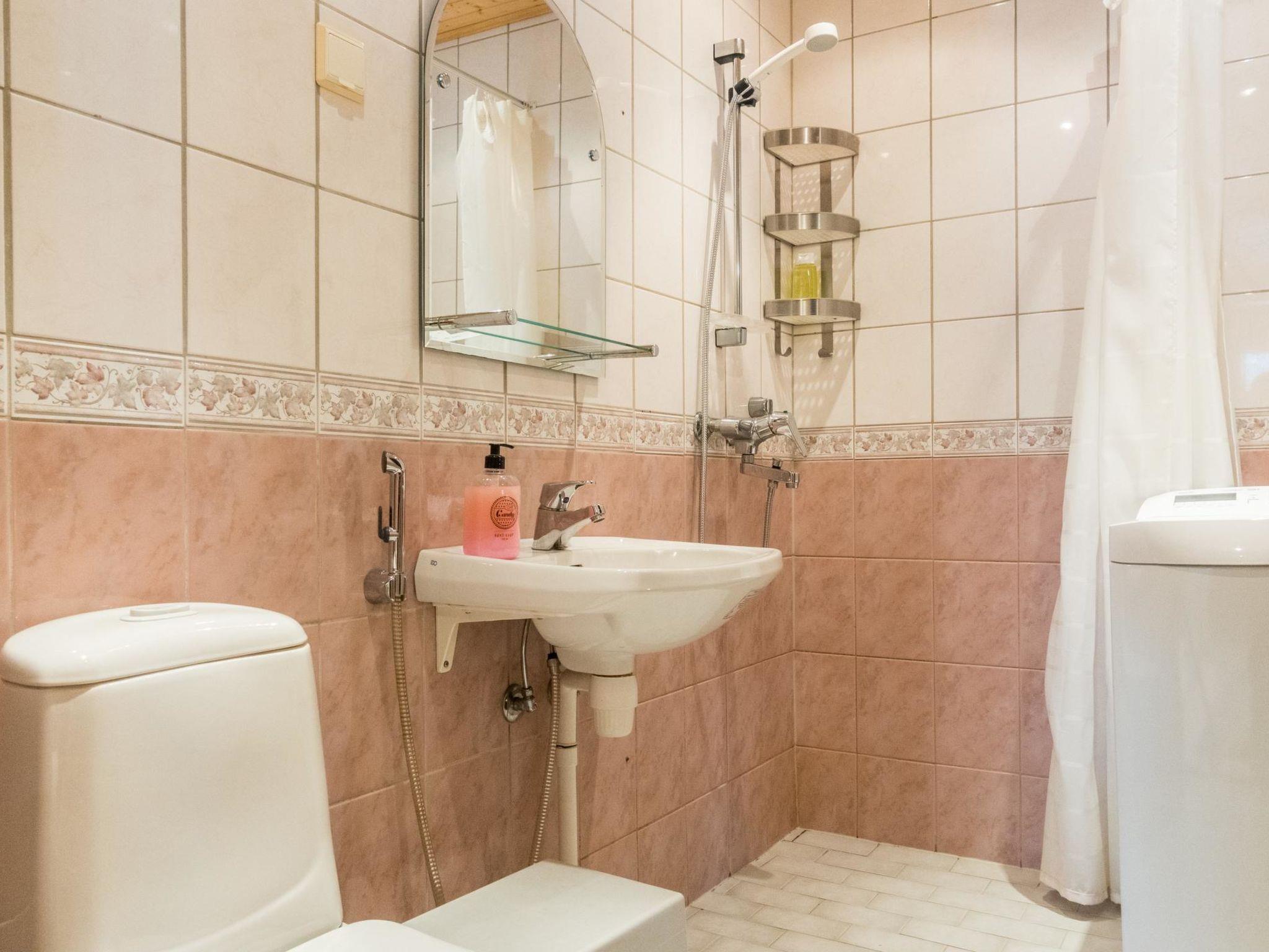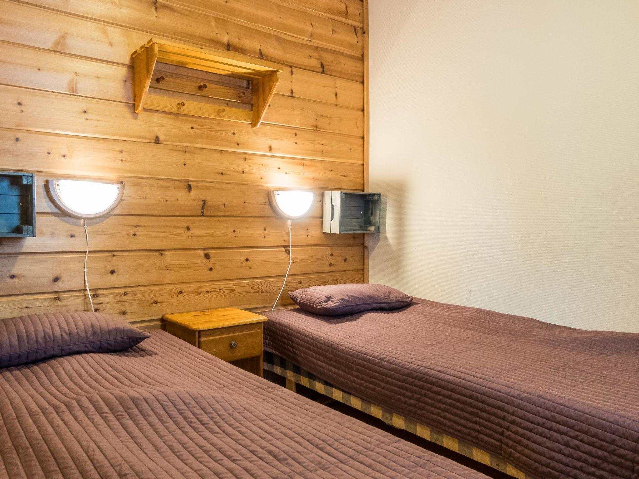 Two storey apartment; on the ground floor kitchen-living room with sofa bed, bedroom with 2 single beds, sauna (electric stove), shower room / wc. Upstairs bedroom with 2 single beds, one bedroom with one bed (width 120 cm) Note! This bedroom doesn't have a door at all, a loft with 2 mattresses, balcony.