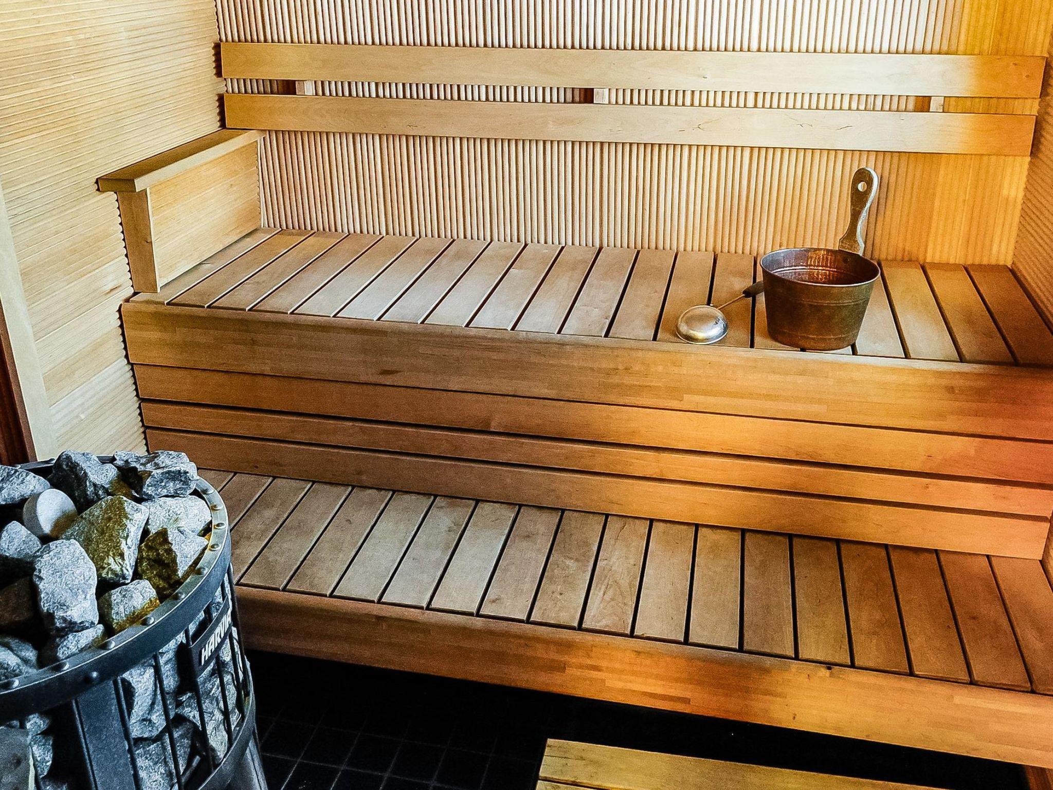 Log cabin, built in 1991, renovated later. Kitchen-living room, 2 bedrooms, both with 1 single bed (width 120 cm), bedroom upstairs (sloping roof) with 3 single beds, loft area has two single beds. Sauna (wood-burning stove), shower room / toilet, covered porch. Barbecue hut; electric light and power socket. Lockable (cold) storage for firewood, suitable also for preservation and maintenance of skis. Cottage has air source heat pump (for cooling in summer).