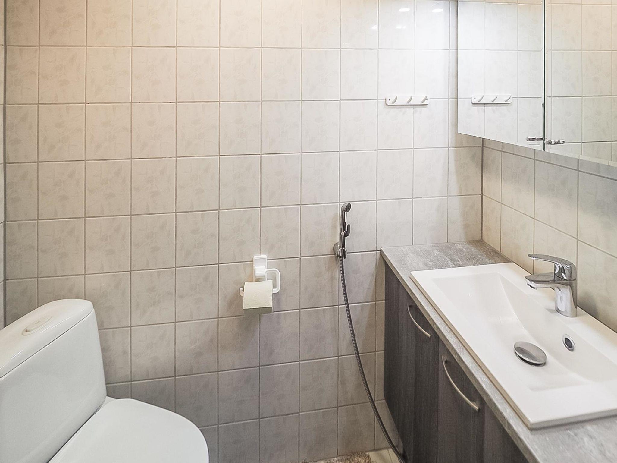 Ground floor: combined kitchen-living room, bedroom with 2 beds, sauna (electric stove), bathroom, toilet, terrace.