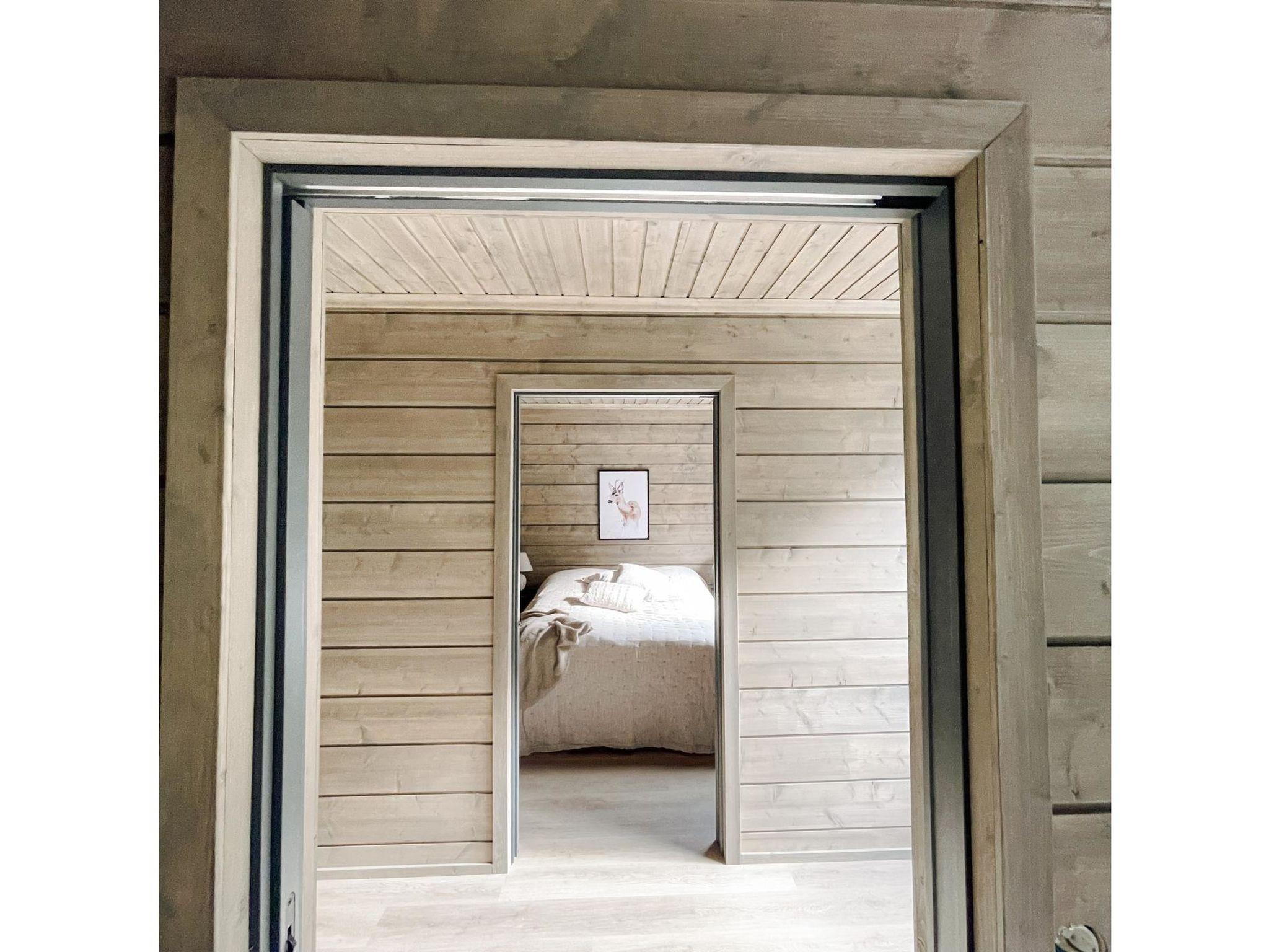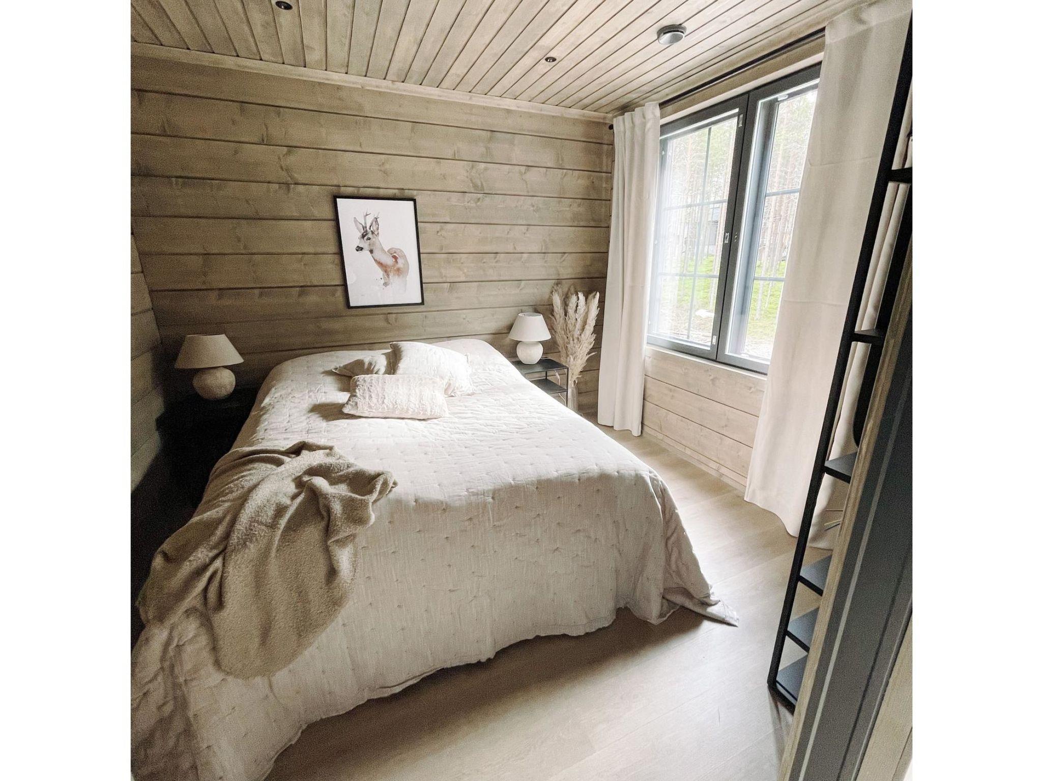 On the ground floor, there is one of Willa's four bedrooms. The bedroom has high-quality 180 cm wide bed and very high-quality pillows and blankets. The room is wonderfully bright thanks to the floor-to-ceiling window, but at night the bedroom can be darkened with a blackout curtain.