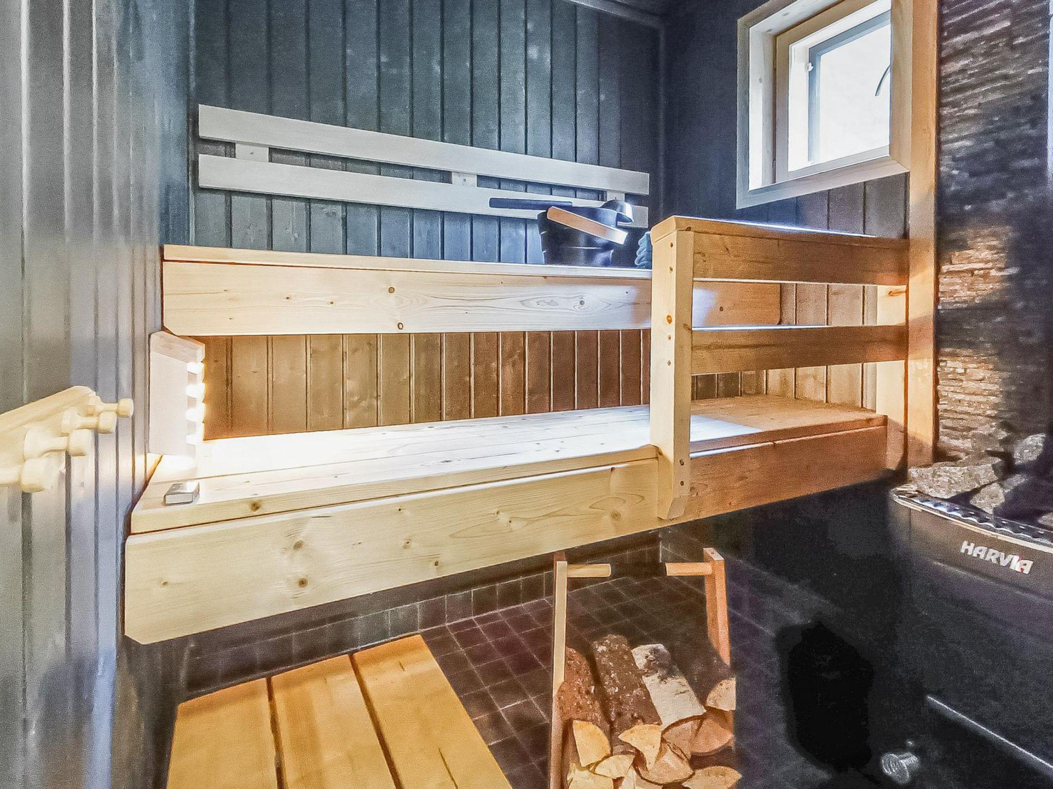Wooden cabin, built in 2023, living room/kitchen, two bedrooms with a double bed in one and two single beds in the other, WC, a utility room/bathroom, and a sauna with a wood-burning sauna stove. Covered porch and a rear terrace, cooking hut.