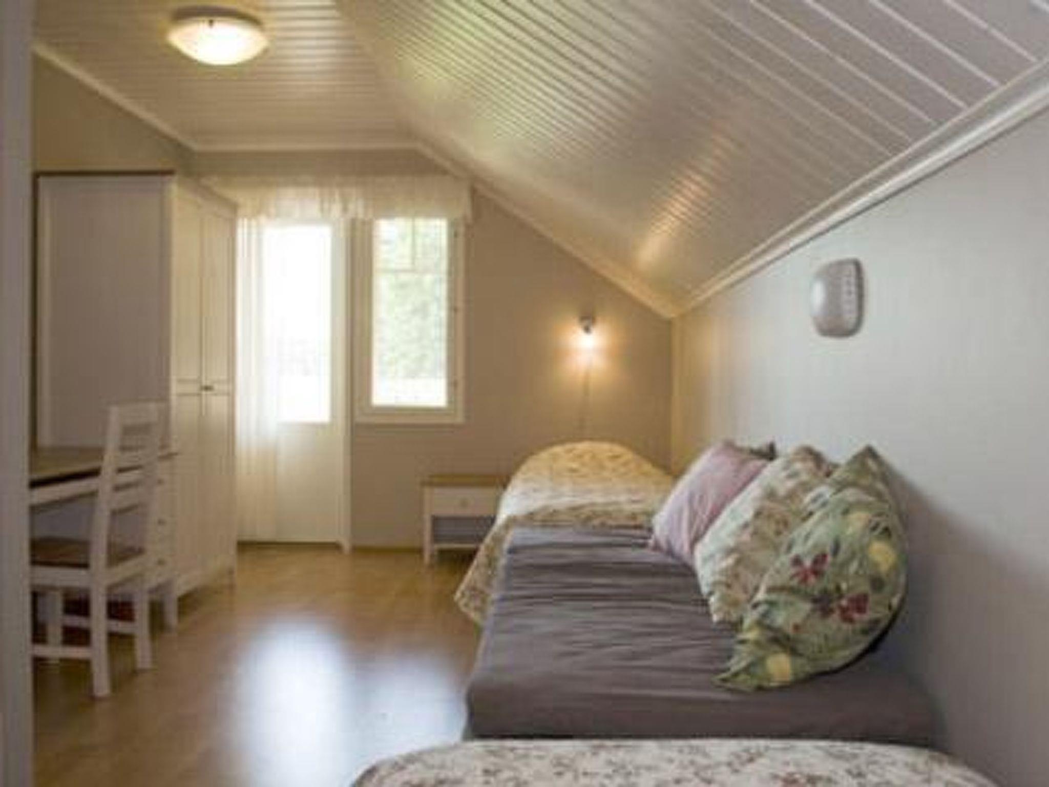 Wooden cottage 2007, living room/ kitchen, bedroom 2 beds and child's bed. Upstairs: hall, bedroom 3 beds, bedroom 2 beds, bedroom 4 beds. Downstairs: sauna (electric stove), washroom, dressing room/ utility room, open porch. Gas heated ring burner + Muurikka steel pan as gas grill. Car port. There is also charcoal grill at the cottage (client brings charcoal and ignition fluid).