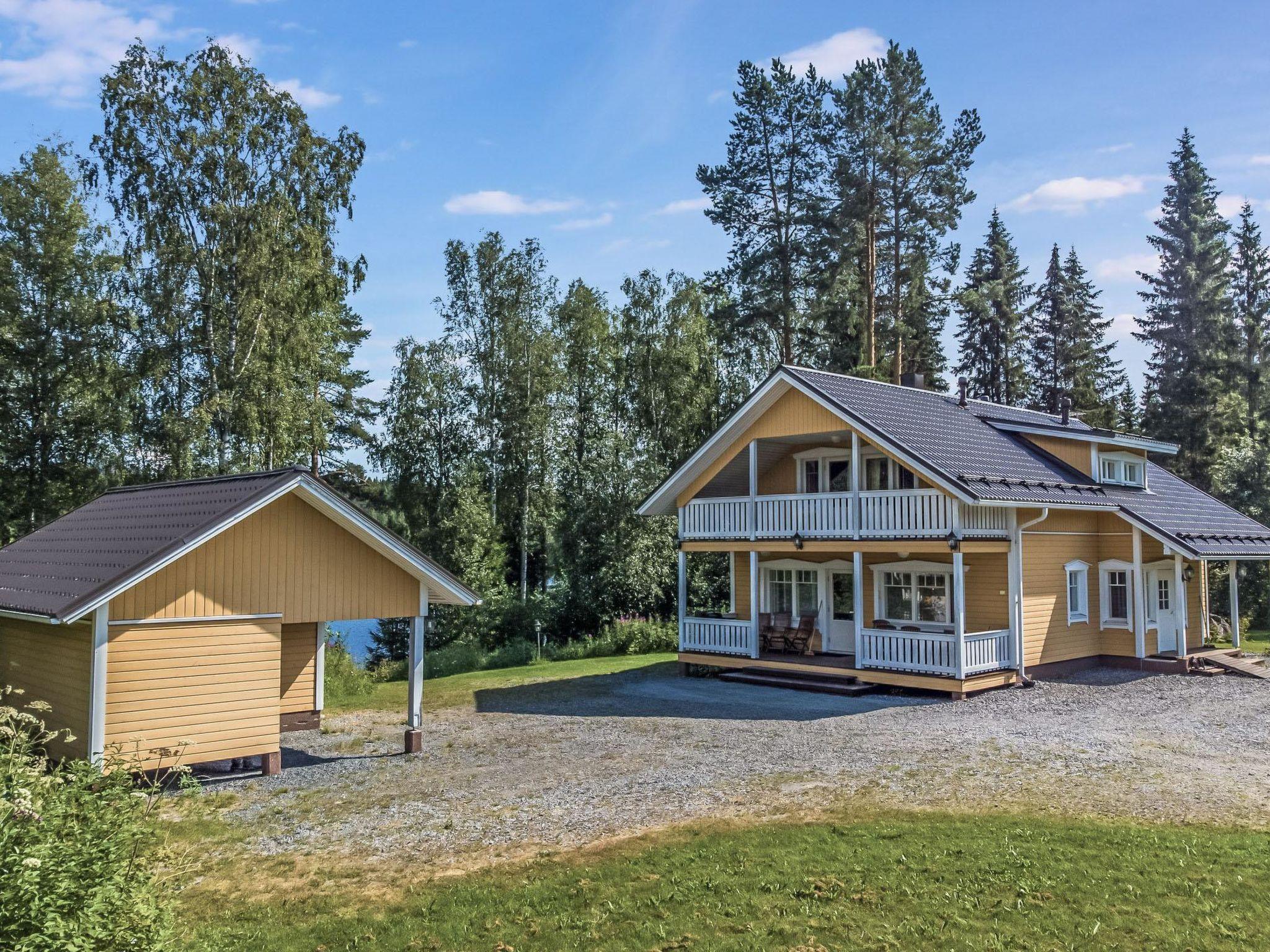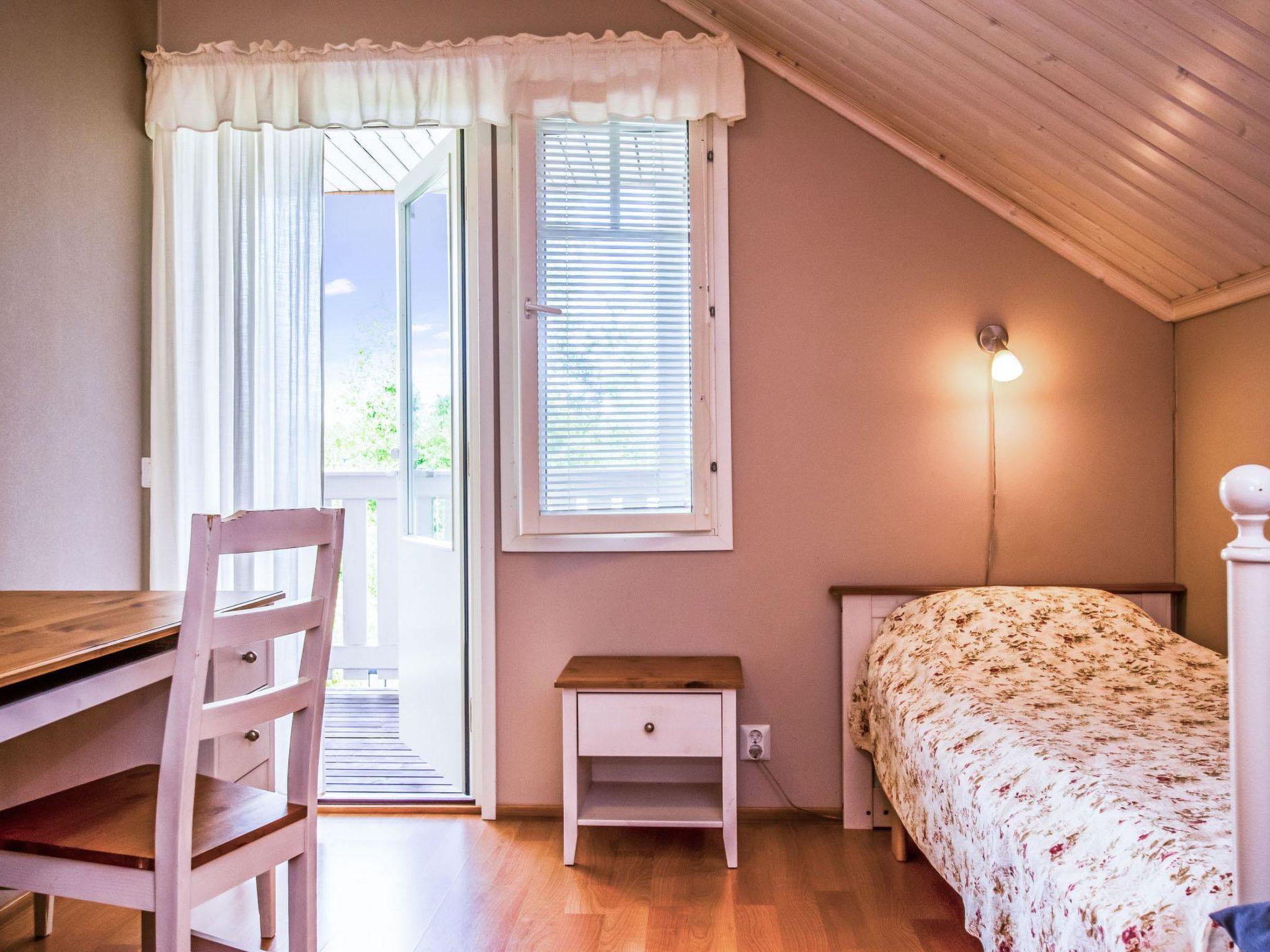 Wooden cottage 2007, living room/ kitchen, bedroom 2 beds and child's bed. Upstairs: hall, bedroom 3 beds, bedroom 2 beds, bedroom 4 beds. Downstairs: sauna (electric stove), washroom, dressing room/utility room, open porch. Gas heated ring burner + Muurikka steel pan as gas grill. There is also charcoal grill at the cottage (client brings charcoal and ignition fluid). Car port.