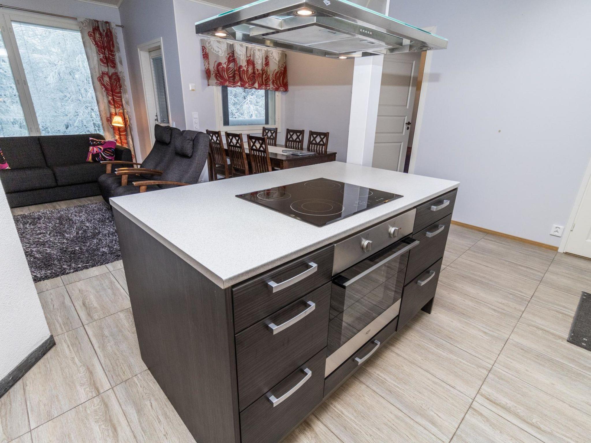 21 km north of Kuusamo, Ruka 6.7 km, Hirsilampi pond 200 m, Pyhäjärvi -lake 300 m. Apartment in terraced house, built in 2013, bedroom 1: double bed, bedroom 2: 2 beds, living room: sofabed for 2, combined kitchen/living room, electric sauna.