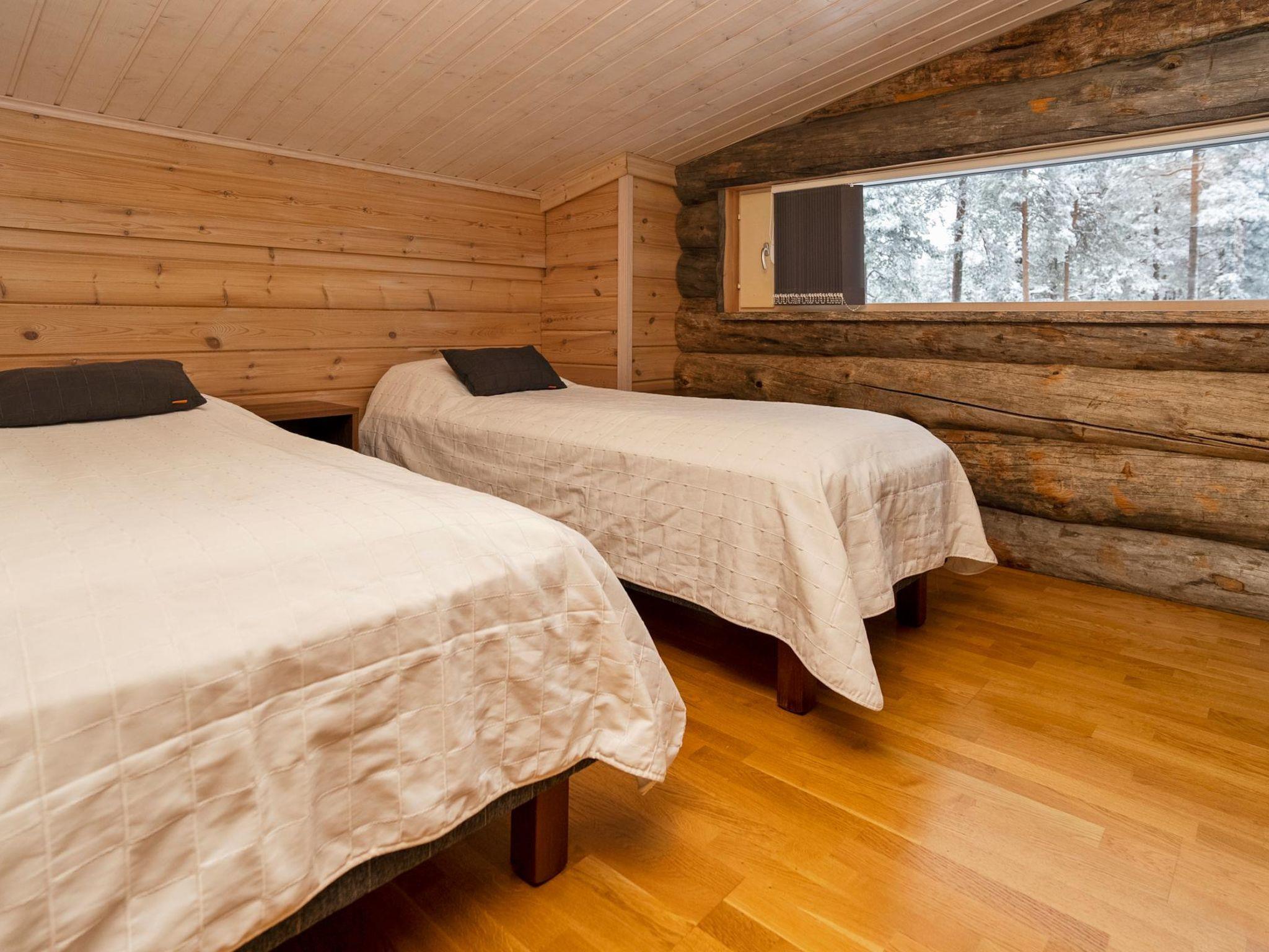 28 km north of Kuusamo, Ruka 6 km. Separate three layers log cottage, built in 2012. On the middle floor living room convertible sofa for 2 person, kitchen, 2 bedrooms both with two beds, WC and large balcony.