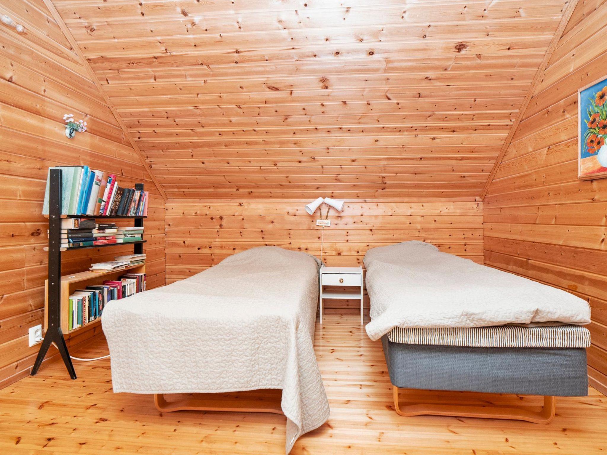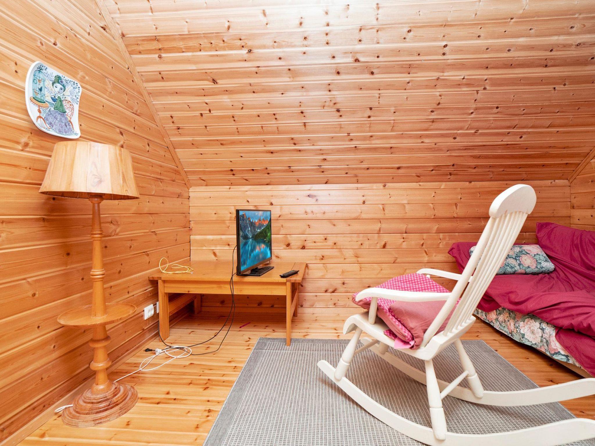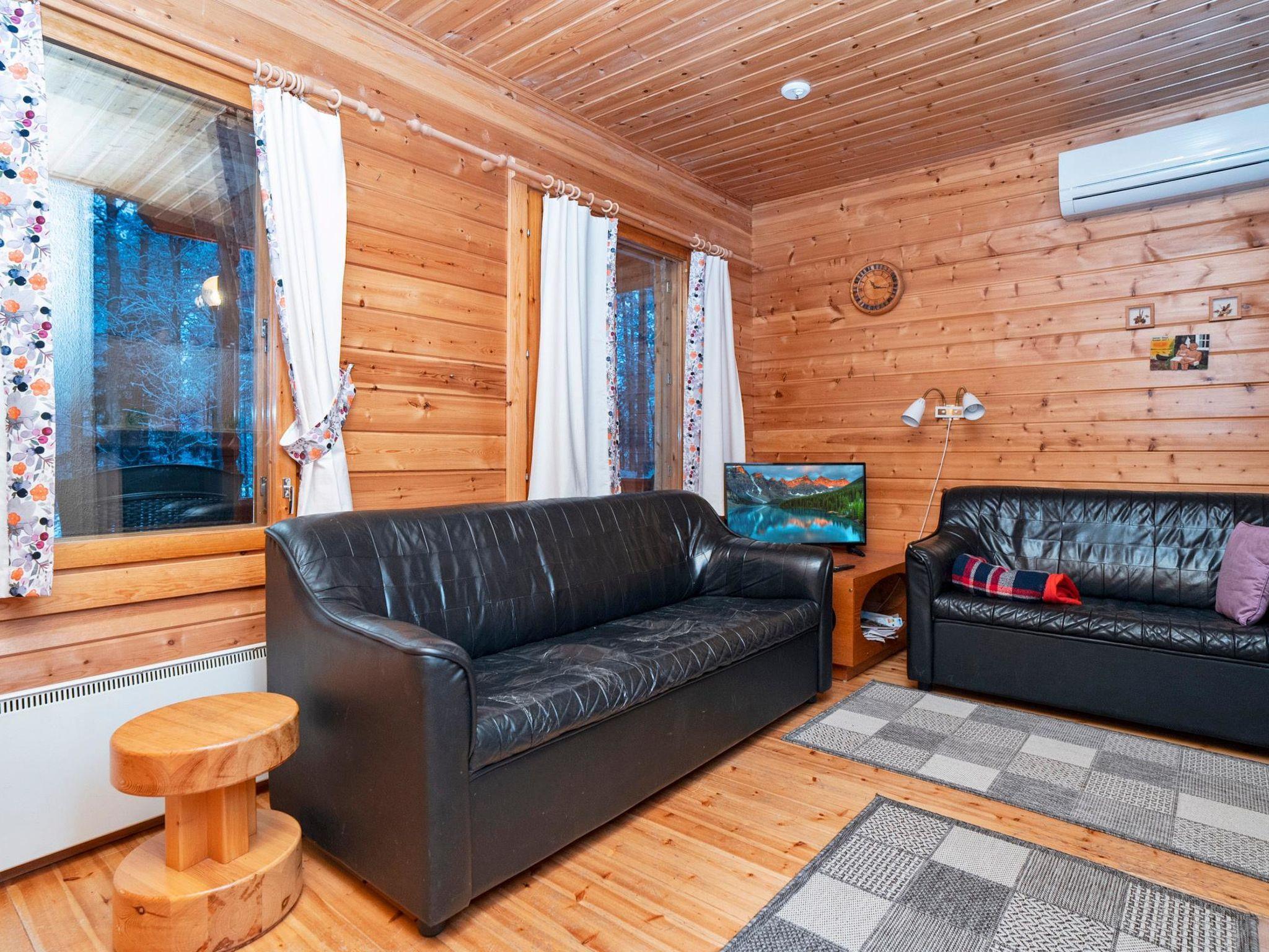 14 km north of Kuusamo, Ruka 23 km, lake Nissinjärvi about 30 m, log cabin built in 1989. Livingroom (fireplace), kitchen (baking oven), bedroom (bunk bed for 2 persons), bedroom (extendable bed 120x200 cm), shower room and toilet, electric sauna, open porch. In upstairs there are livingroom (bed 80x200 cm) and bedroom (2 beds á 80x200 cm), balcony with furniture towards the lake.