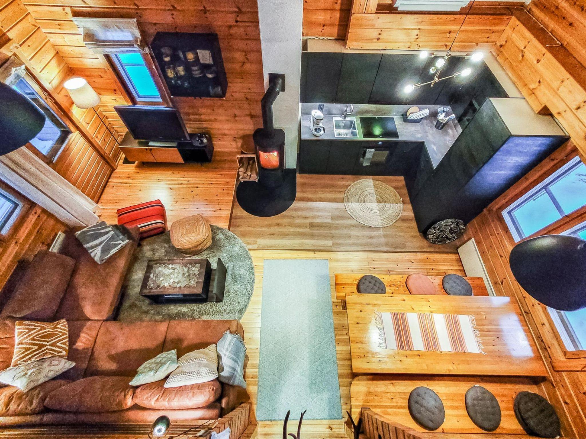 Log-built semi-detached house, built in 1990, he apartment's kitchen and living room have been renovated in early 2023. Living room / kitchen, bedroom 1: double bed (width 160 cm), bedroom 2: 2 beds, loft: 4 beds. Sauna (electric sauna stove) and washroom, open veranda.