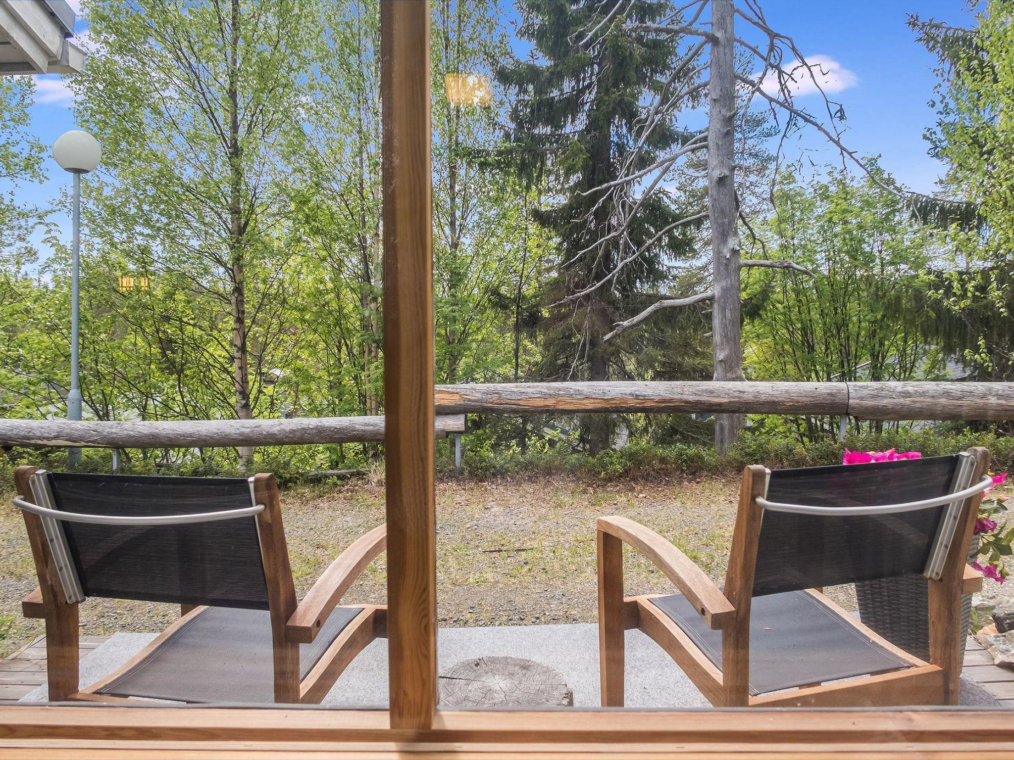 Apartment in a row house area on a hillside location. Good connections to the Ruka central square, e.g. by foot or SkiBus (distance to the bus stop is about 350 m). The nearest ski lift is Kelo E, distance is about 1,5 km. Ski trail 300 m. The nearest restaurant is Royal Ruka.