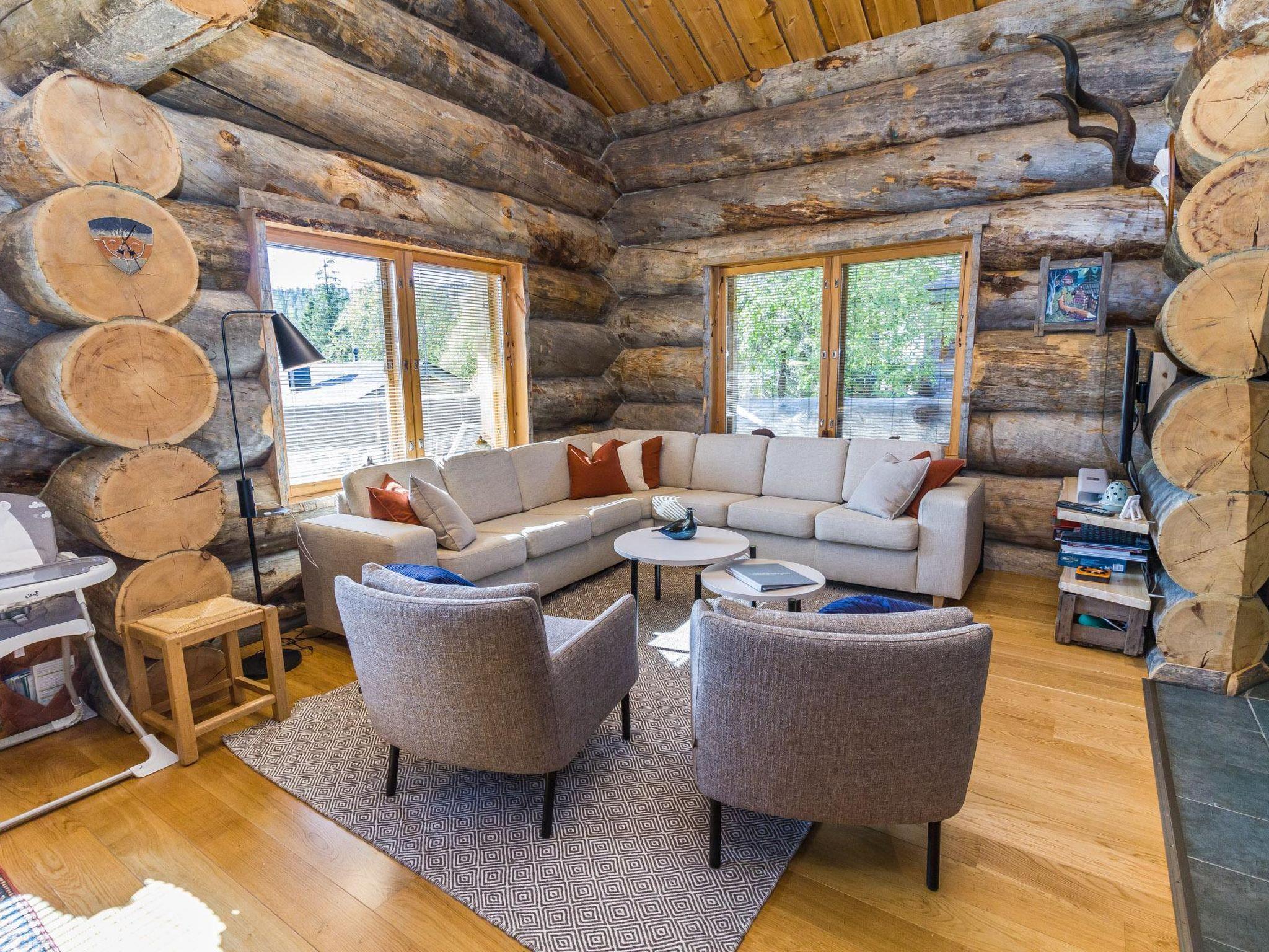 Villa Saaruli is a warm and welcoming kelo-log cabin situated in East Ruka, right by the ski slopes and ski trails.